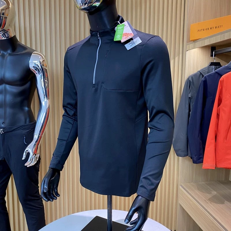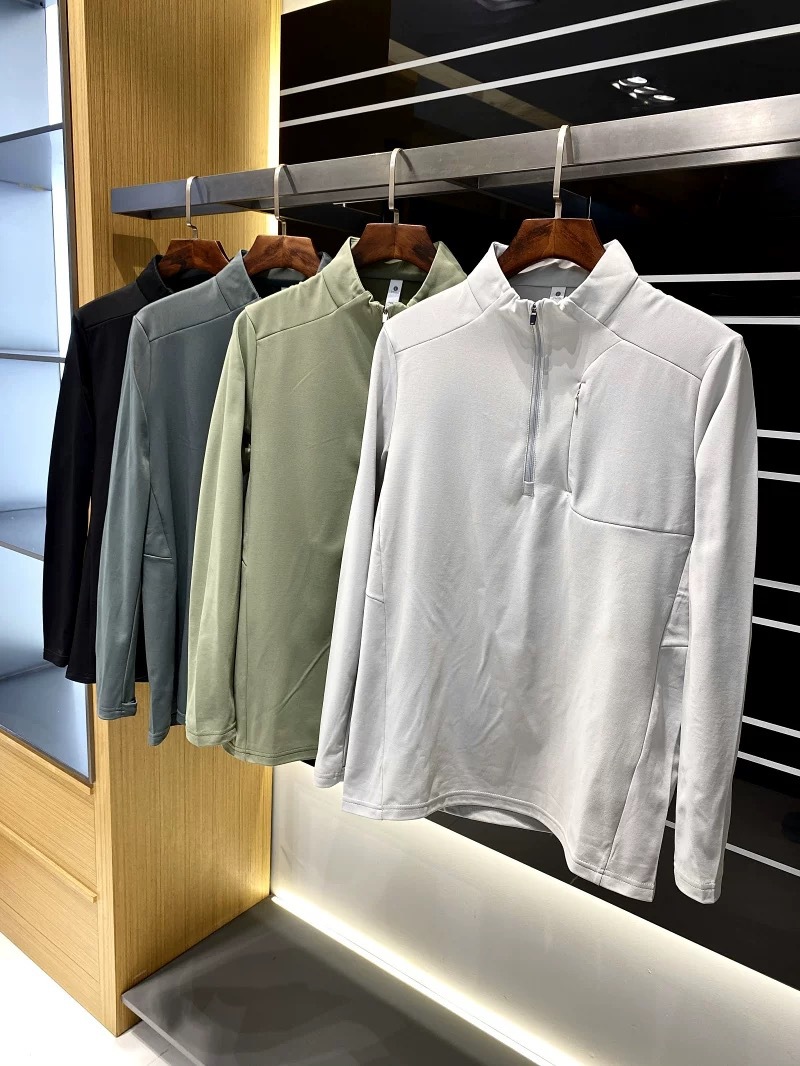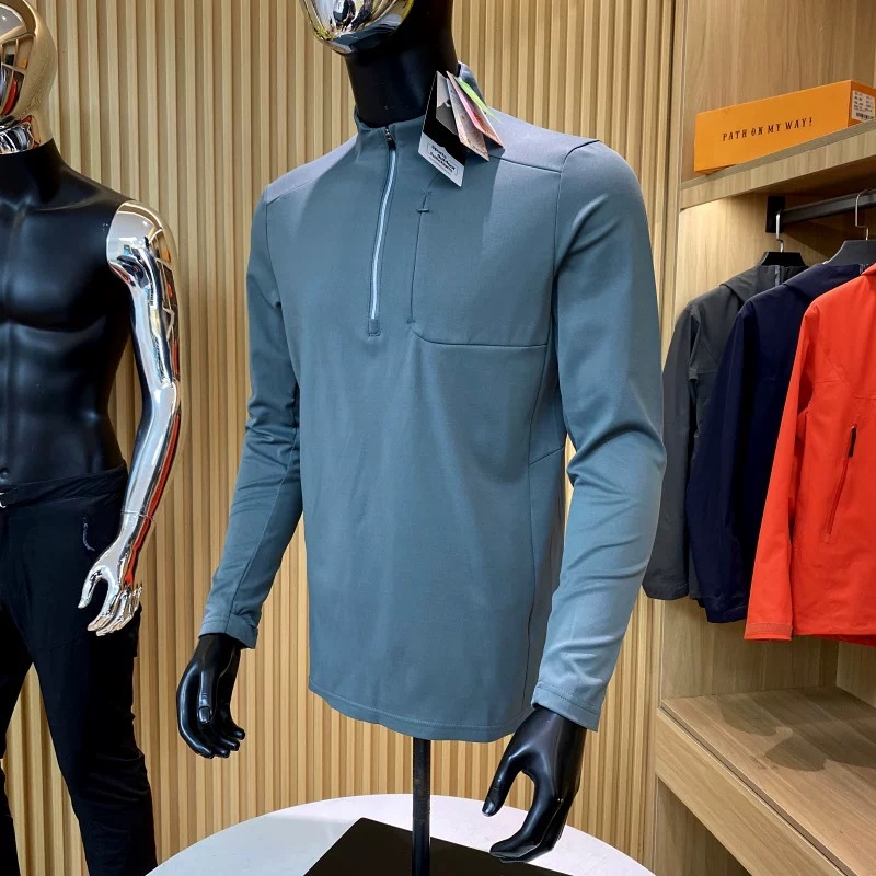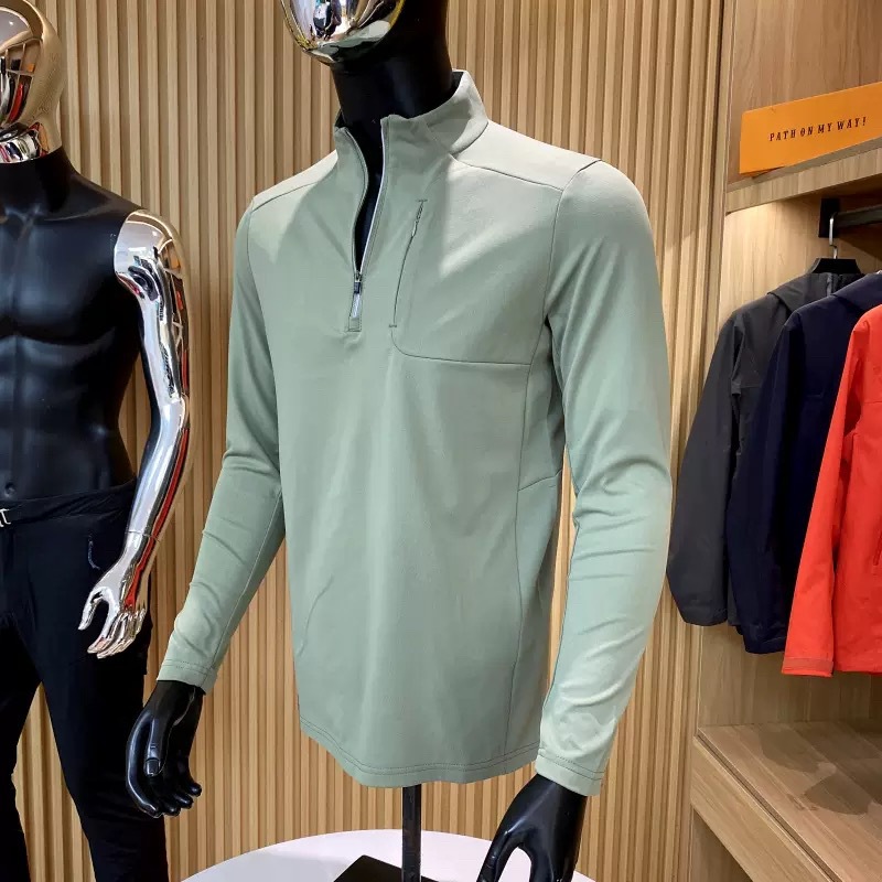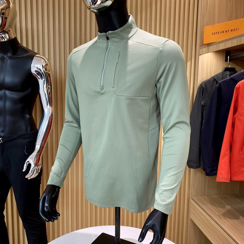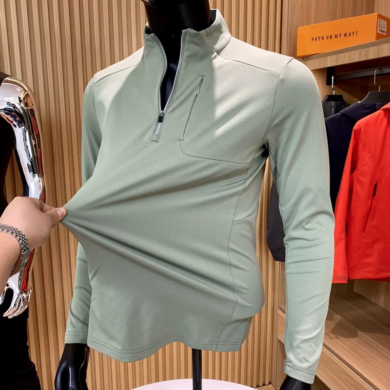 야외 하이 엔드 지능형 온도 제어 원피스 벨벳 스포츠 스웨터 봄과 가을 남자 하프 지퍼 수직 칼라 긴팔 티셔츠스토어 가기