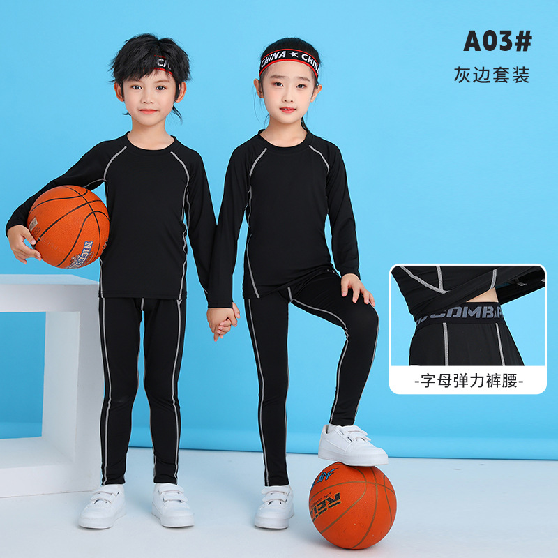 남자 달리기 스포츠 긴팔 고탄성 피트니스 축구 농구 훈련 옷 레깅스를 세트 어린이 빠른 건조 타이트