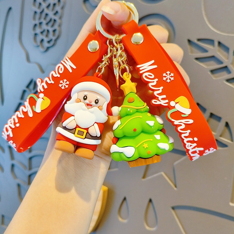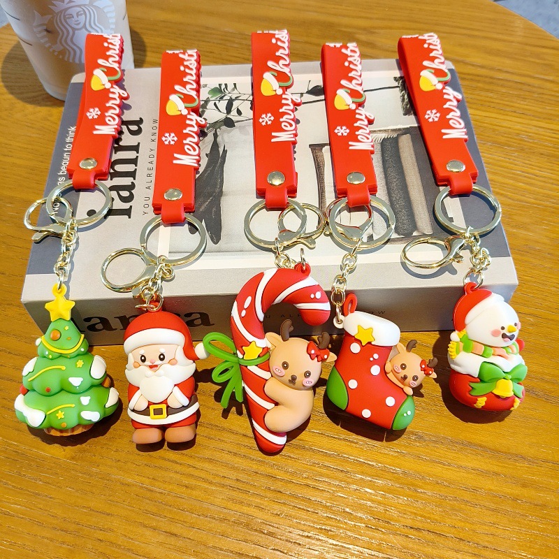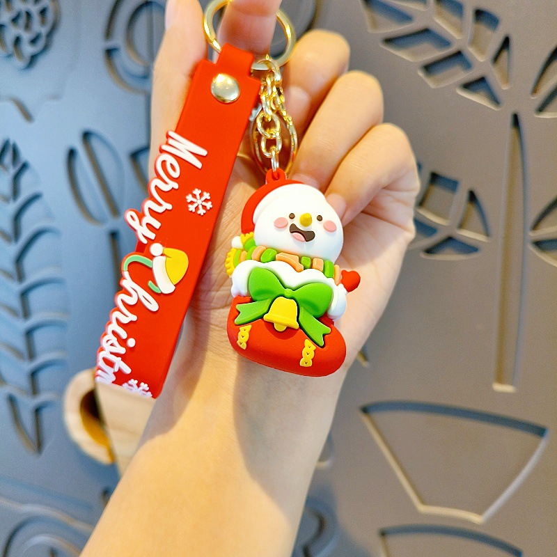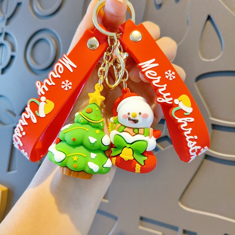 크리스마스 만화 키 체인 산타 눈사람 인형 귀여운 학교 가방 펜던트 자동차 키 체인 작은 선물