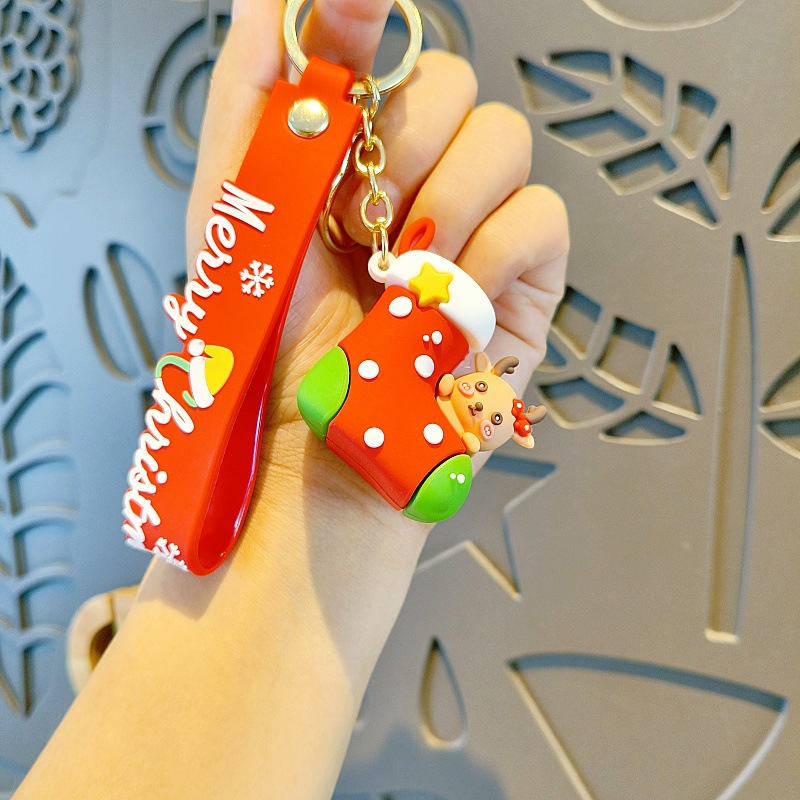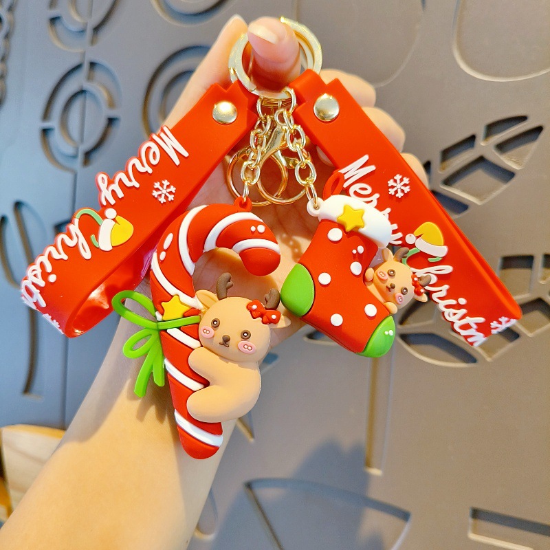 크리스마스 만화 키 체인 산타 눈사람 인형 귀여운 학교 가방 펜던트 자동차 키 체인 작은 선물스토어 가기