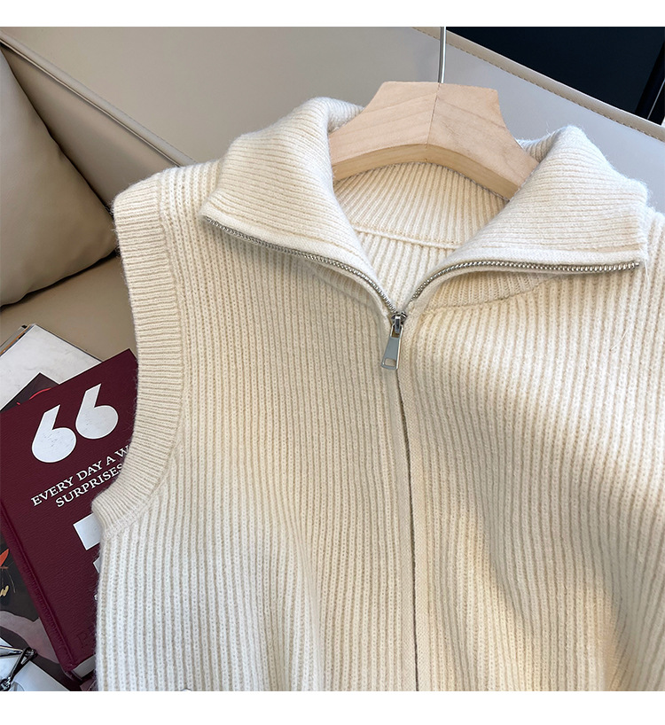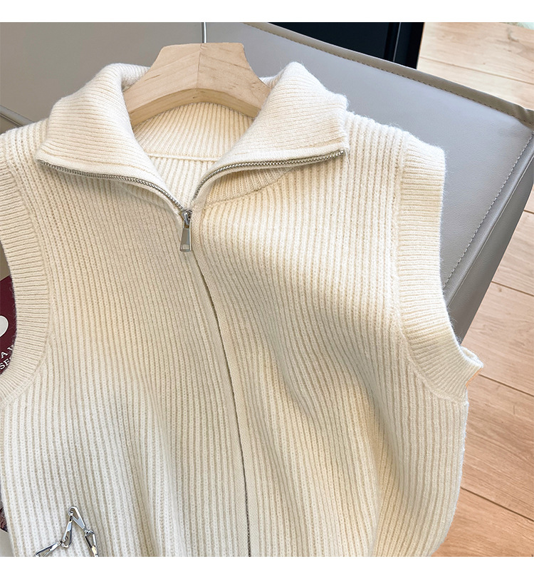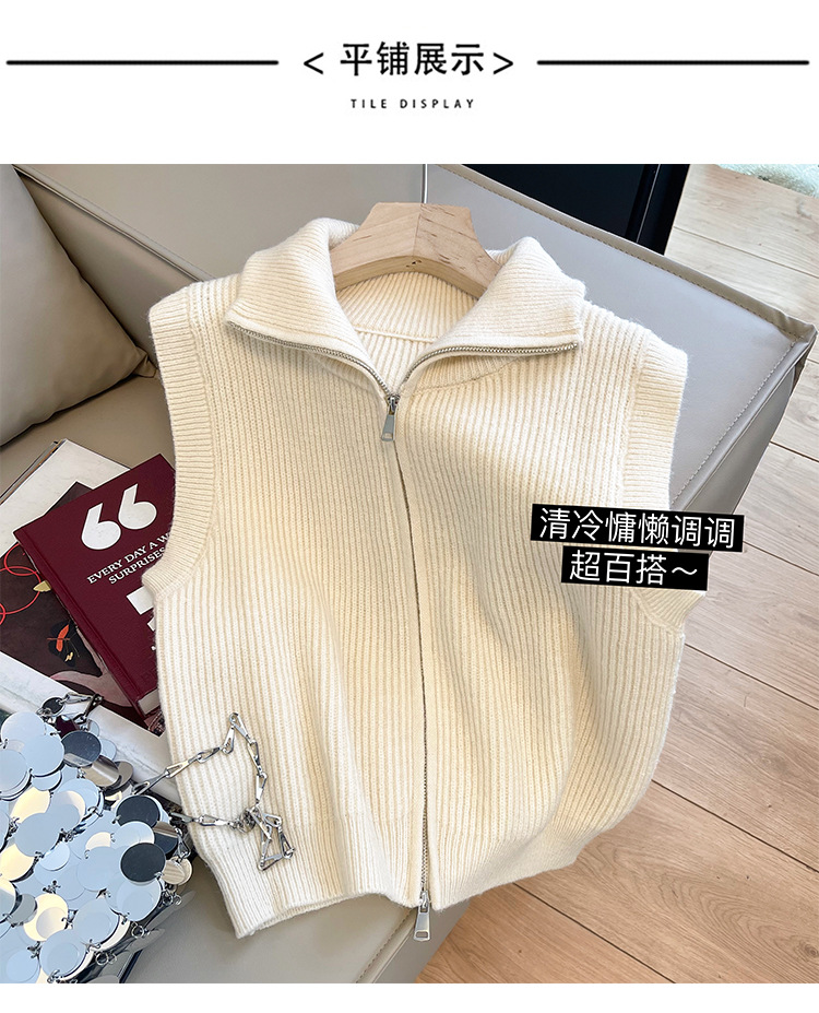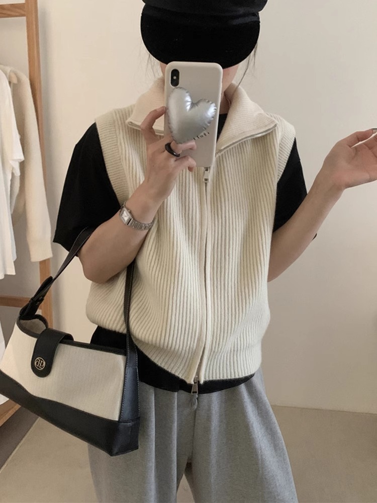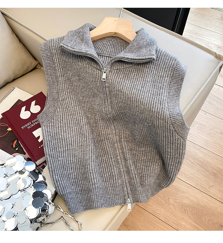 레트로 스타일 스탠드 칼라 니트 조끼 여성용 2025 가을 신상 디자인 심플한 지퍼 스웨터 조끼 트렌디스토어 가기