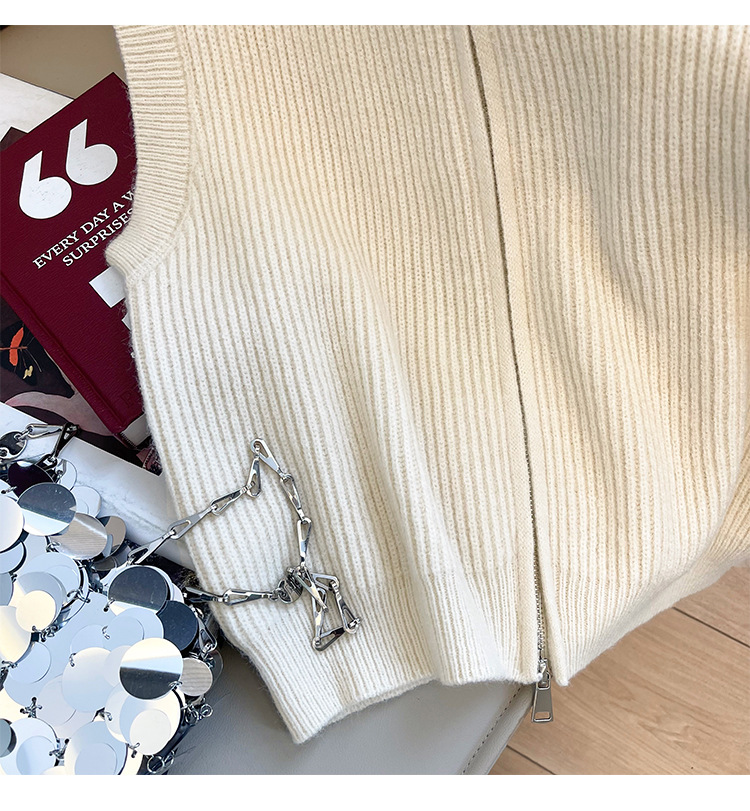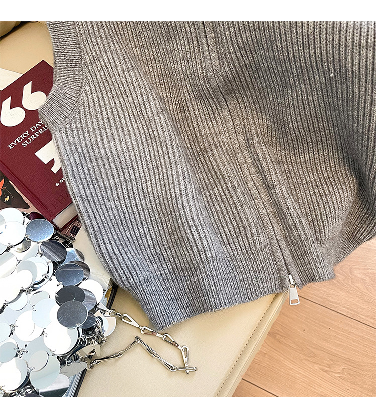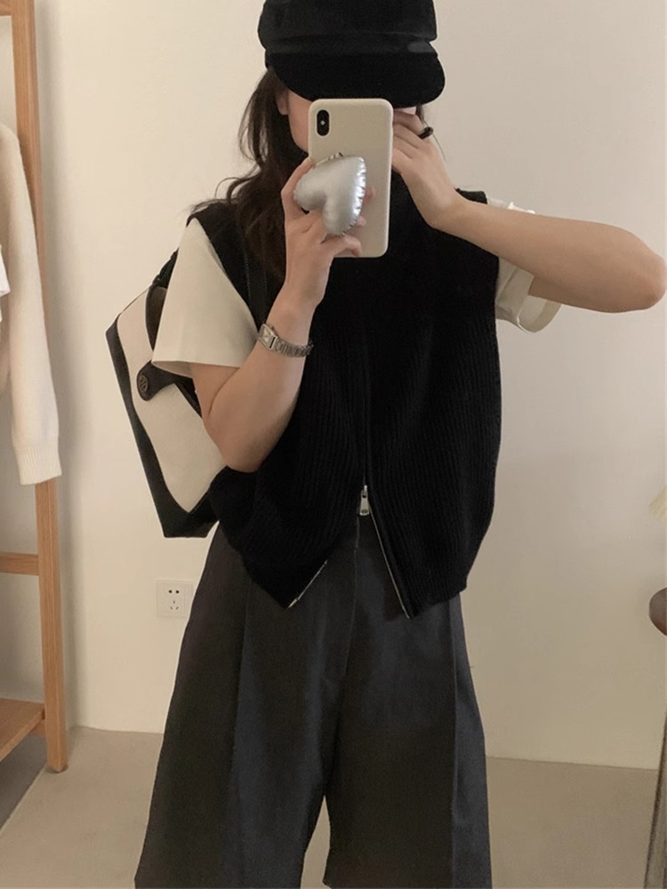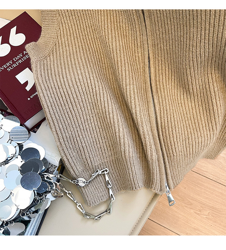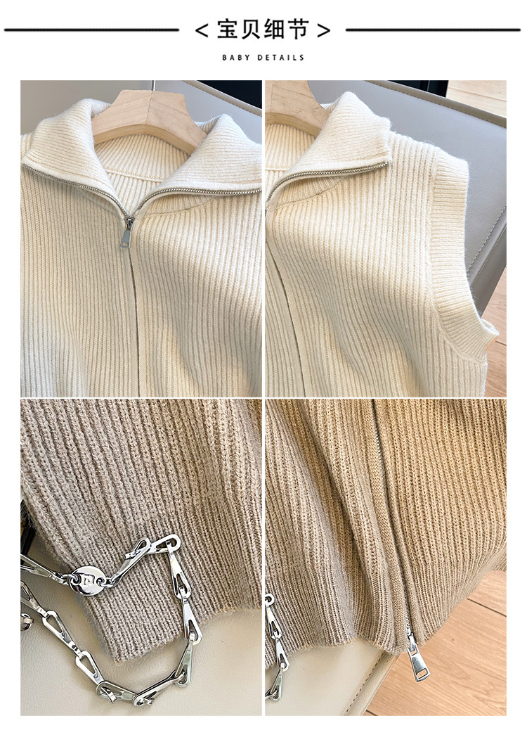 레트로 스타일 스탠드 칼라 니트 조끼 여성용 2025 가을 신상 디자인 심플한 지퍼 스웨터 조끼 트렌디스토어 가기