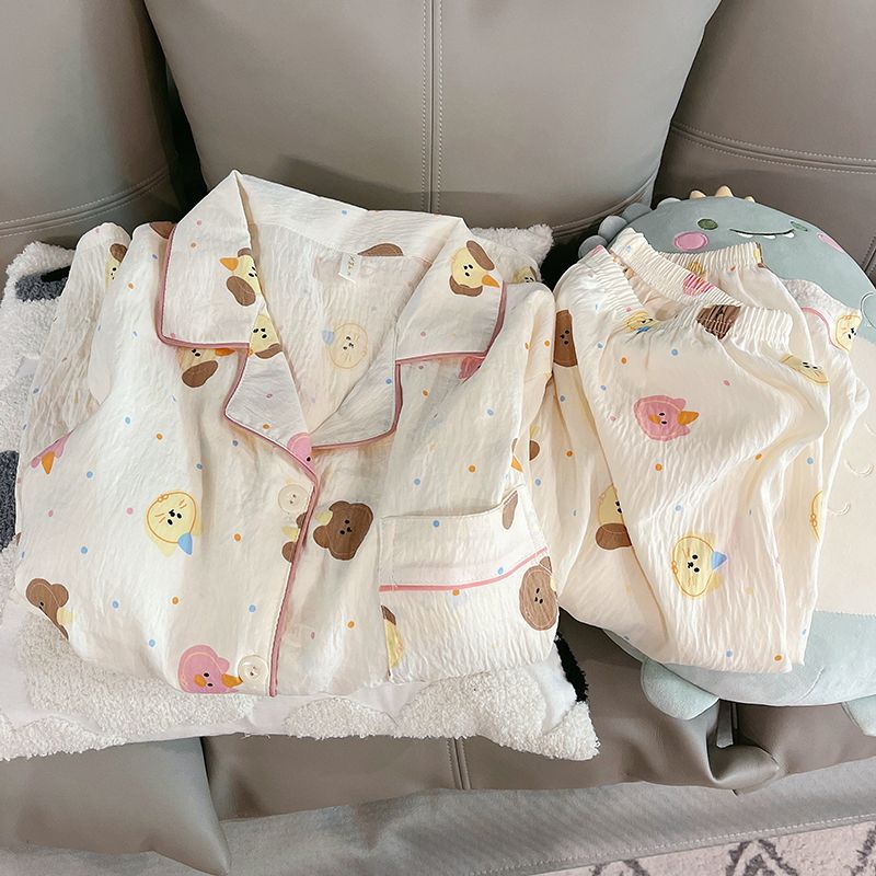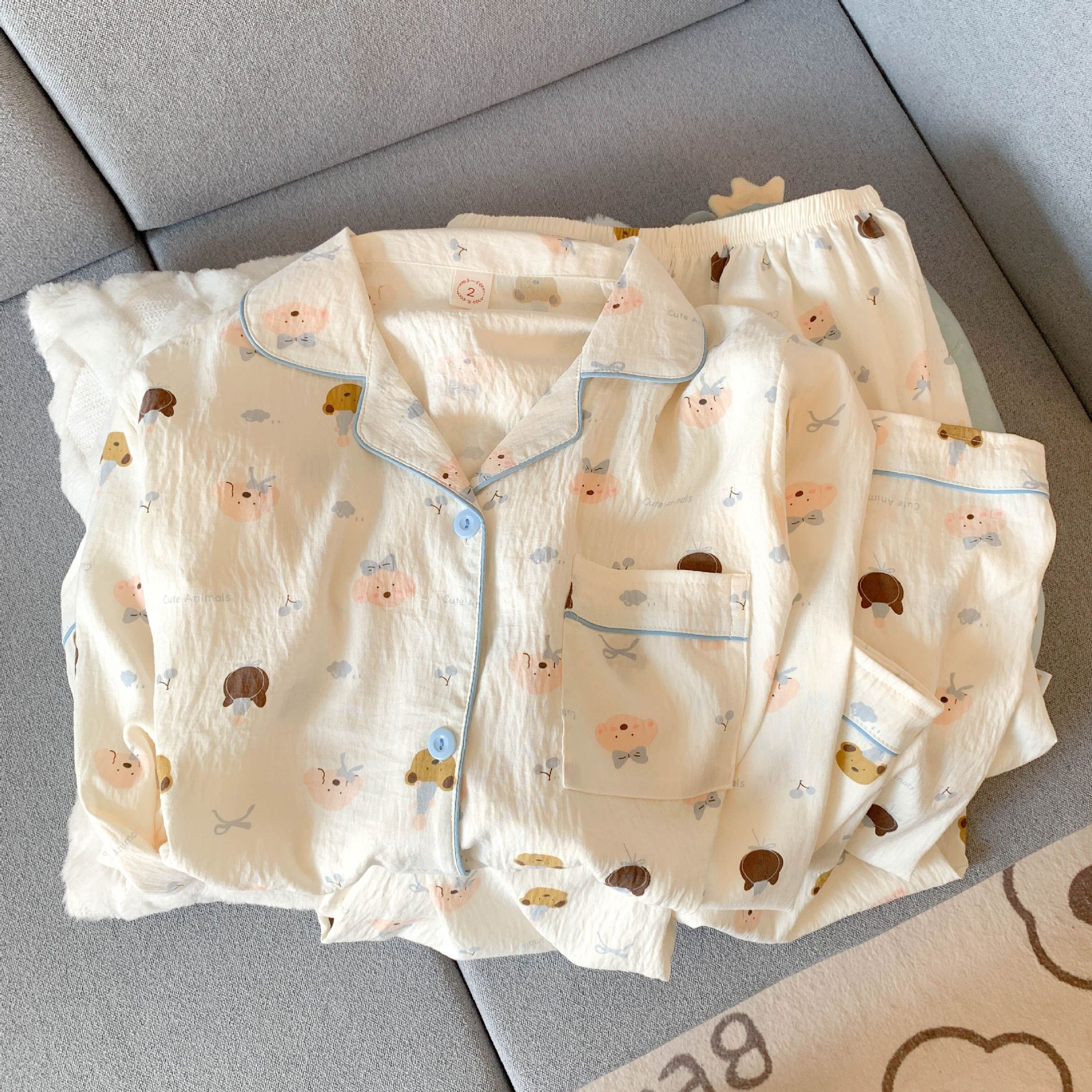 2025 새로운 구름 면 긴 소매 잠옷 여성의 봄과 가을 귀여운 달콤한 만화 바지 얇은 홈 의류 세트 여름스토어 가기