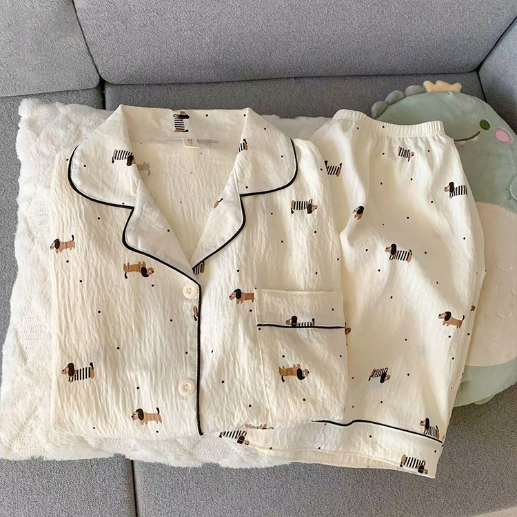 2025 새로운 구름 면 긴 소매 잠옷 여성의 봄과 가을 귀여운 달콤한 만화 바지 얇은 홈 의류 세트 여름