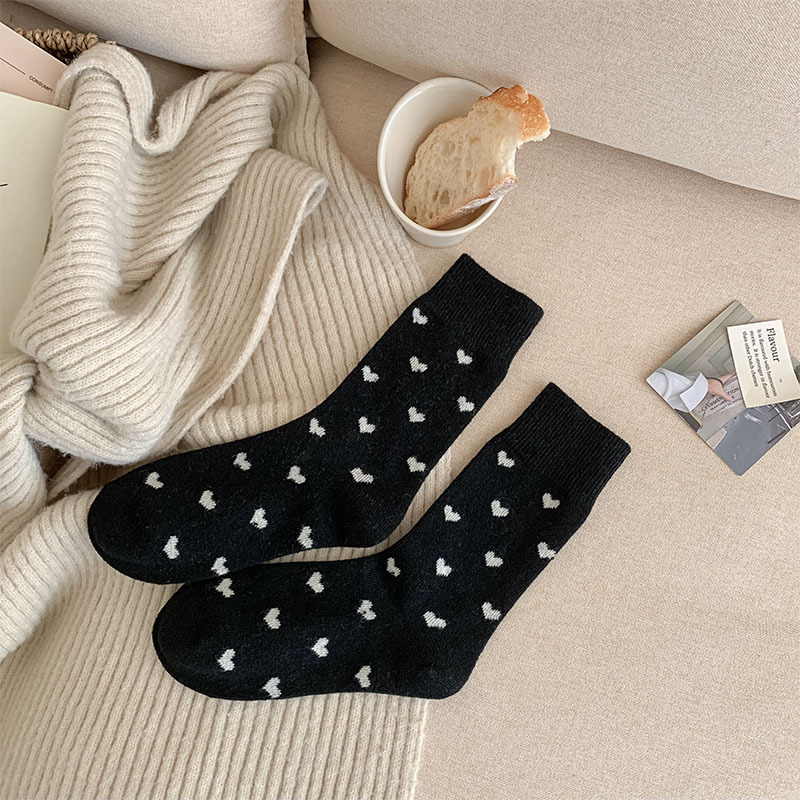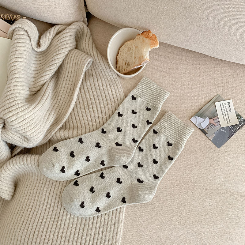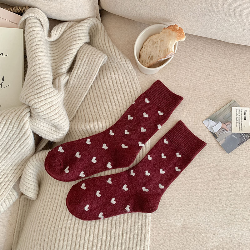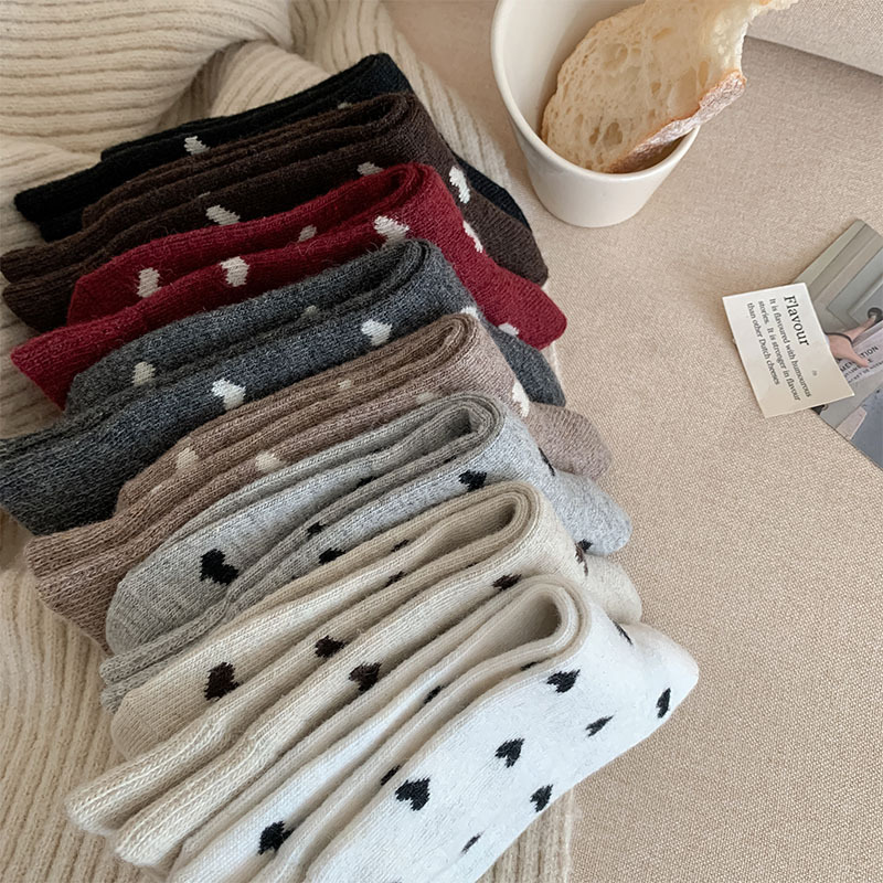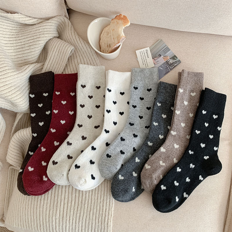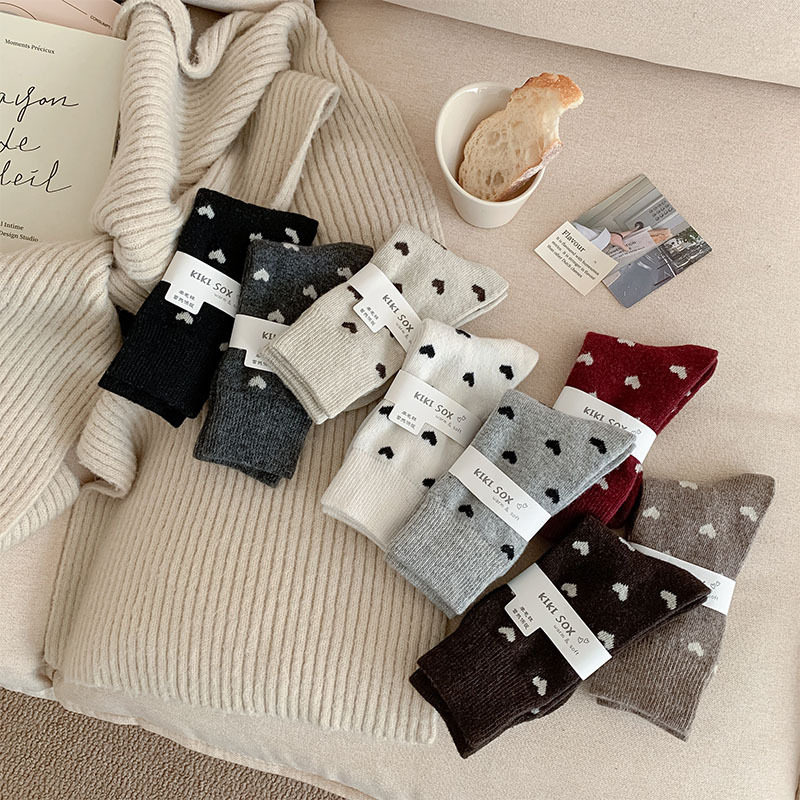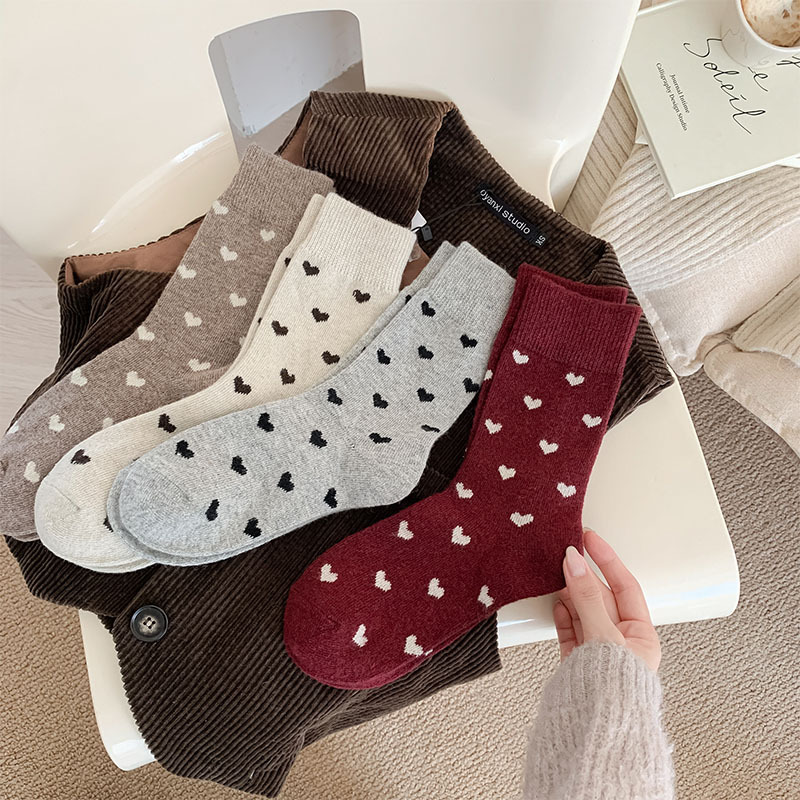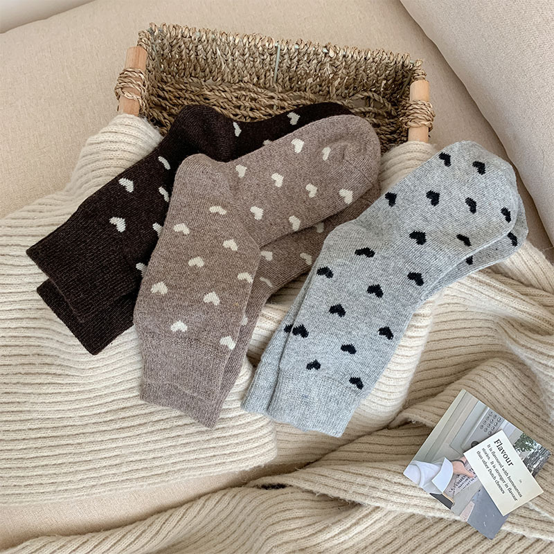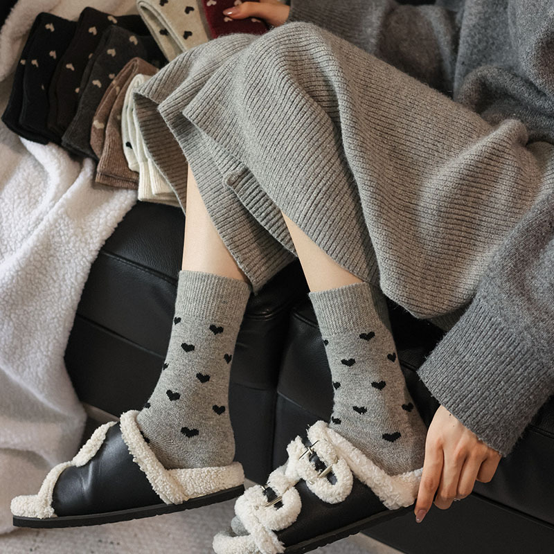 회색 작은 사랑 양말 여성의 가을 겨울 두꺼운 따뜻한 양모 중간 튜브 양말 한국 패션 안코라 붉은 더미 양말스토어 가기