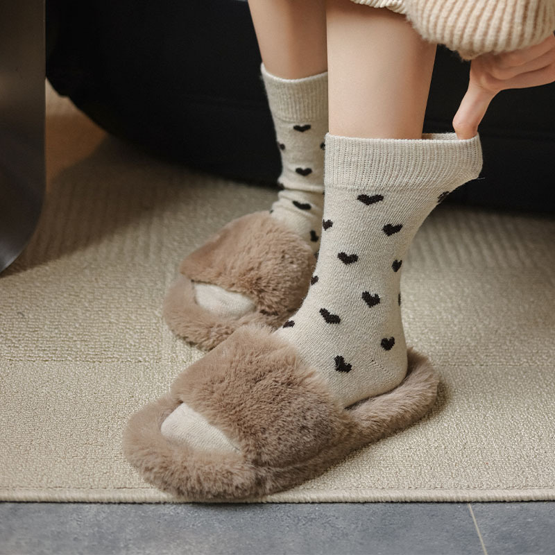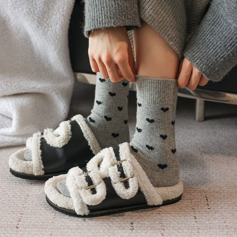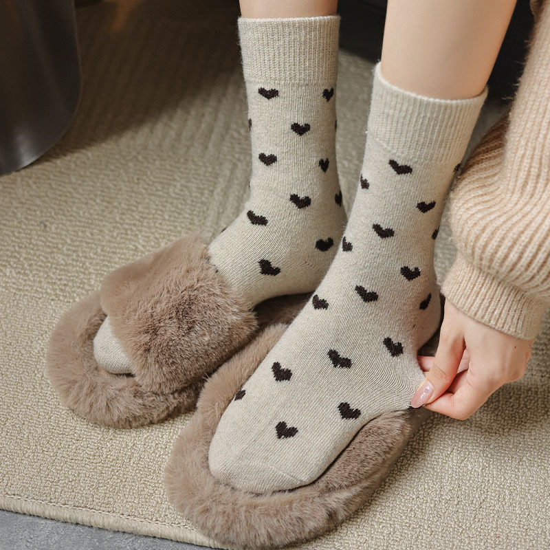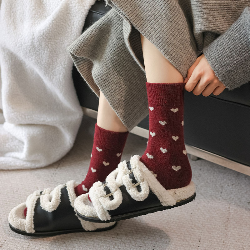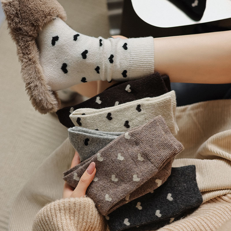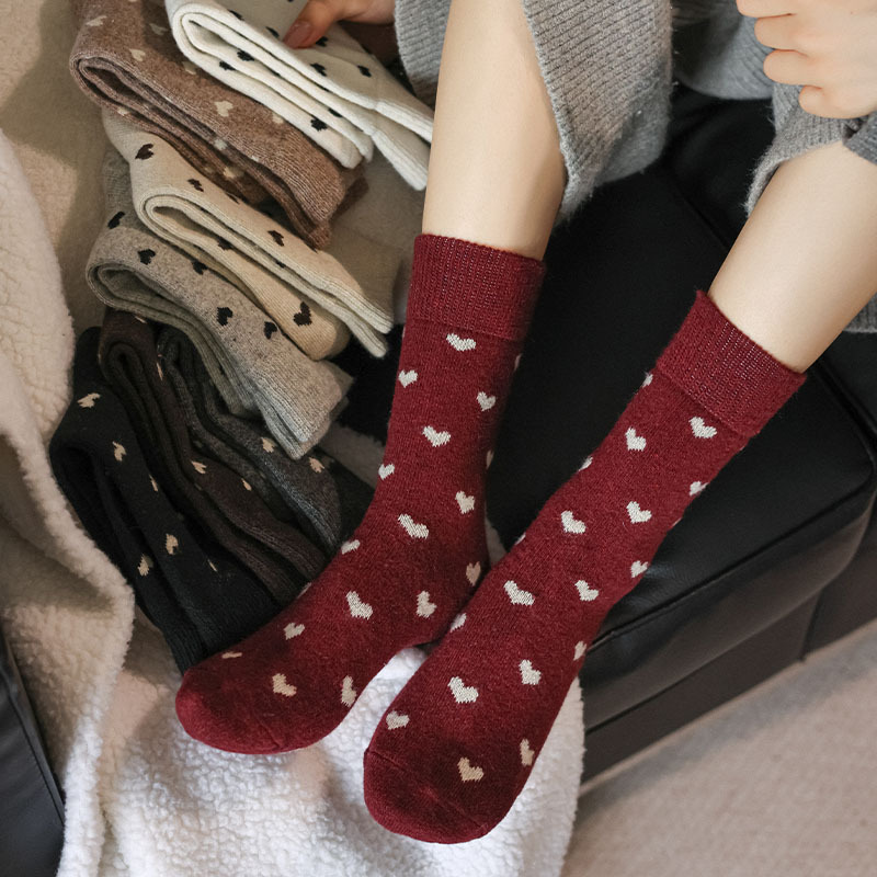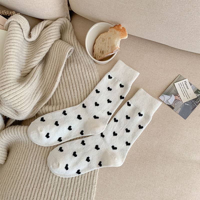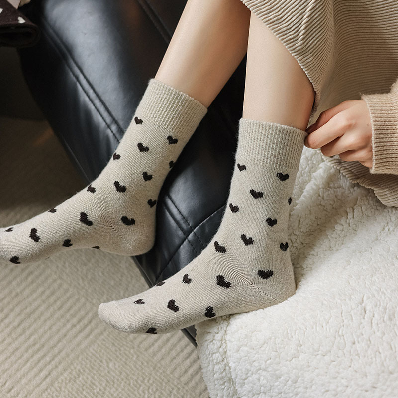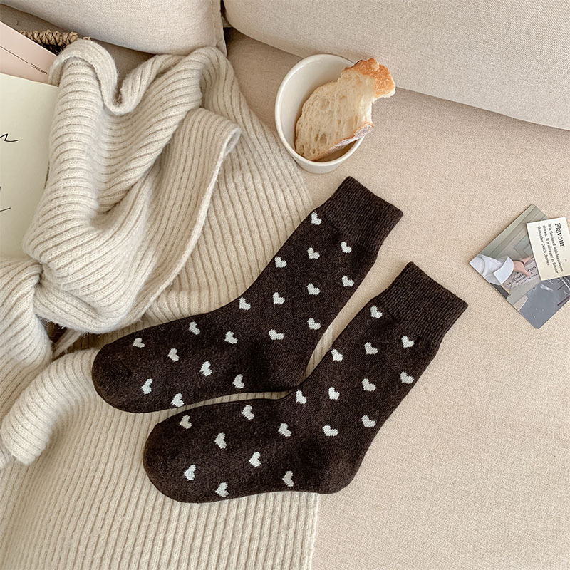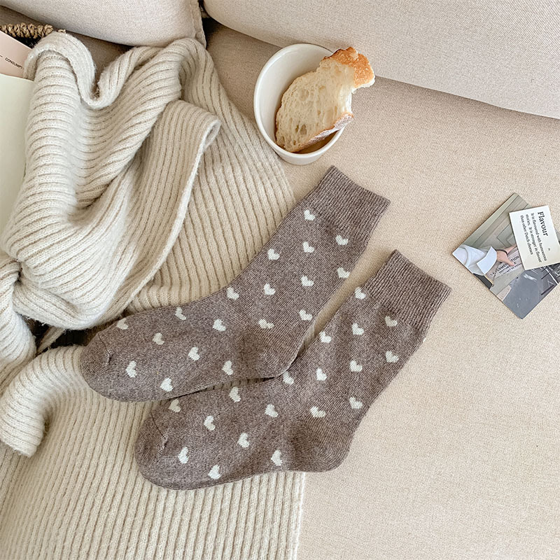 회색 작은 사랑 양말 여성의 가을 겨울 두꺼운 따뜻한 양모 중간 튜브 양말 한국 패션 안코라 붉은 더미 양말스토어 가기