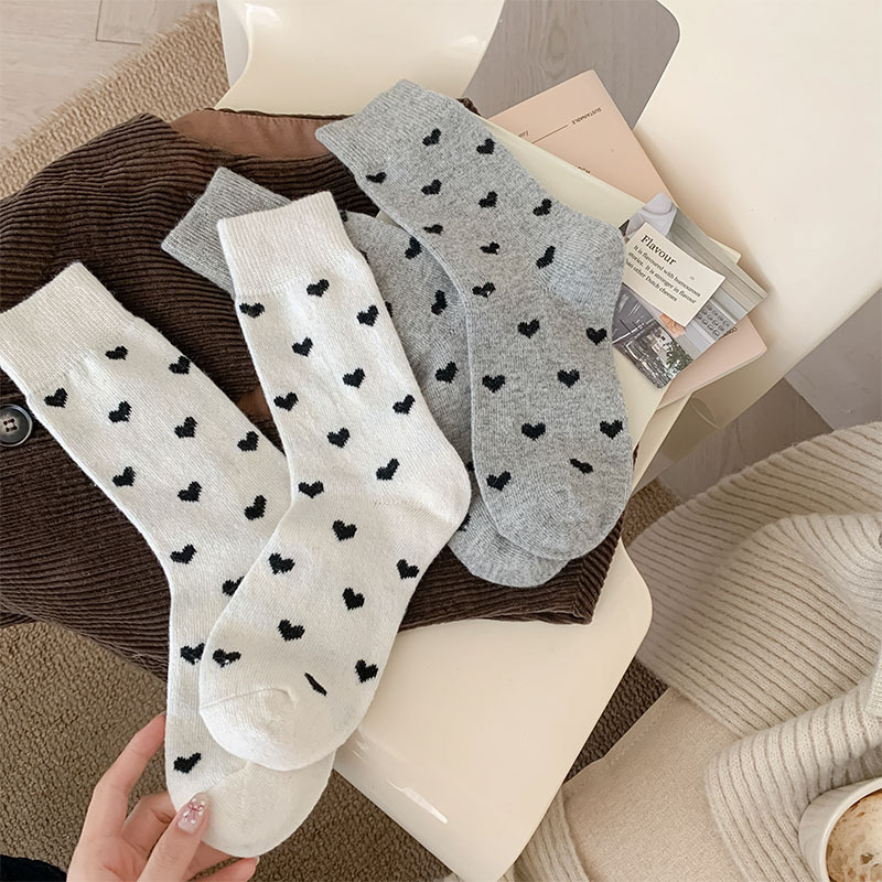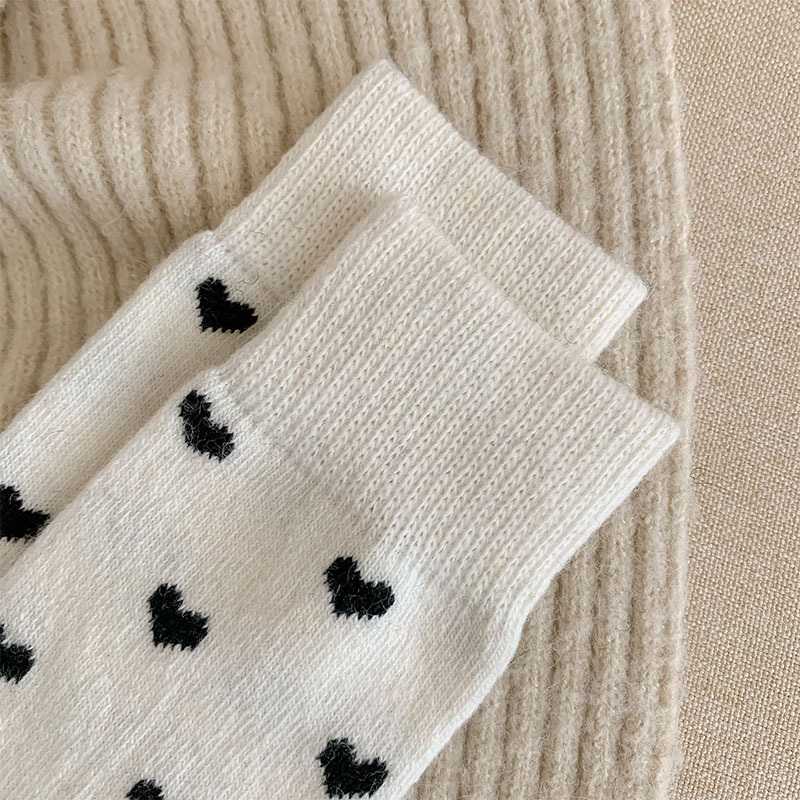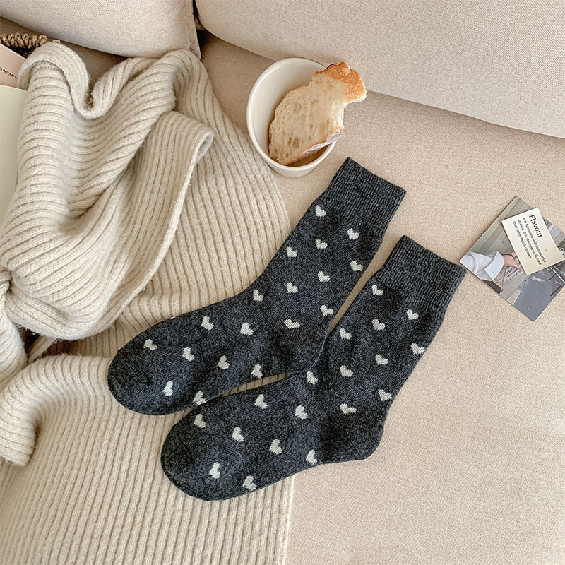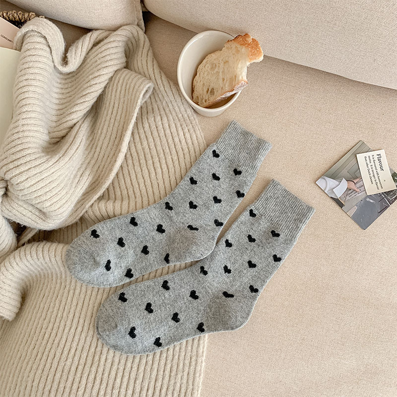 회색 작은 사랑 양말 여성의 가을 겨울 두꺼운 따뜻한 양모 중간 튜브 양말 한국 패션 안코라 붉은 더미 양말
