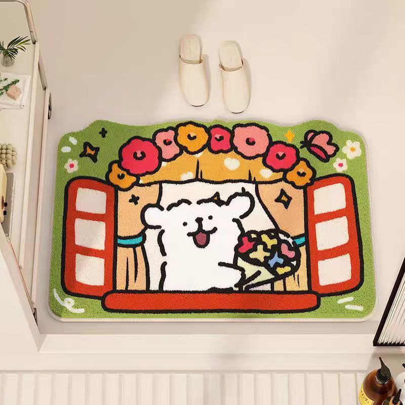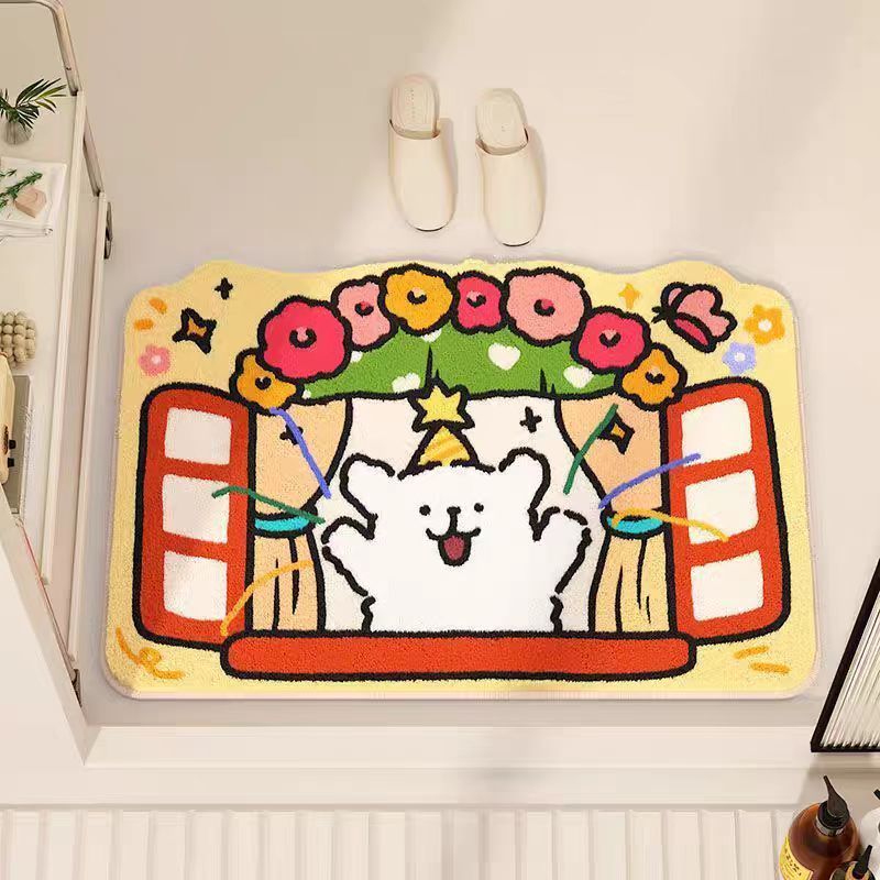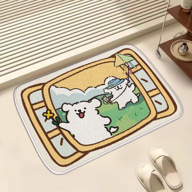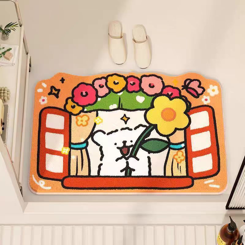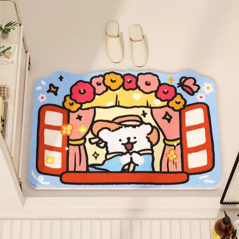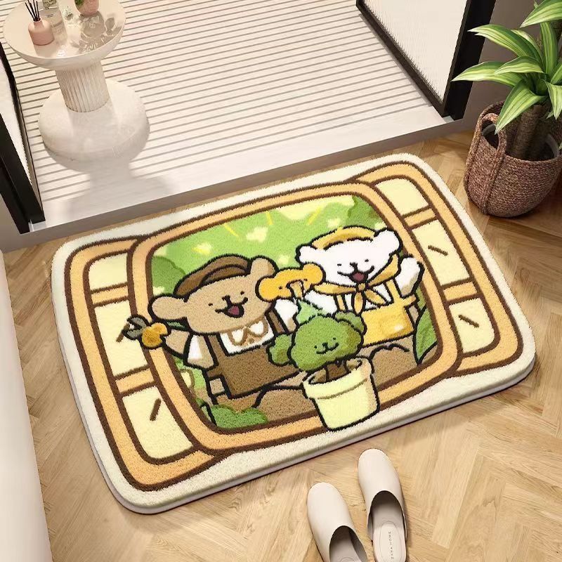 만화 광장 강아지 캐시미어 욕실 화장실 문 부드럽고 편안한 더러운 저항하는 바닥 매트 침실 침실 바닥 매트스토어 가기