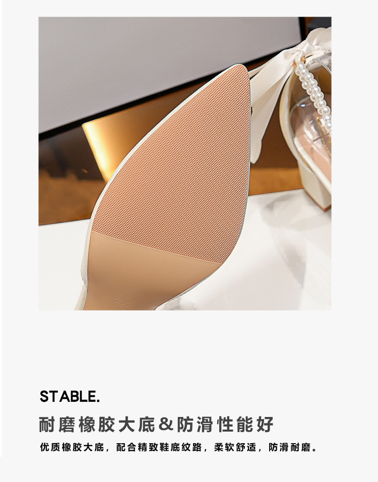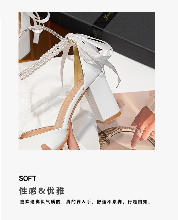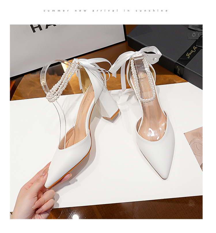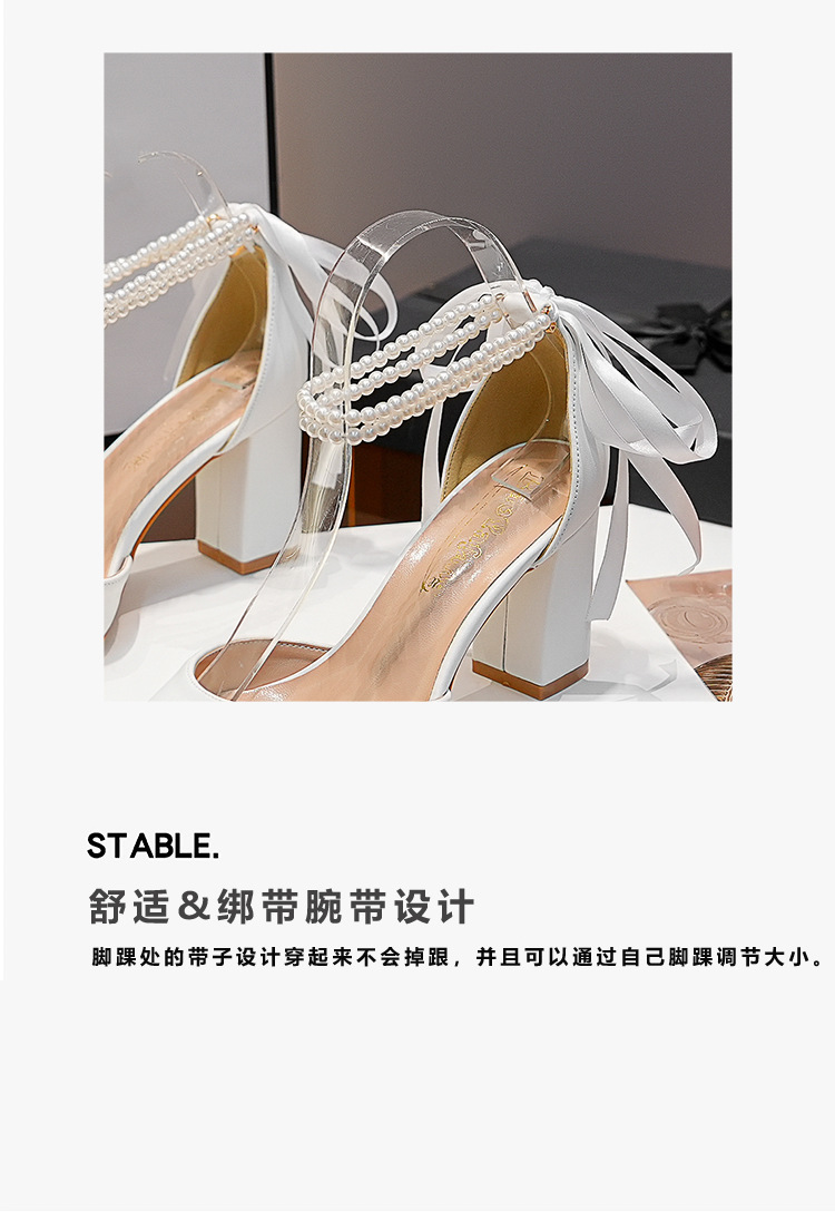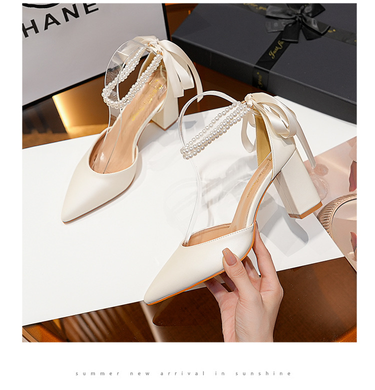 새로운 봄과 가을 결혼식 포인팅 여성 두꺼운 힐 펄 리본 유럽과 미국의 대외 무역 플러스 사이즈 화이트 여성 올 매치 여성 신발스토어 가기