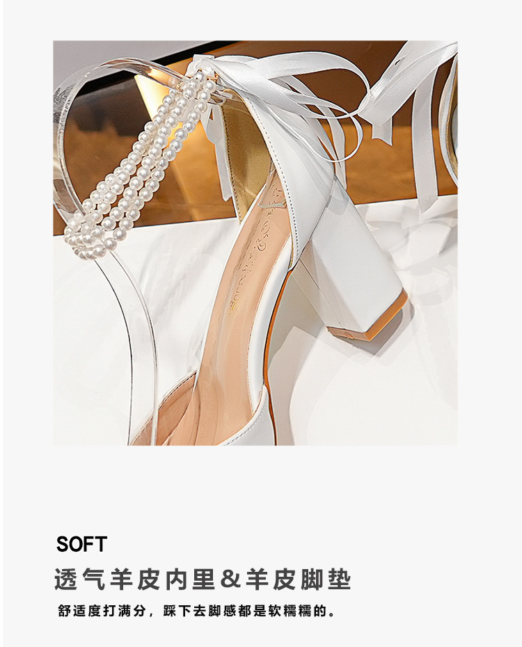 새로운 봄과 가을 결혼식 포인팅 여성 두꺼운 힐 펄 리본 유럽과 미국의 대외 무역 플러스 사이즈 화이트 여성 올 매치 여성 신발