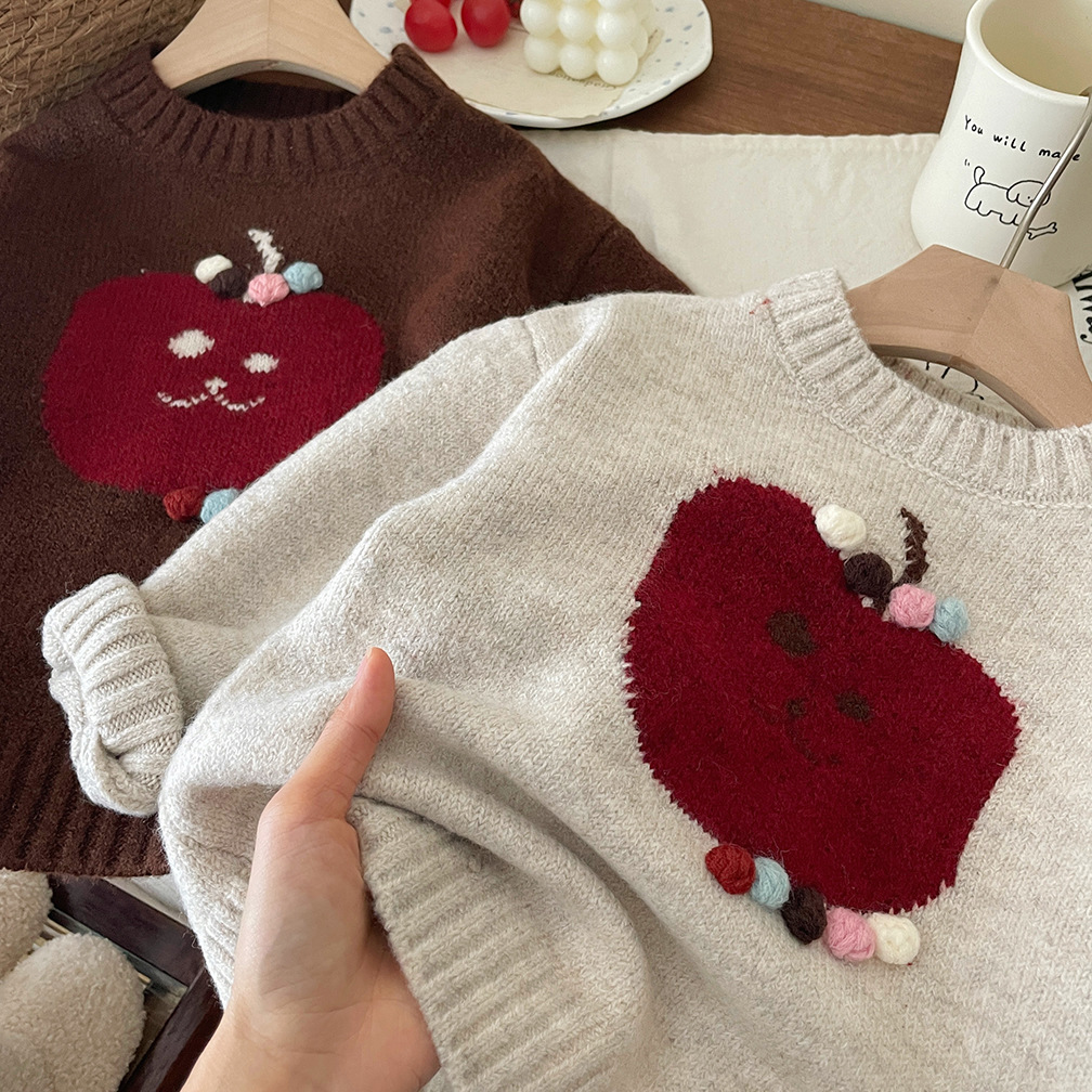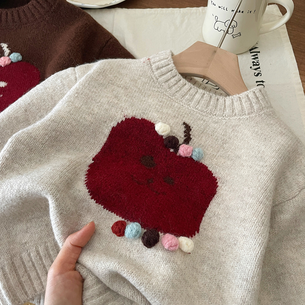 여자 한국 스타일 애플 손으로 수 놓은 두꺼운 바닥 스웨터 풀오버 스웨터 25 가을, 겨울 새로운 스타일 귀엽고 세련된스토어 가기