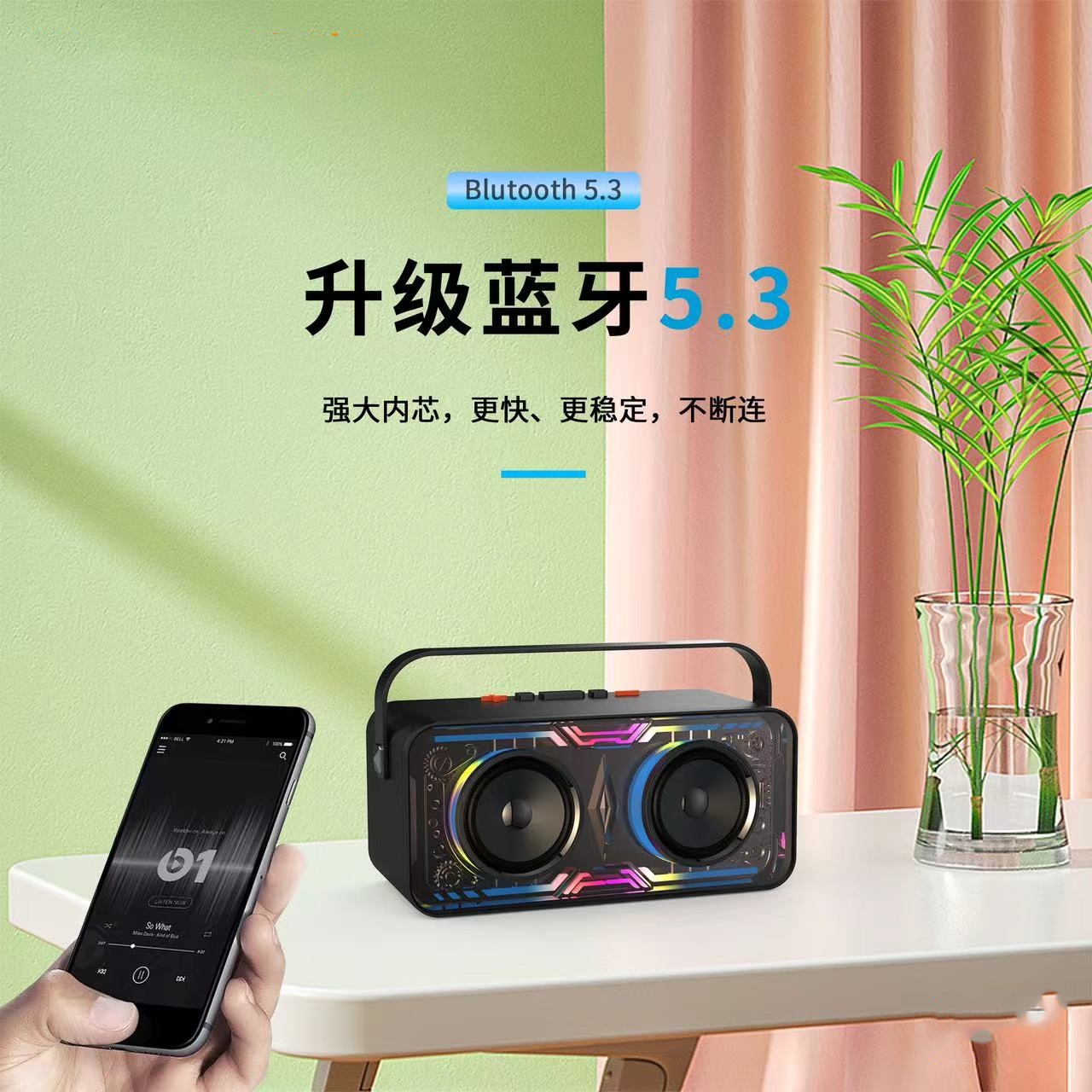 국경 무선 블루투스 스피커 투명 다채로운 RGB 램프 휴대용 휴대용 울트라 낮은 휴대 전화 무선 충전 오디오