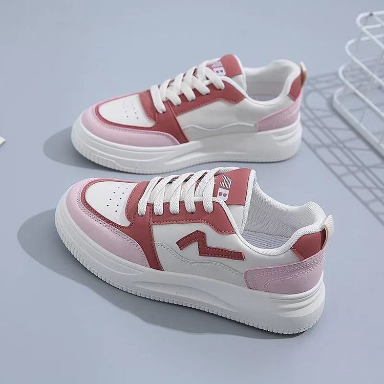 厚底板鞋女2024春秋四季韩版撞色港风休闲小白鞋学生时尚运动鞋潮