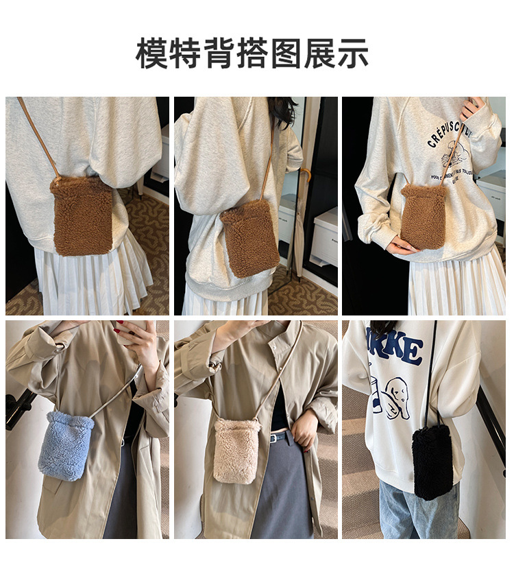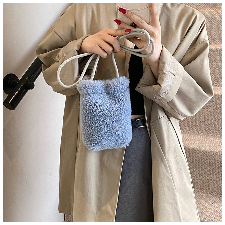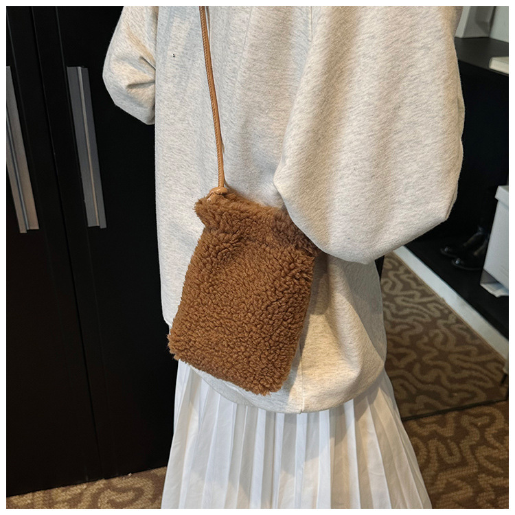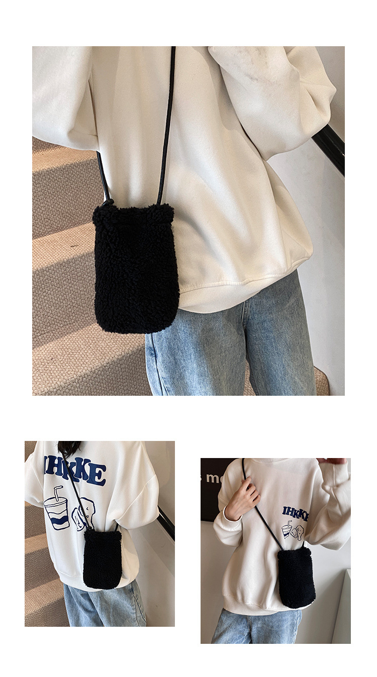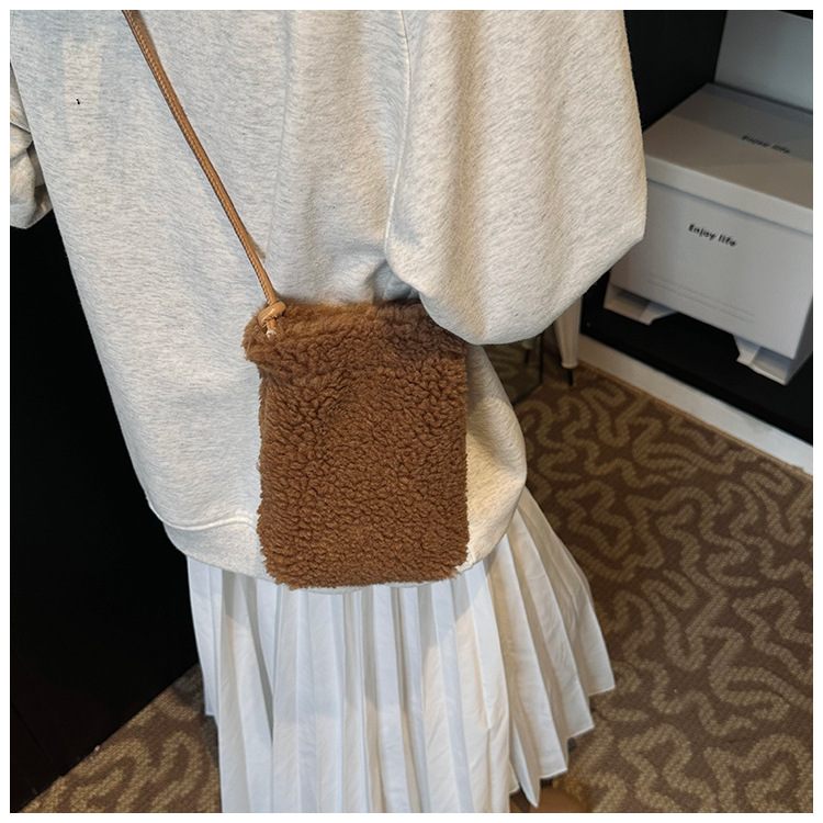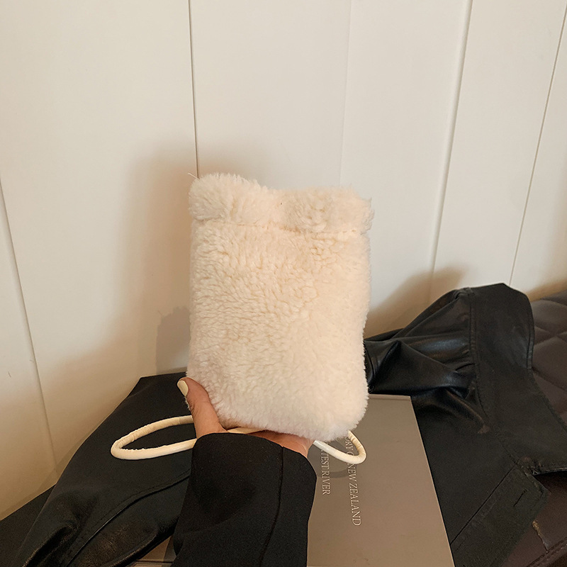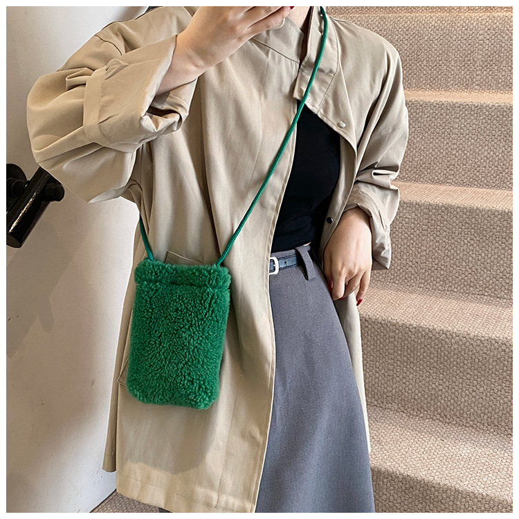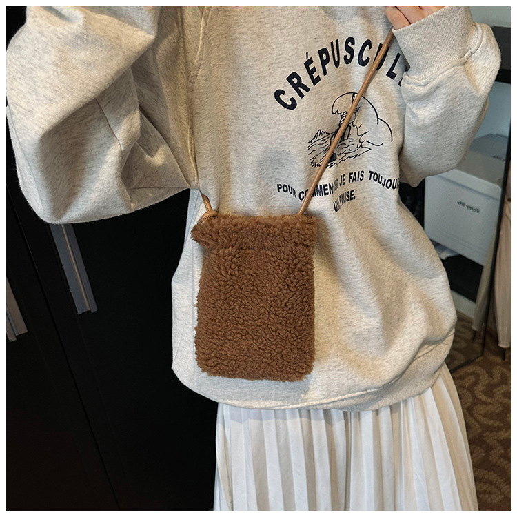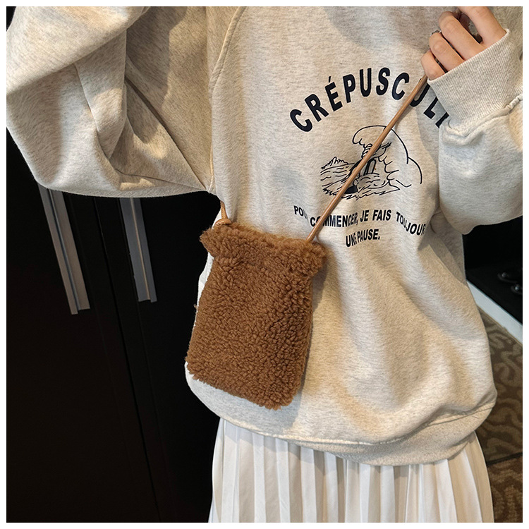 양모 가방 가을 새로운 헤어 가방 한국 솔리드 컬러 휴대 전화 가방 틈새 크로스 바디 코인 지갑 플러시 숄더 백 여성스토어 가기