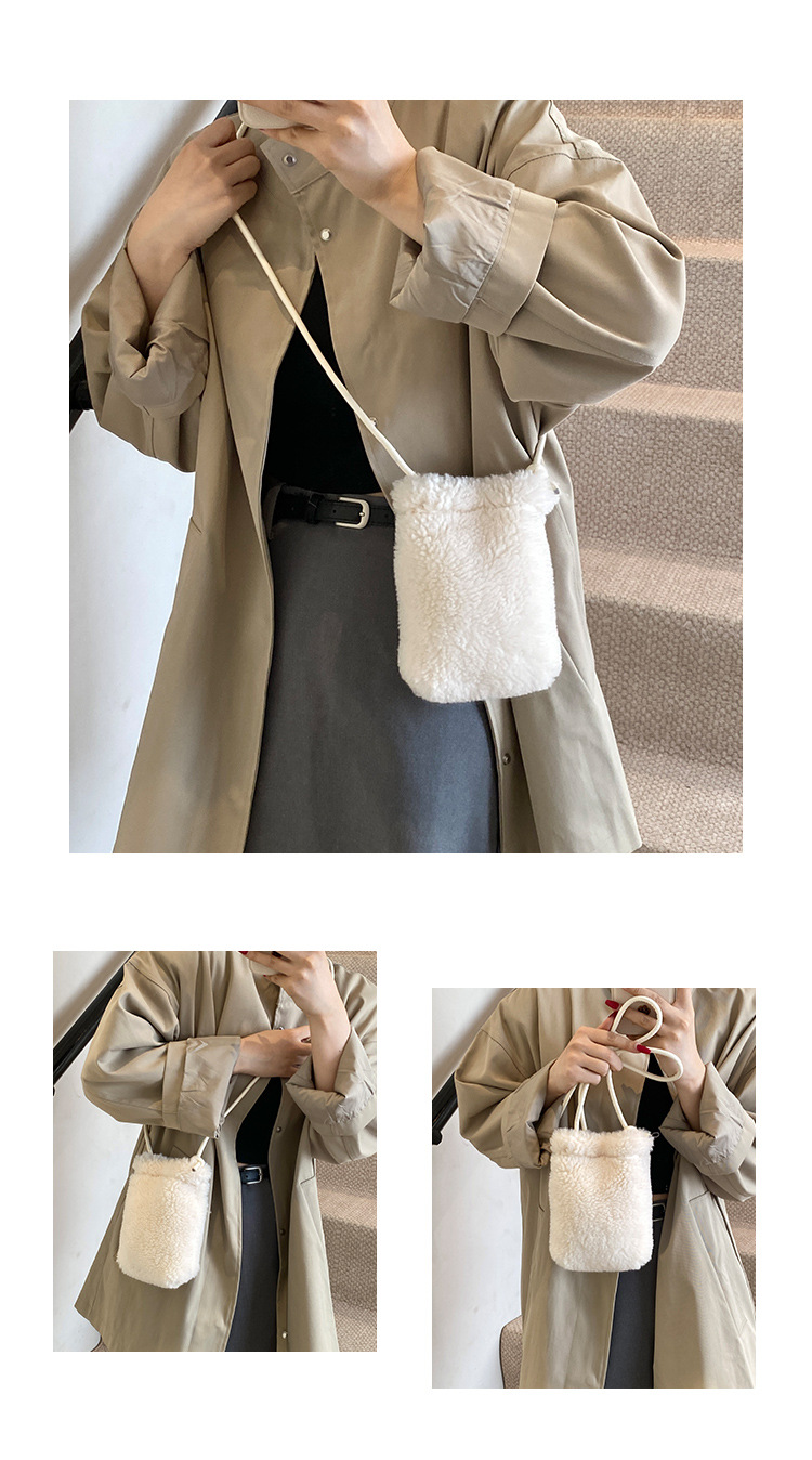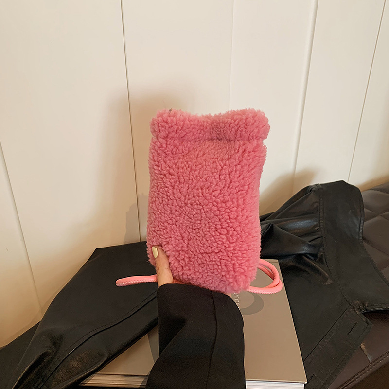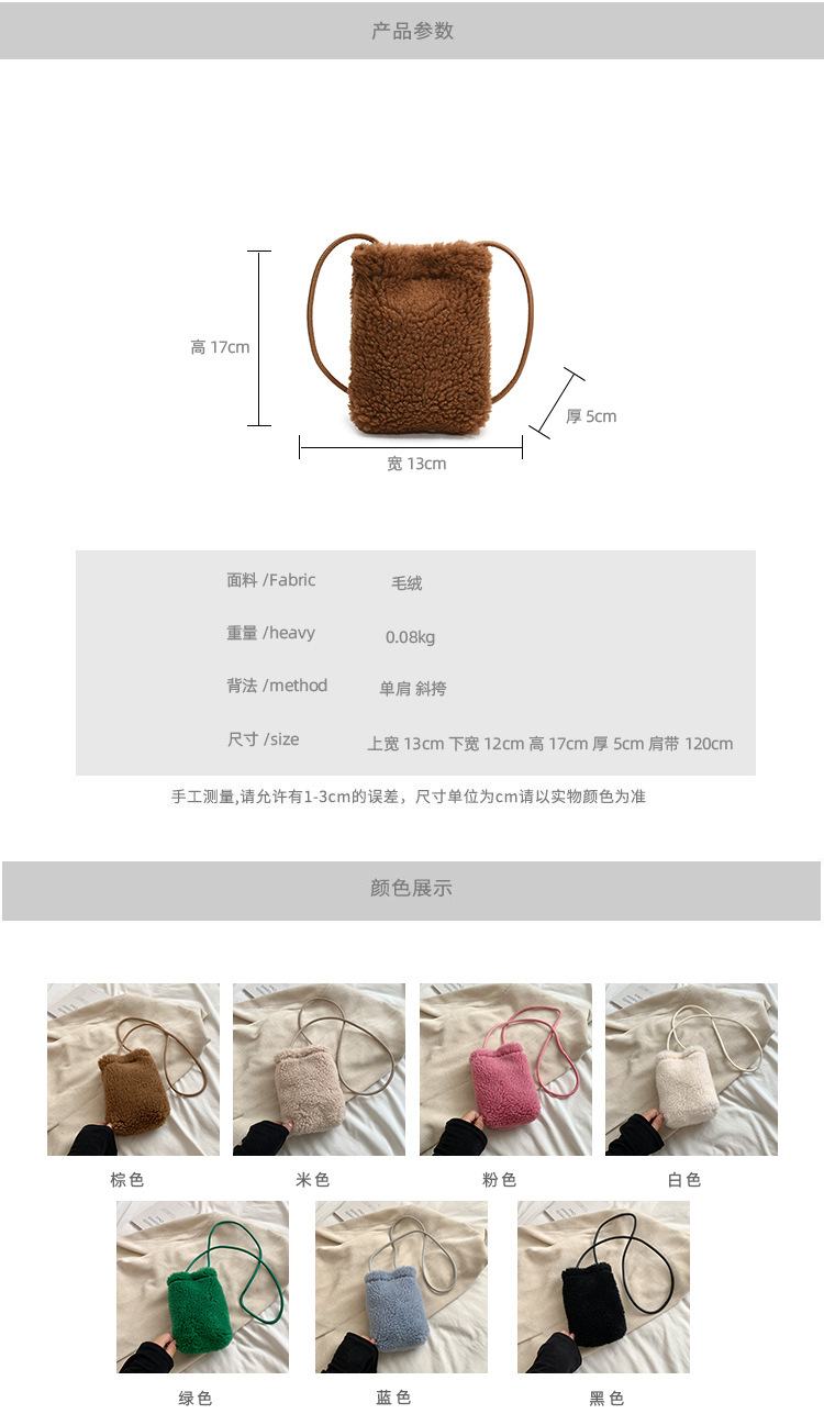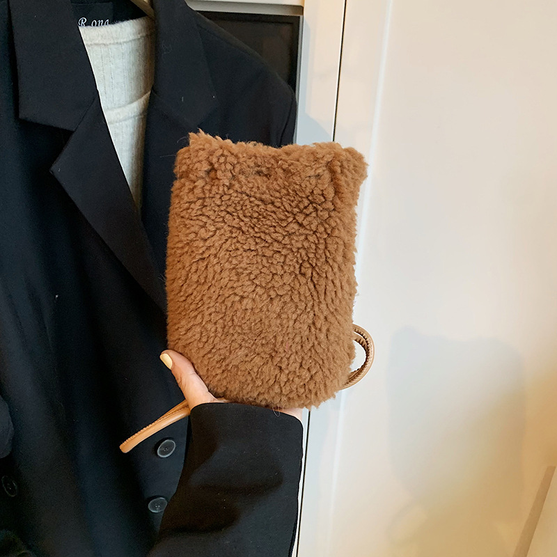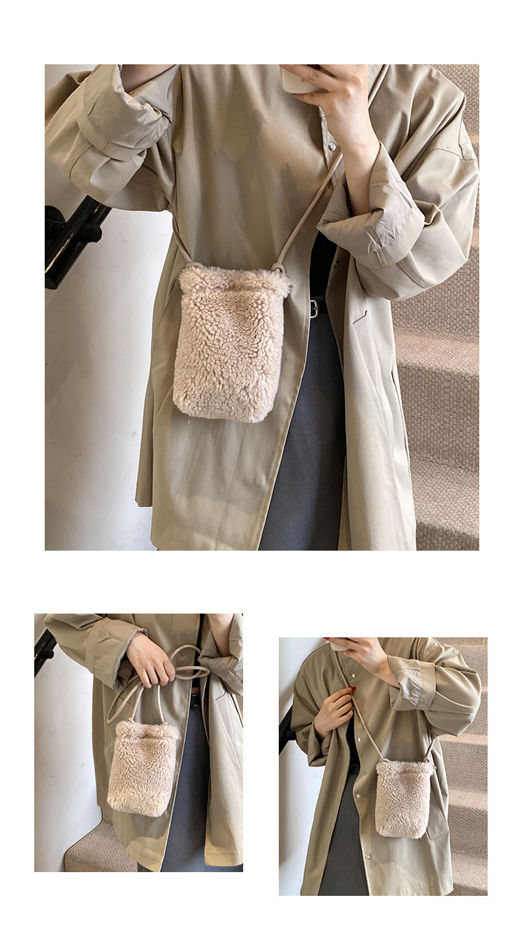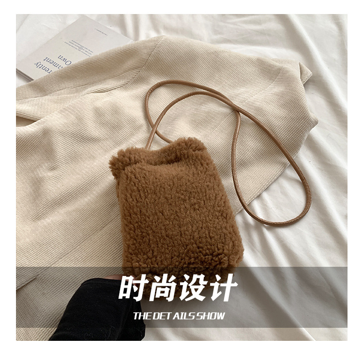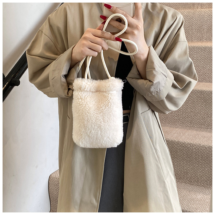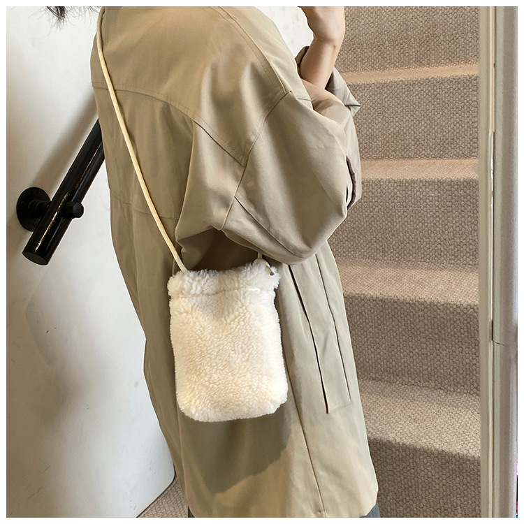양모 가방 가을 새로운 헤어 가방 한국 솔리드 컬러 휴대 전화 가방 틈새 크로스 바디 코인 지갑 플러시 숄더 백 여성스토어 가기