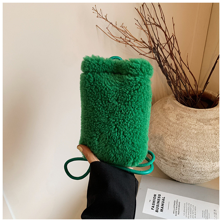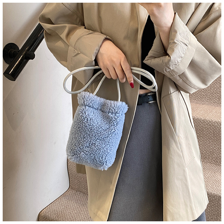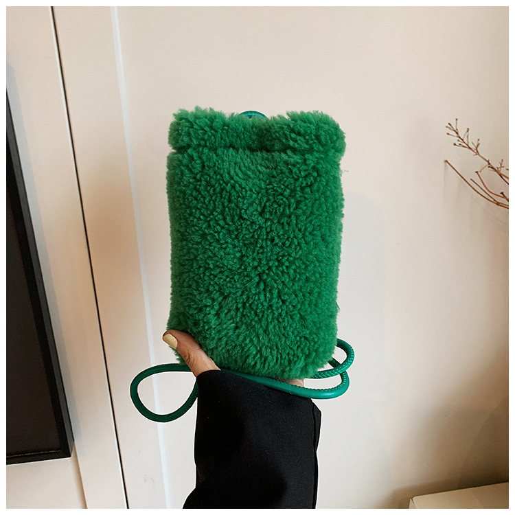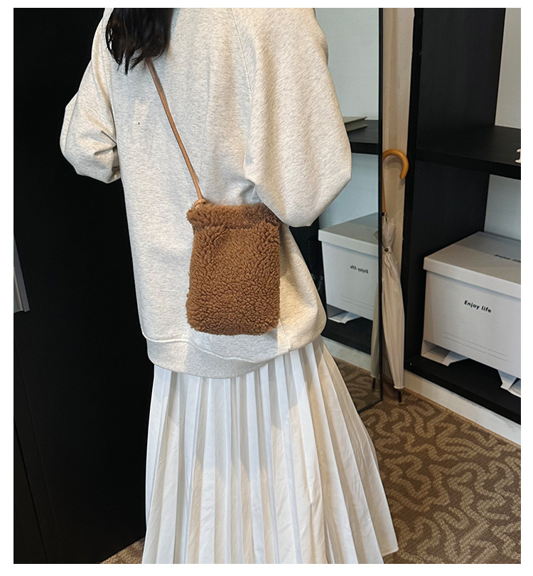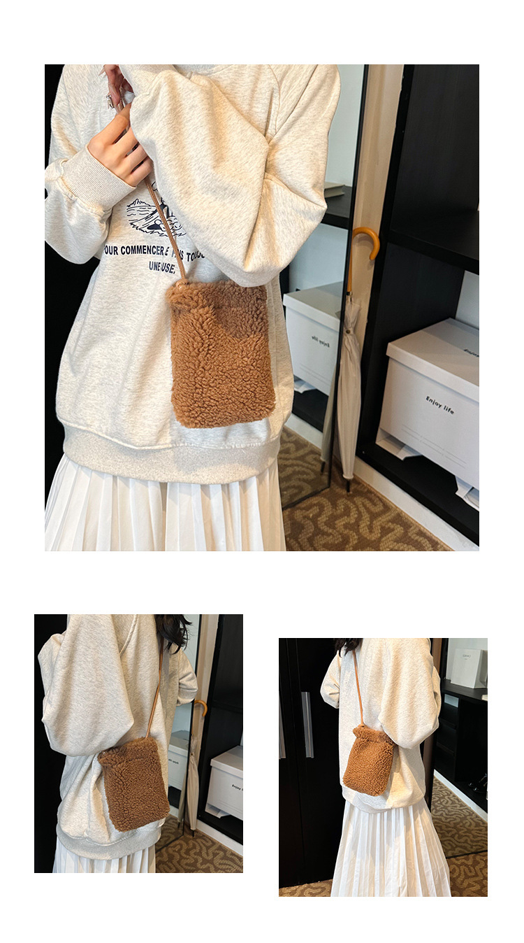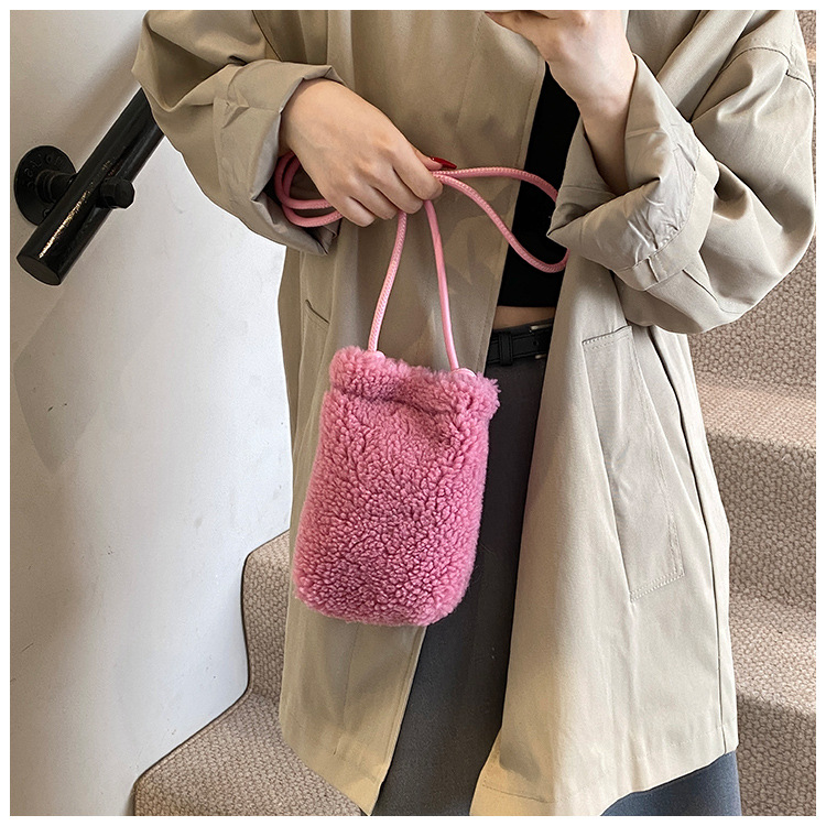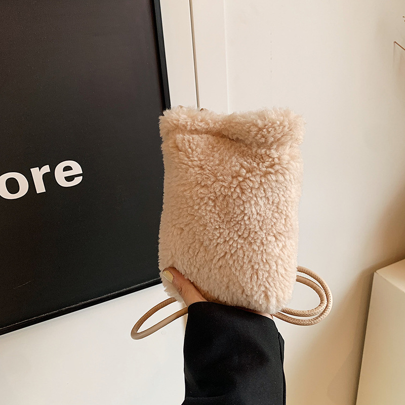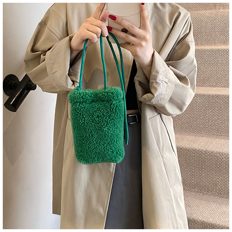 양모 가방 가을 새로운 헤어 가방 한국 솔리드 컬러 휴대 전화 가방 틈새 크로스 바디 코인 지갑 플러시 숄더 백 여성스토어 가기