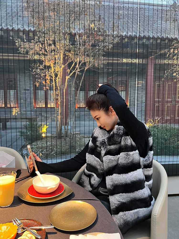 24 가을과 겨울 새로운 하이 엔드 토토로 코트 여성의 명암 색 줄무늬 환경 보호 토끼 모피 조끼 짧은 조끼