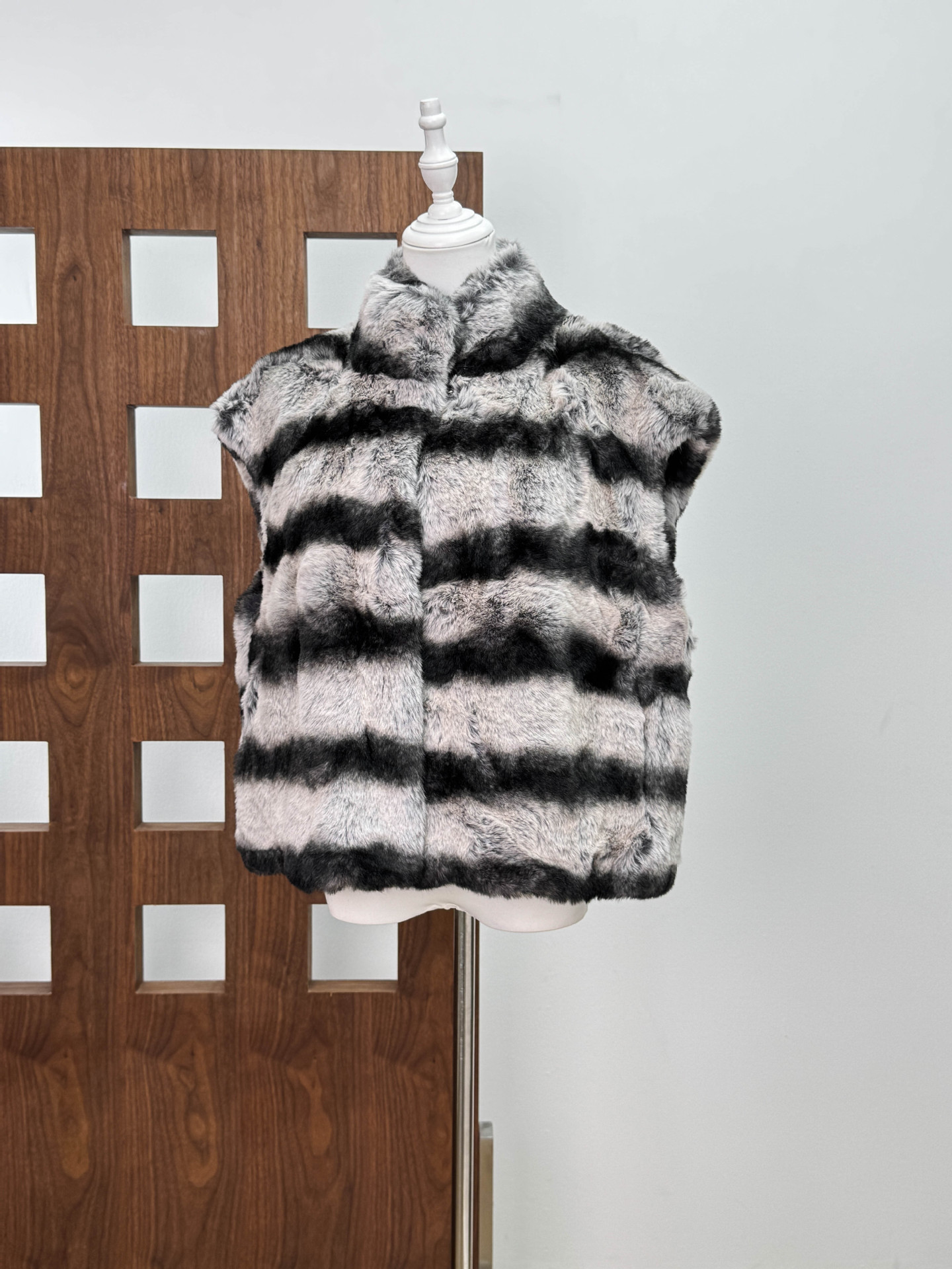 24 가을과 겨울 새로운 하이 엔드 토토로 코트 여성의 명암 색 줄무늬 환경 보호 토끼 모피 조끼 짧은 조끼스토어 가기