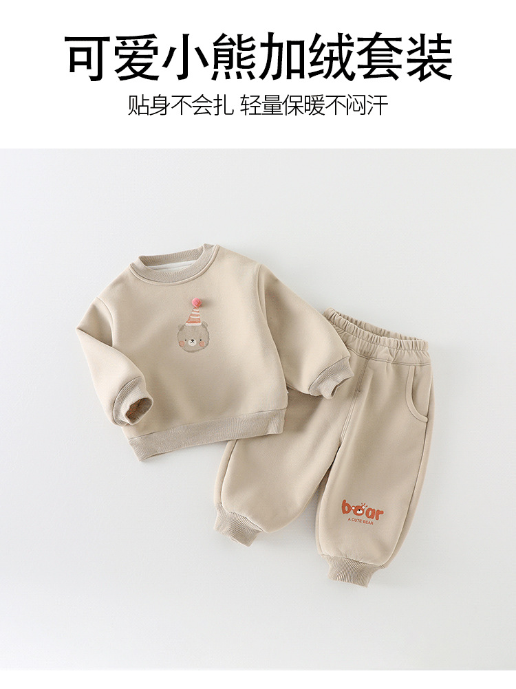 어린이 세트 겨울 아기의 기모 두 조각 분할 가을과 겨울 아기 땀 바지 외출 의류 카테고리 A스토어 가기