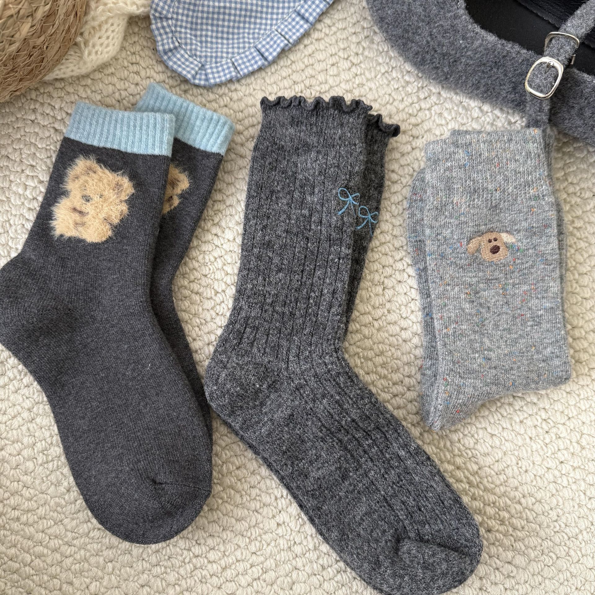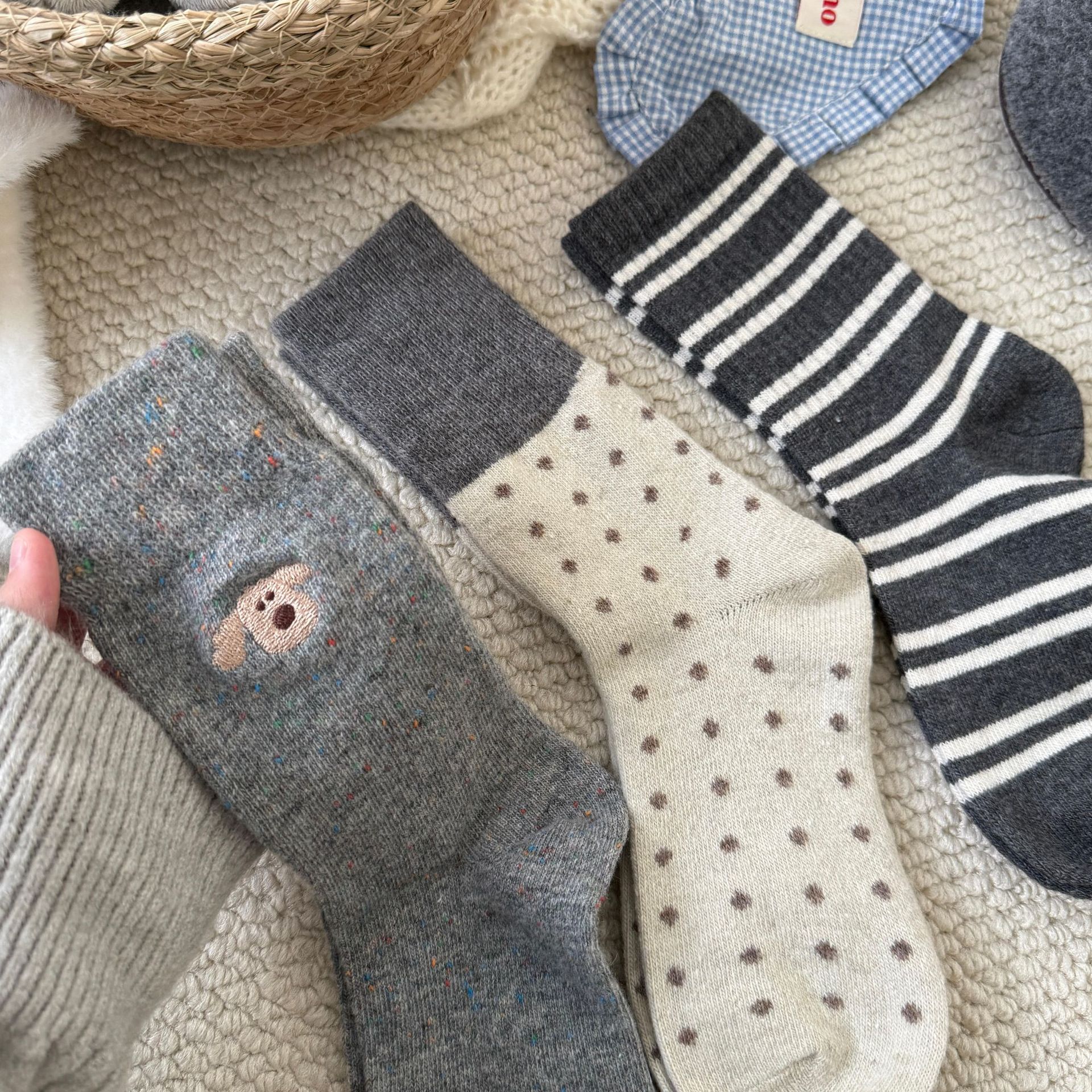 한국 스타일 양말 여성 가을 겨울 맞춤법 작은 웨이브 도트 양모 양말 스타킹 입 바느질 더미 스타킹 여성용 달콤한 따뜻한 미드 튜브 여성용 양말스토어 가기