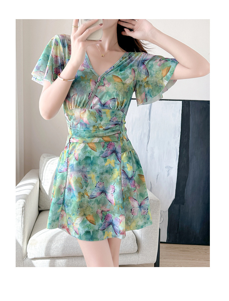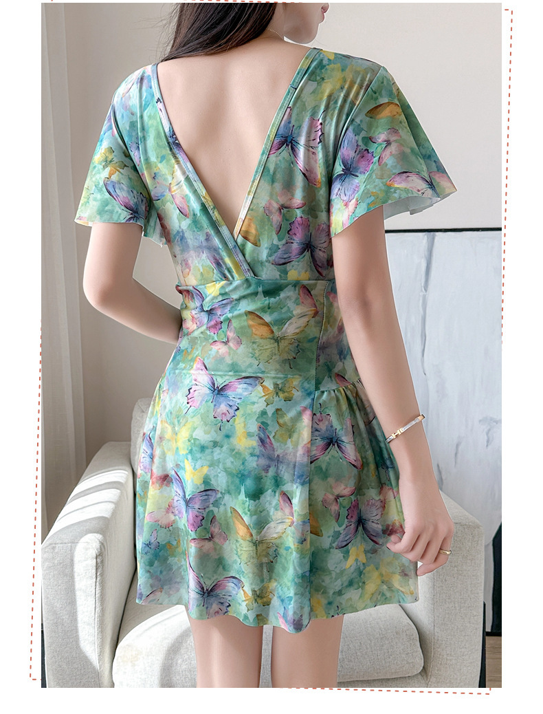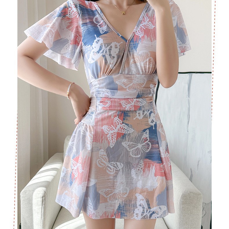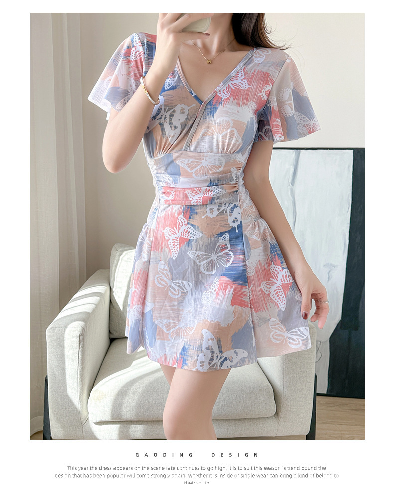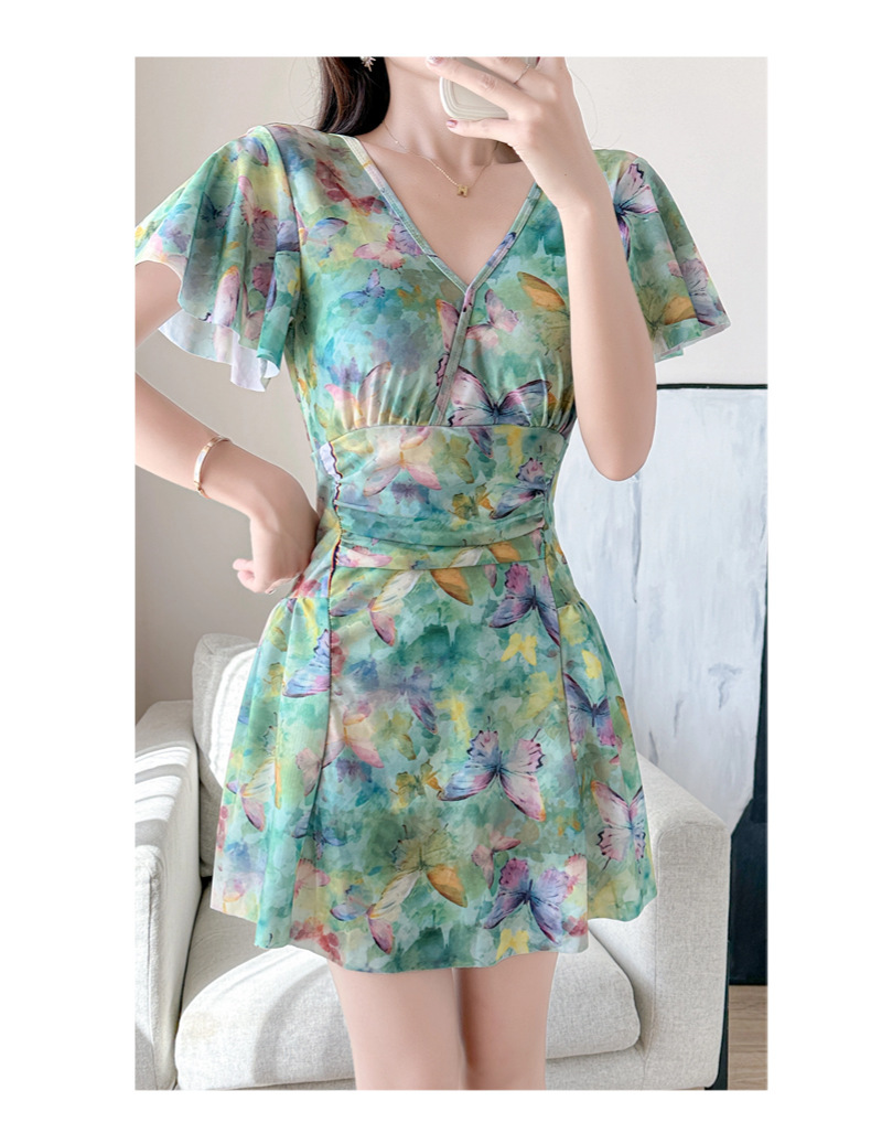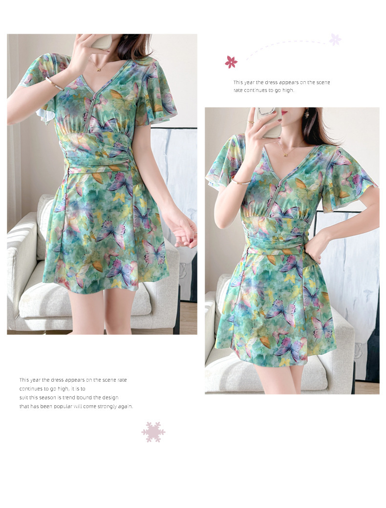 순수한 매력의 원피스 수영복, 여성용, 보수적이고 날씬해 보이는 배 가리기, 한국 온천용, 큰 사이즈, 스커트 스타일, 프린트, 휴가용, 해변 수영복