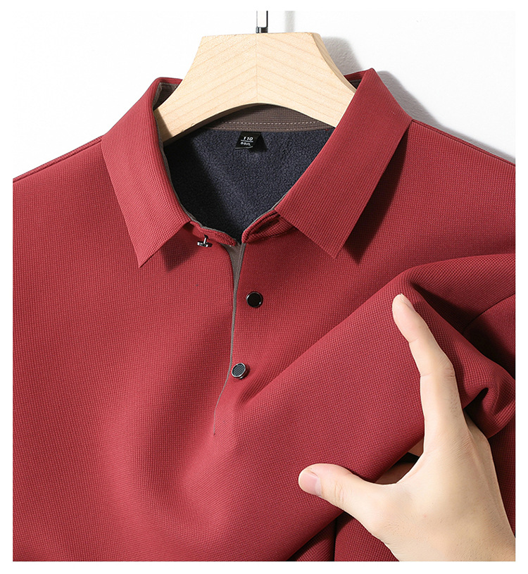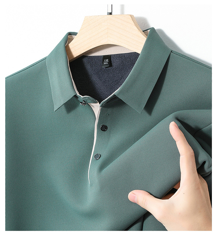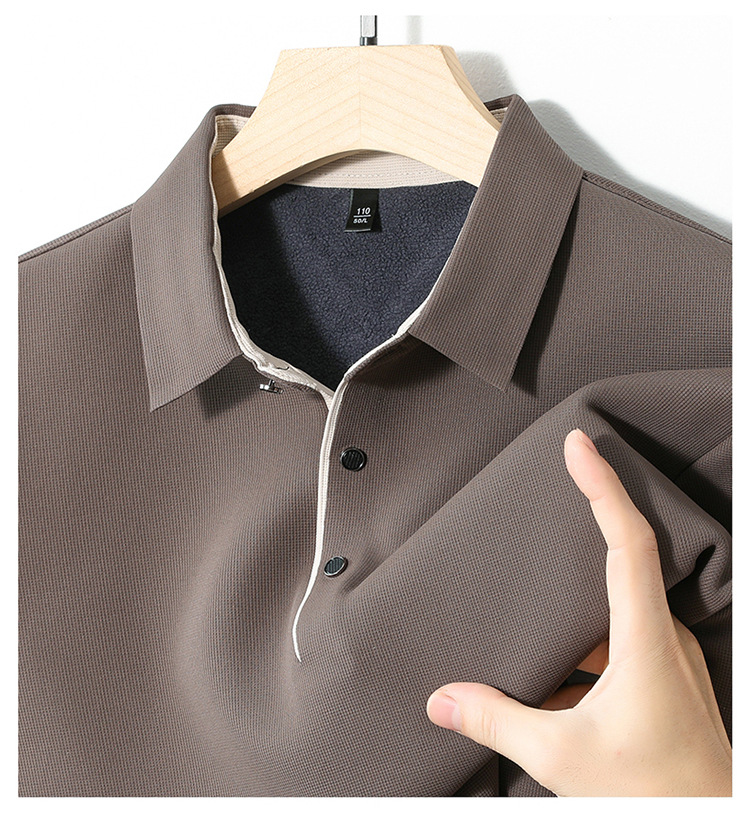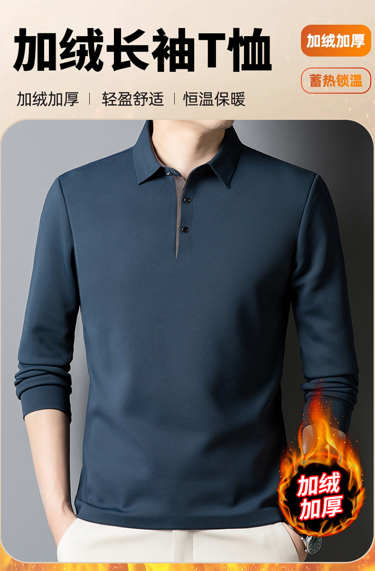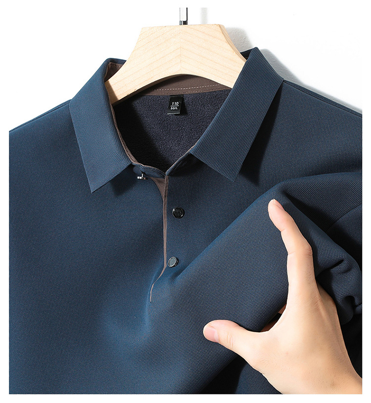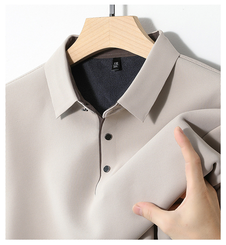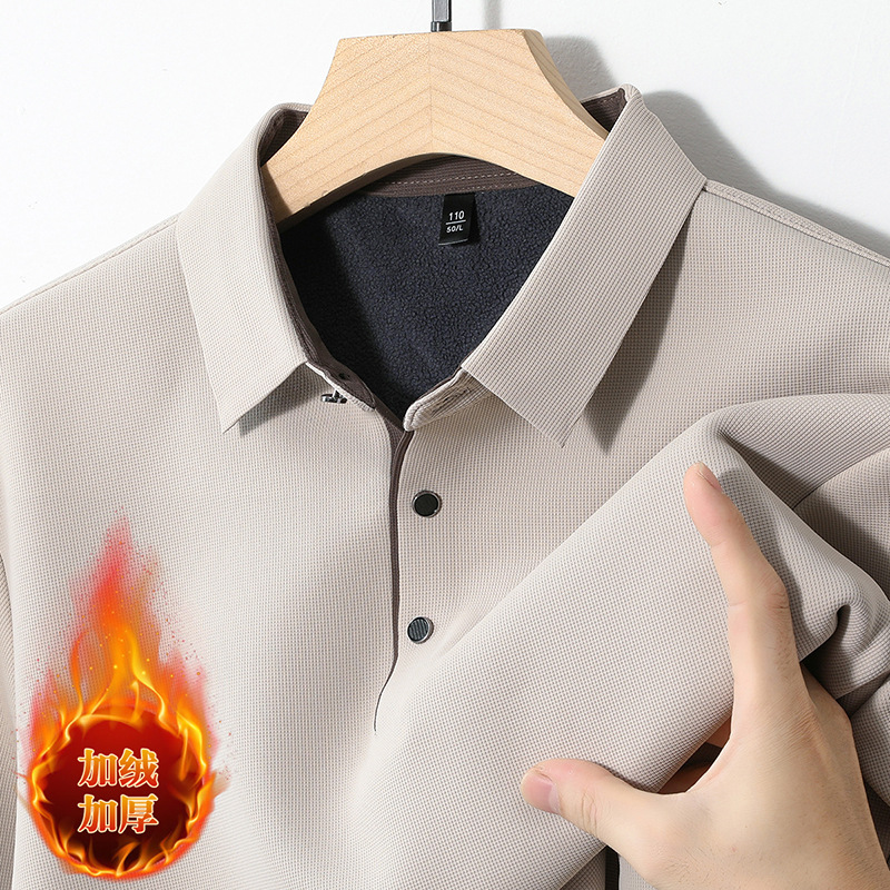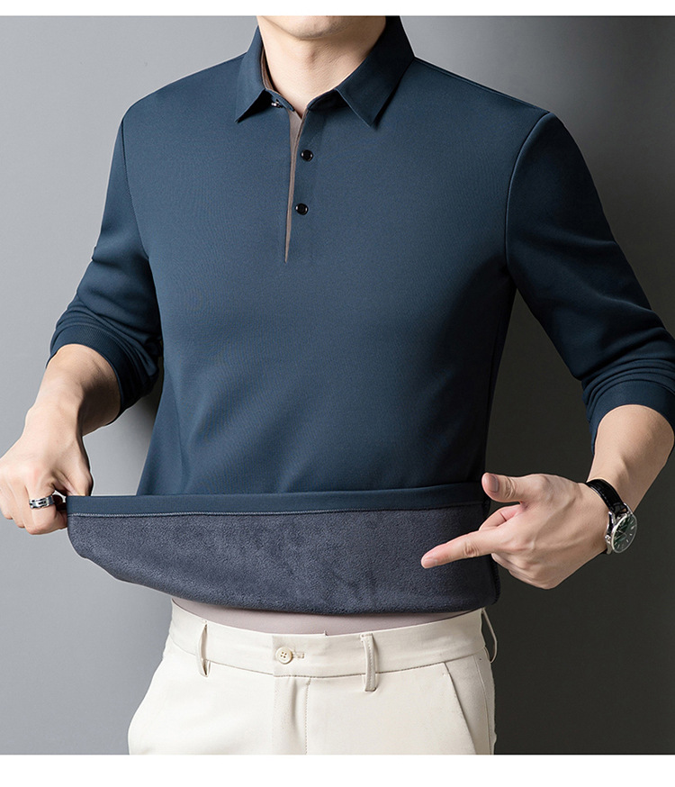 기모 두꺼운 원활한 폴로 셔츠 남자의 겨울 새로운 사업 캐주얼 콘트라스트 랩 따뜻한 긴 소매베이스 셔츠