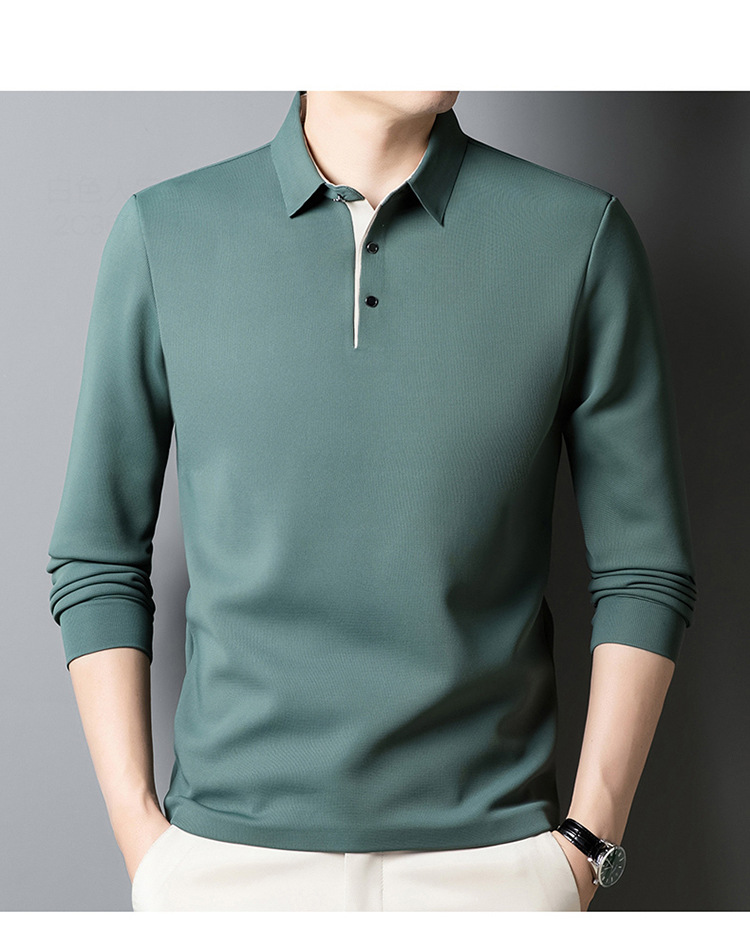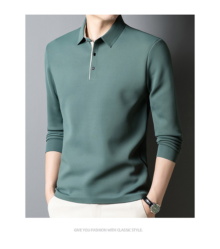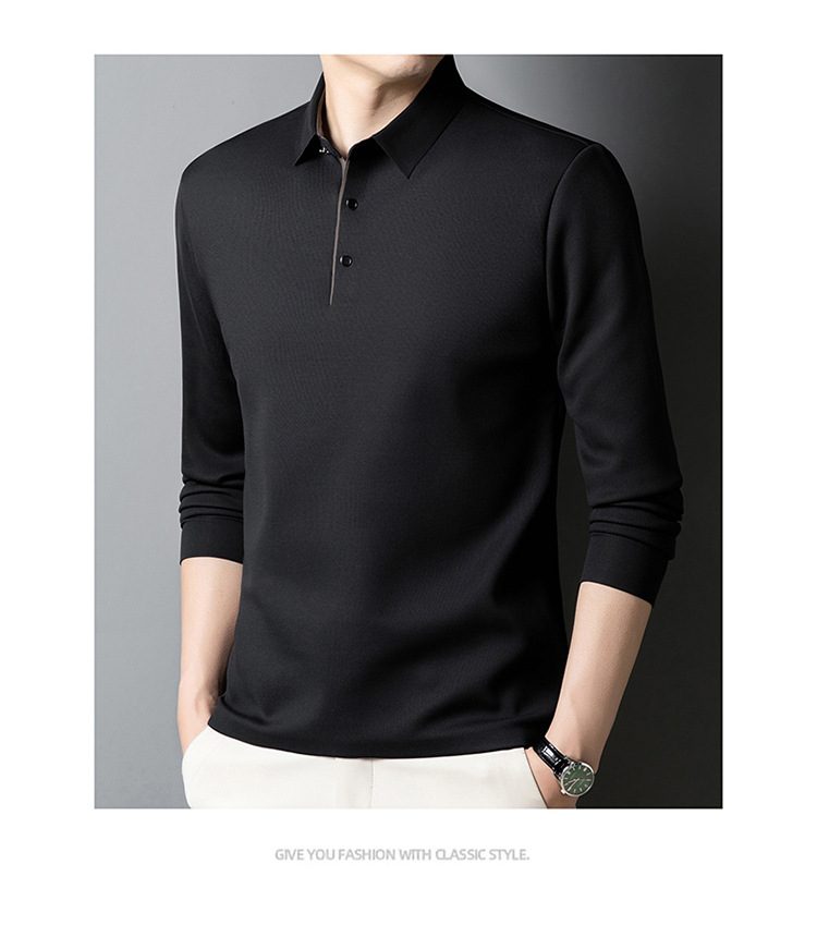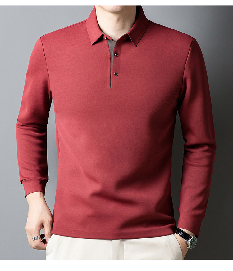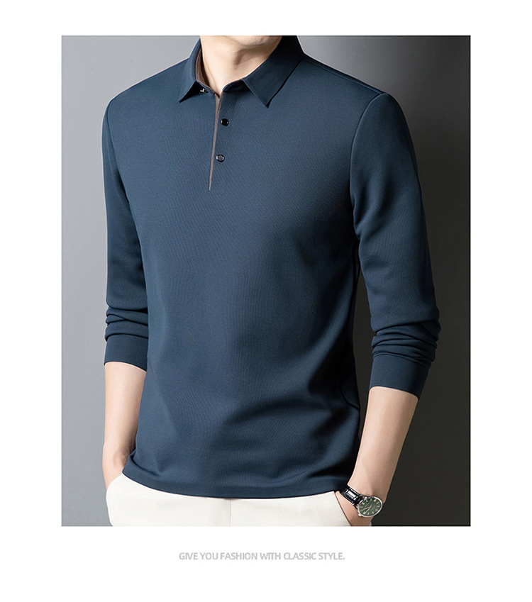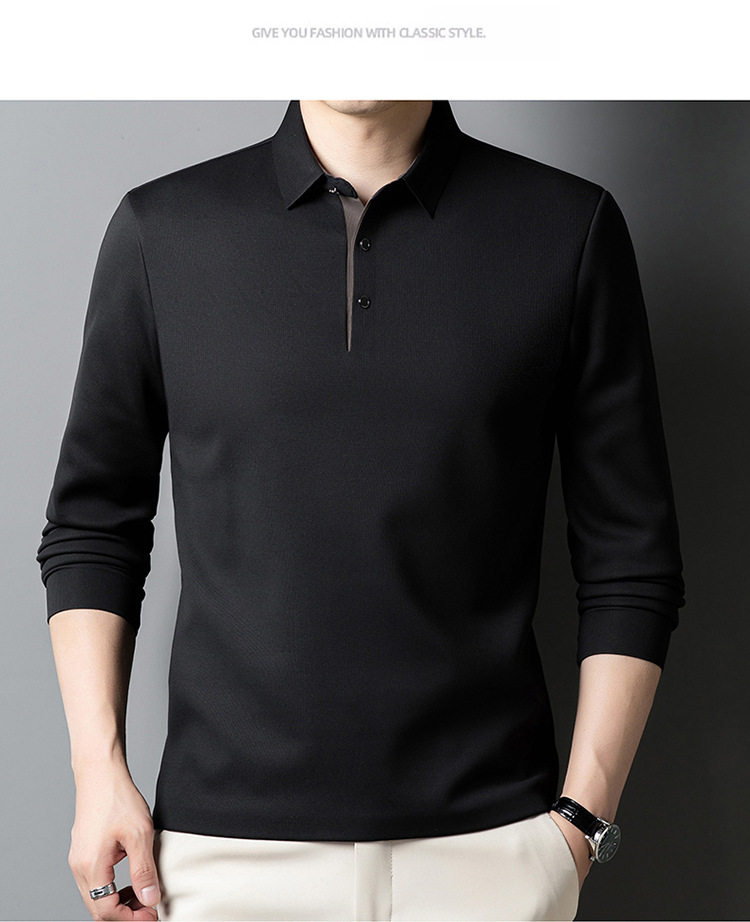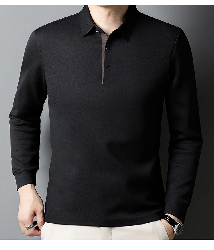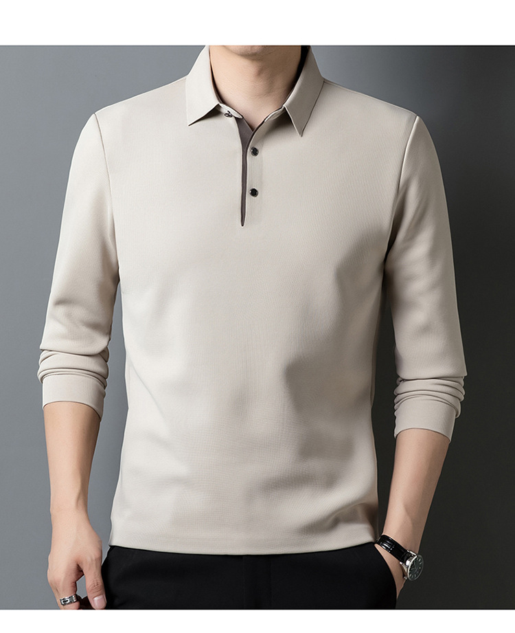기모 두꺼운 원활한 폴로 셔츠 남자의 겨울 새로운 사업 캐주얼 콘트라스트 랩 따뜻한 긴 소매베이스 셔츠
