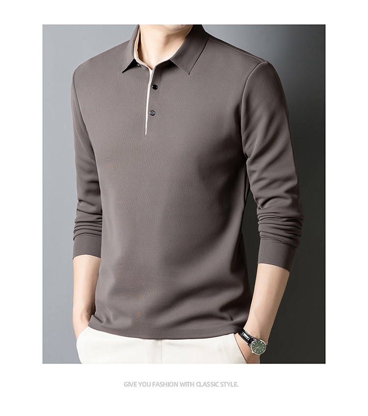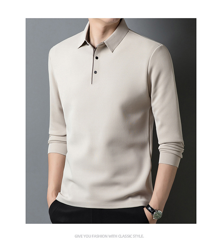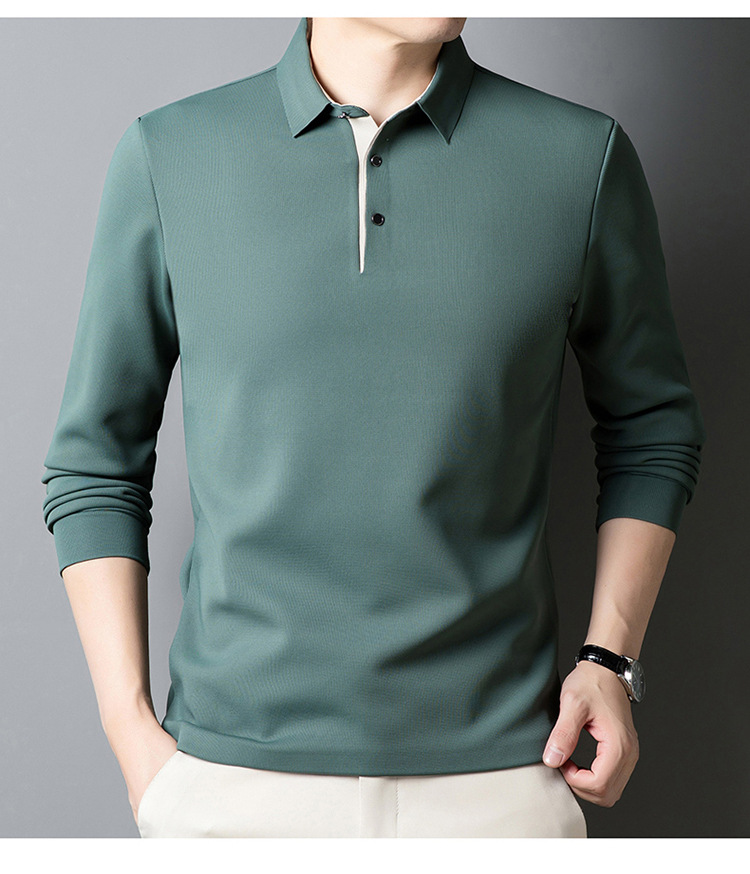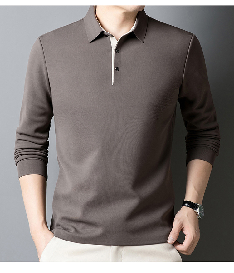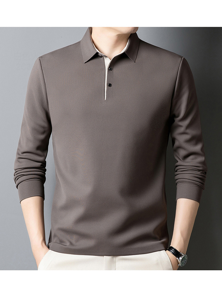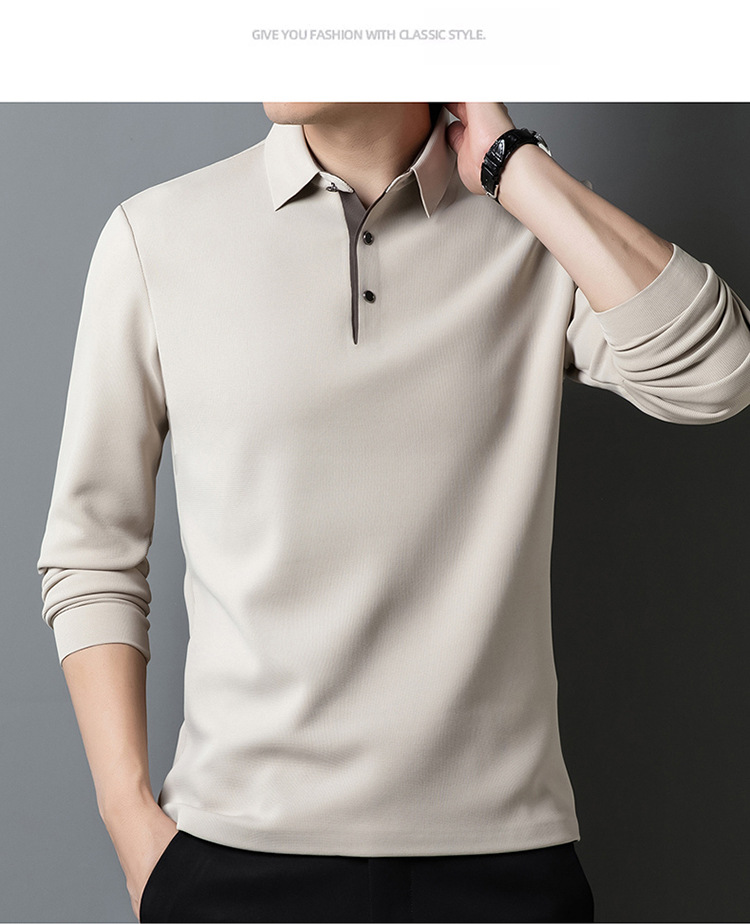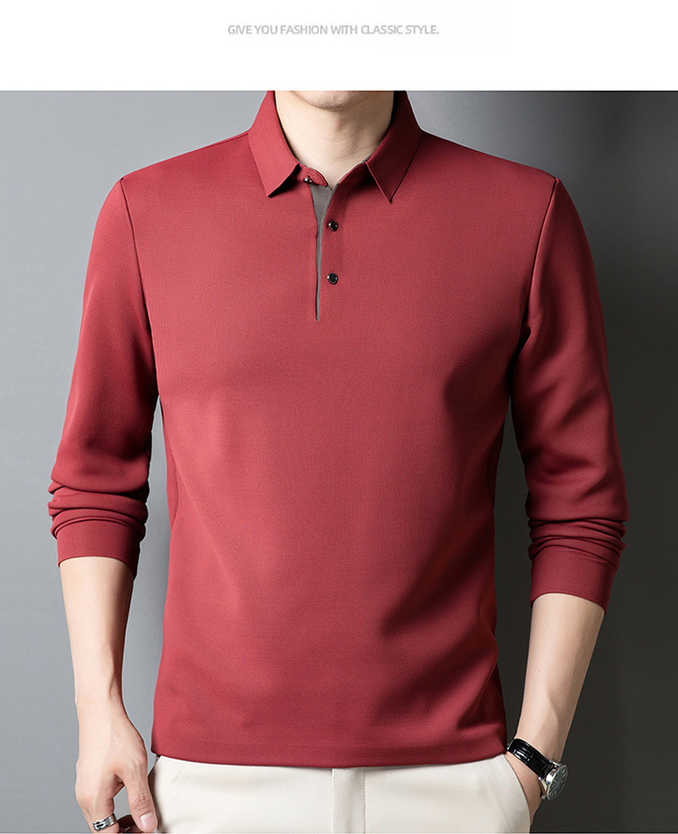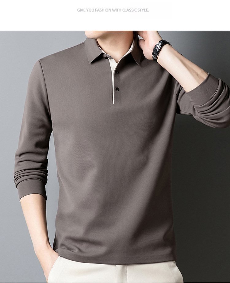 기모 두꺼운 원활한 폴로 셔츠 남자의 겨울 새로운 사업 캐주얼 콘트라스트 랩 따뜻한 긴 소매베이스 셔츠