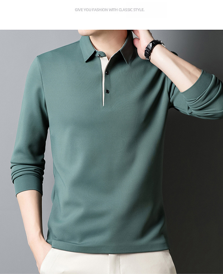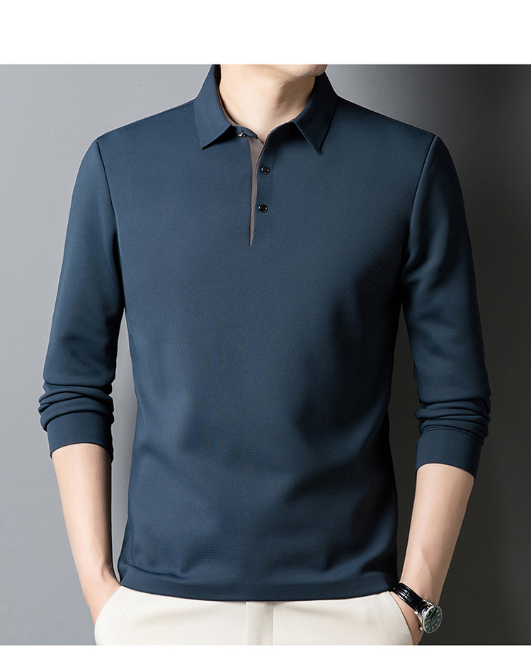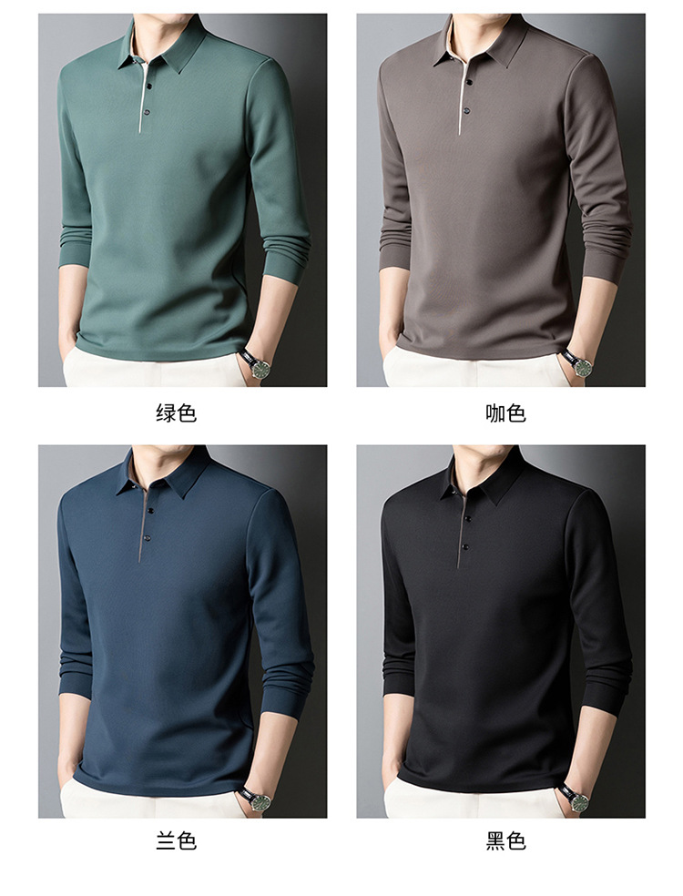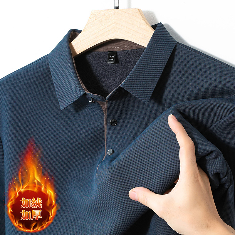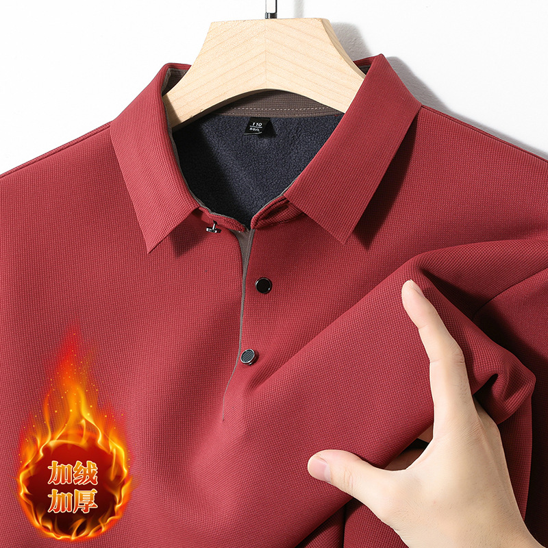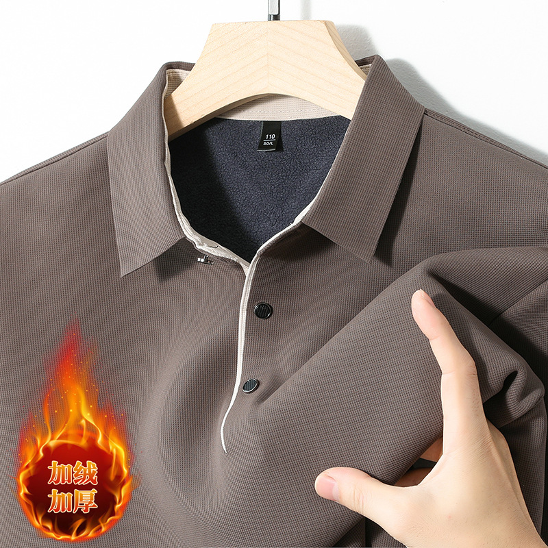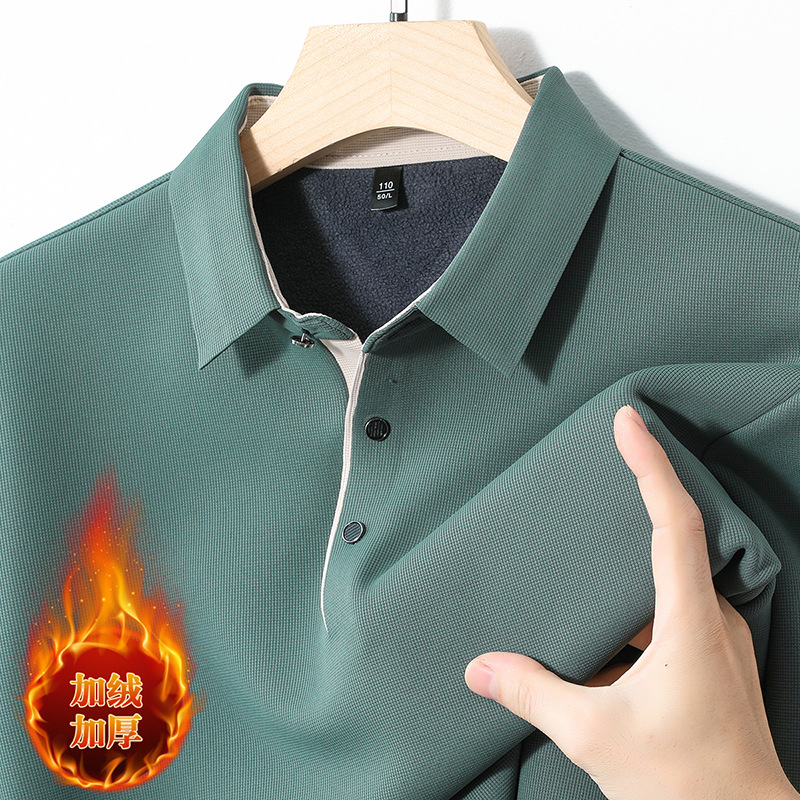 기모 두꺼운 원활한 폴로 셔츠 남자의 겨울 새로운 사업 캐주얼 콘트라스트 랩 따뜻한 긴 소매베이스 셔츠스토어 가기