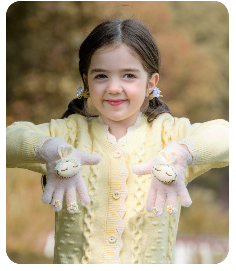 가을과 겨울 어린이 장갑 귀여운 따뜻한 토끼 방풍 기모 손가락 세트 아기 어린이 다섯 손가락 세트스토어 가기