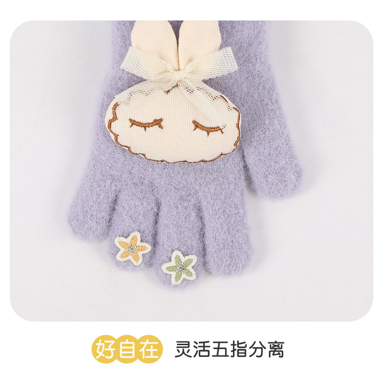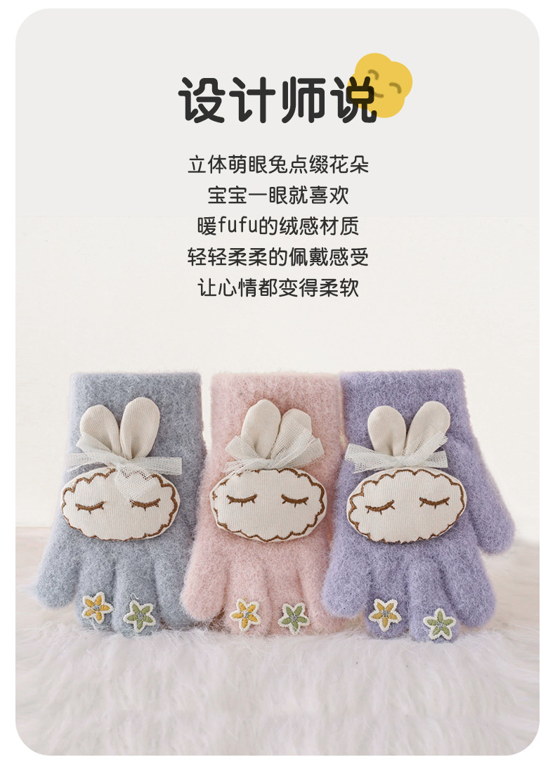 가을과 겨울 어린이 장갑 귀여운 따뜻한 토끼 방풍 기모 손가락 세트 아기 어린이 다섯 손가락 세트