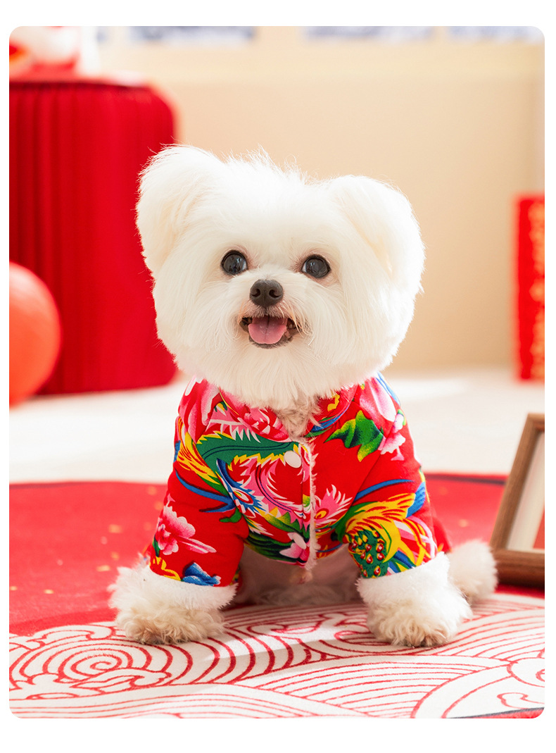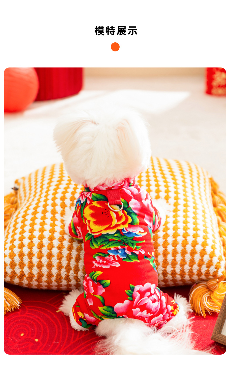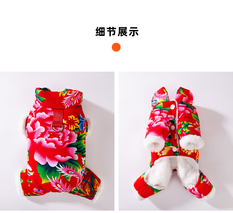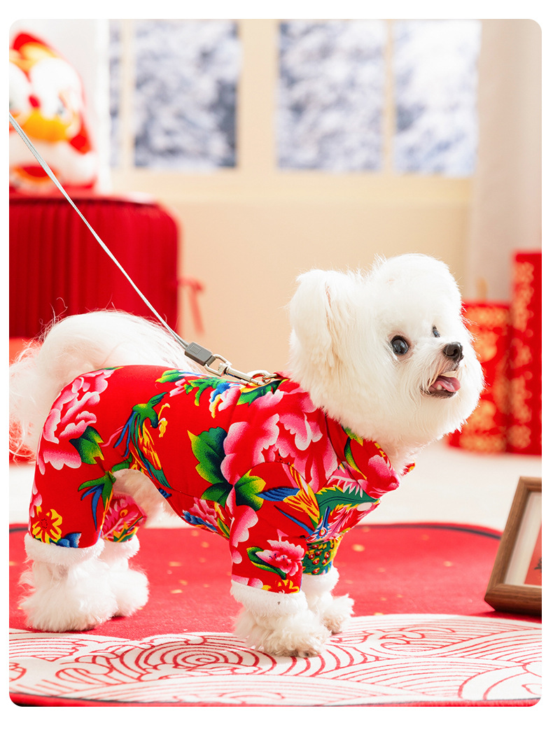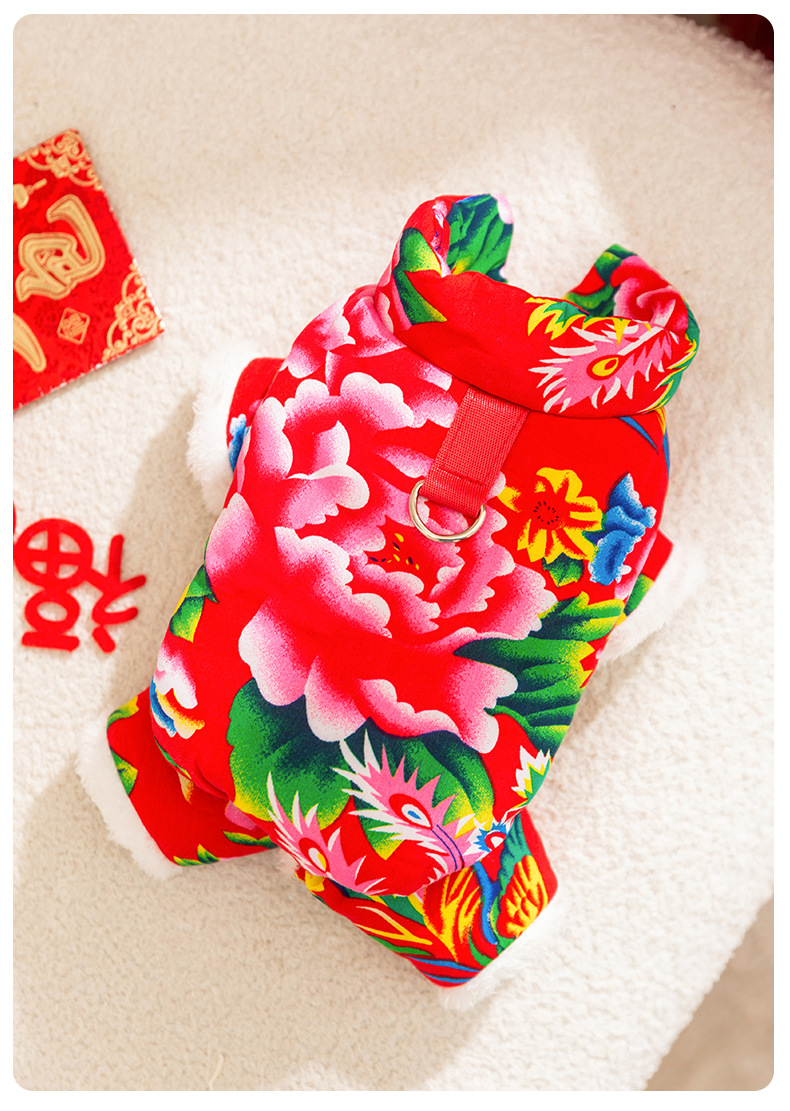 가을과 겨울 개 옷 북동쪽 큰 꽃 두껍게 견인 네 다리 면화 옷 테디 Bixu 작은 개 애완 동물 옷