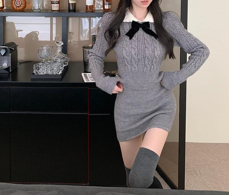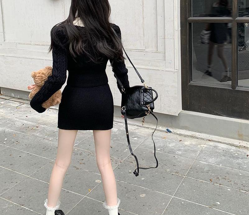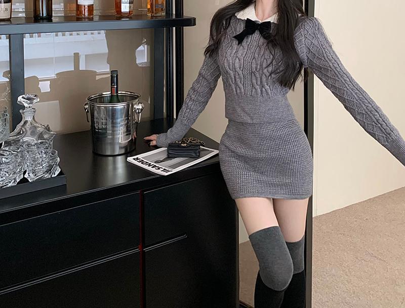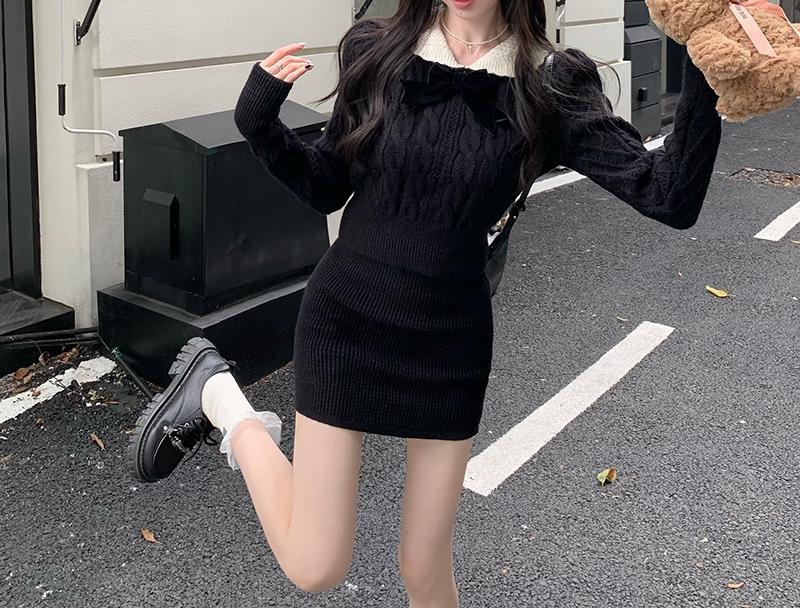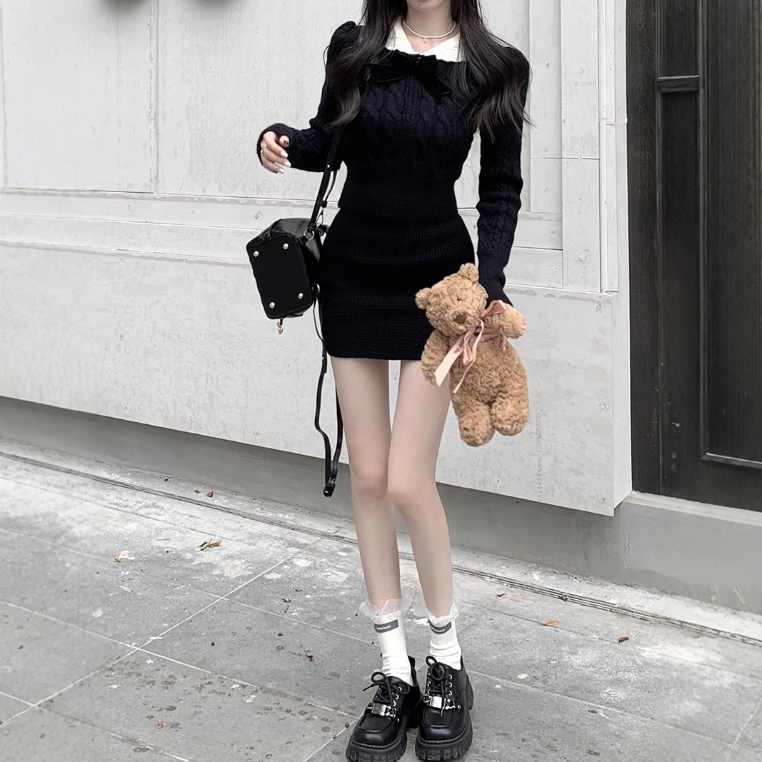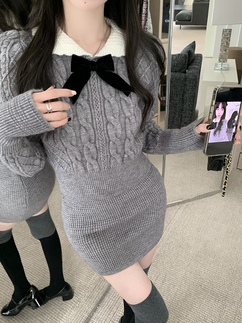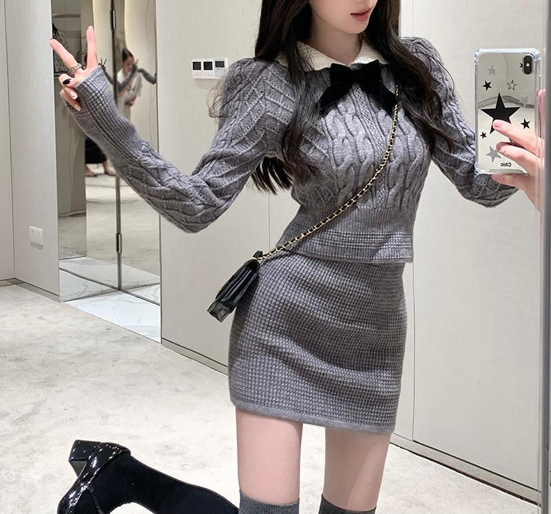 빈티지 패션 니트 세트 여성용 활 스웨터 탑 가을과 겨울 스커트 우아한 나이 감소 달콤하고 뜨거운 투피스 세트