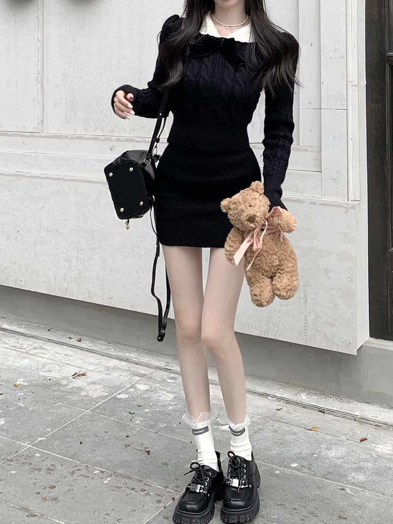 빈티지 패션 니트 세트 여성용 활 스웨터 탑 가을과 겨울 스커트 우아한 나이 감소 달콤하고 뜨거운 투피스 세트스토어 가기