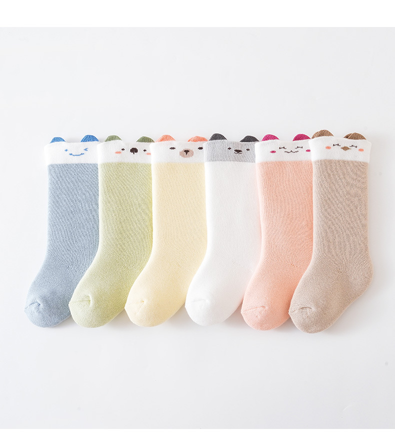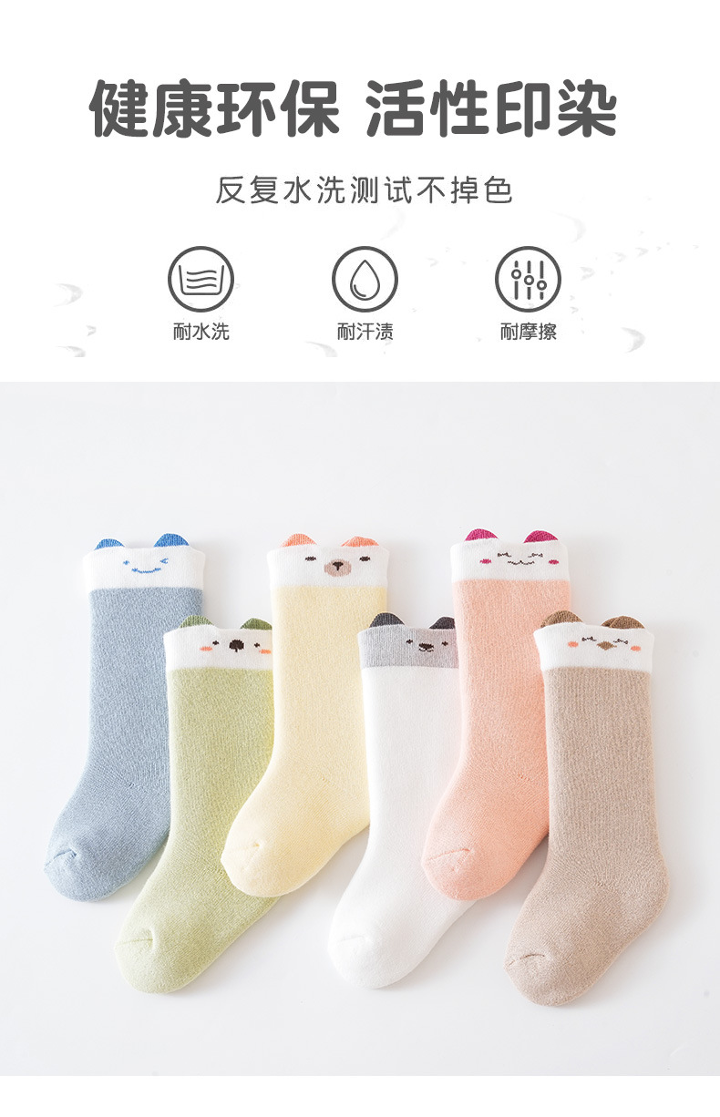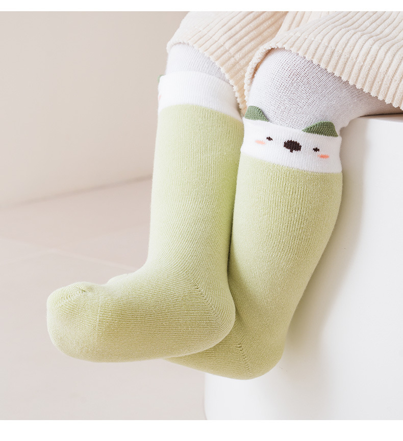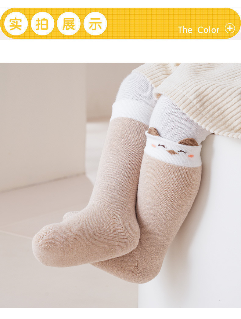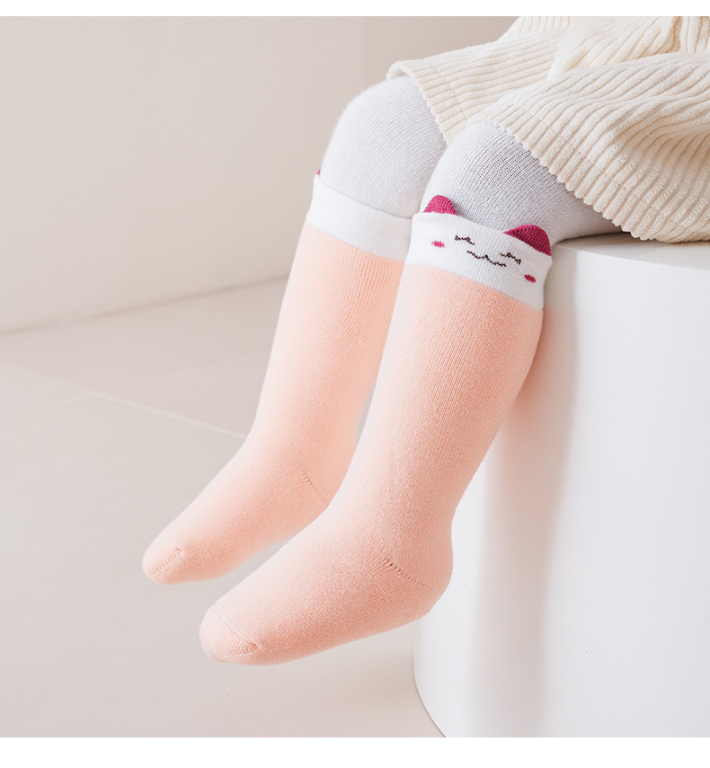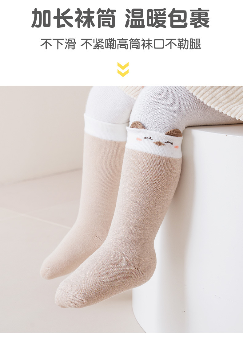 겨울 두꺼운 테리 아기 양말 신생아 높은 양말 유아 어린이 긴면 양말 만화 0-6 개월