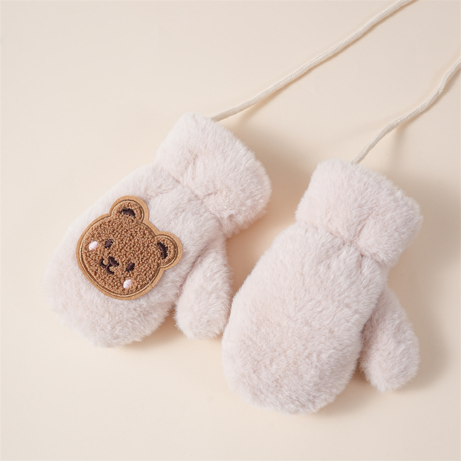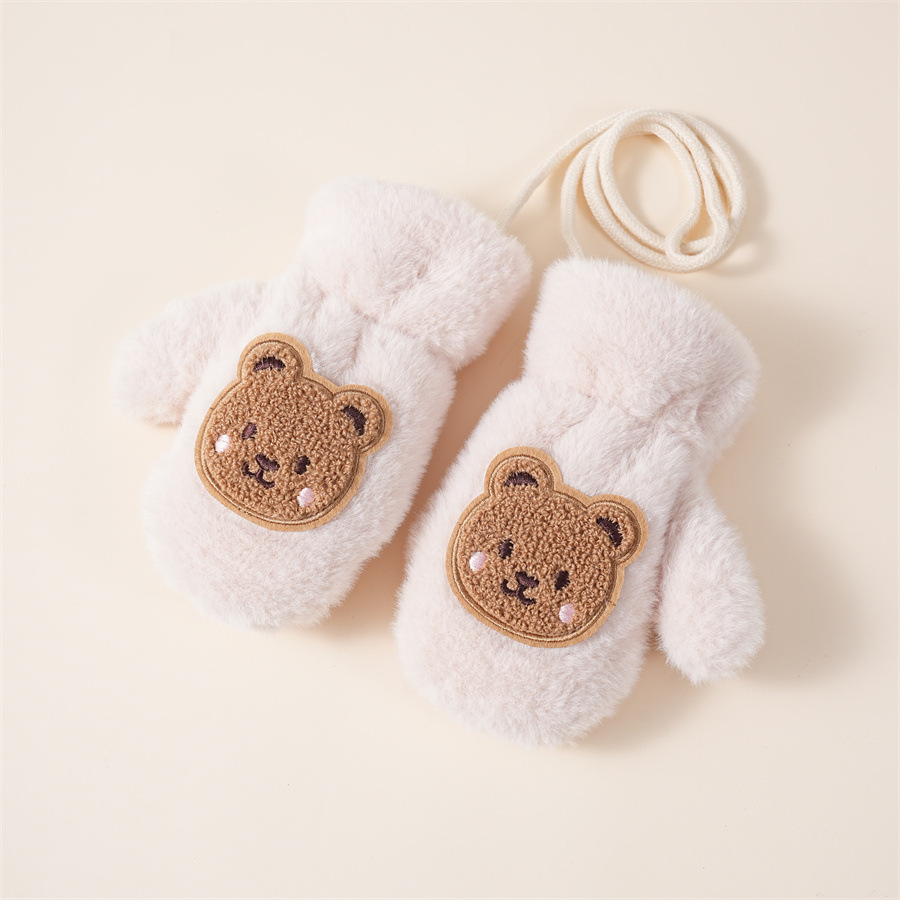 겨울 어린이 양털 장갑 메일라드 스타일 귀여운 곰돌이 학생 장갑 중대형 어린이 목걸이형 장갑