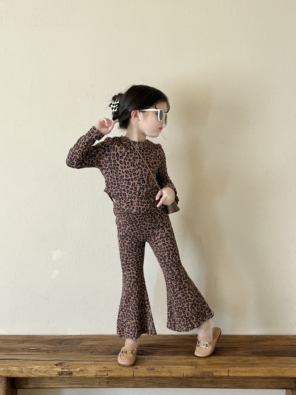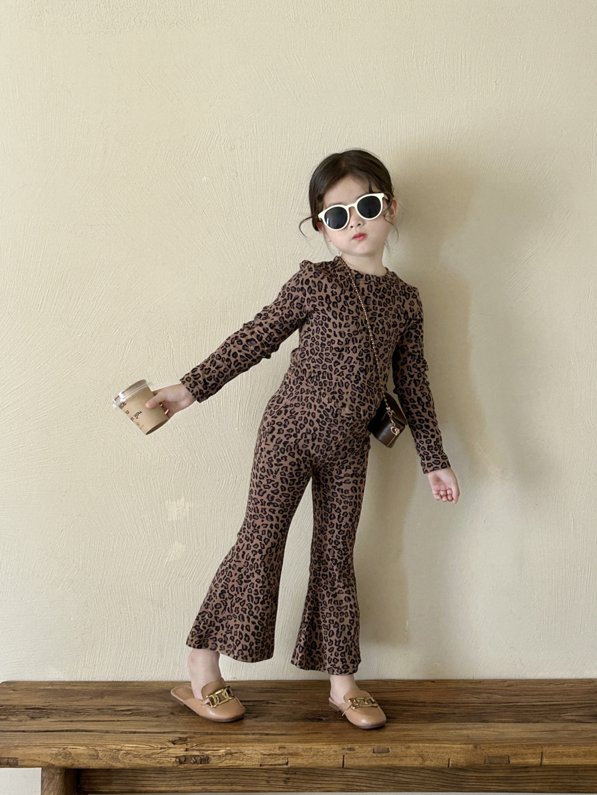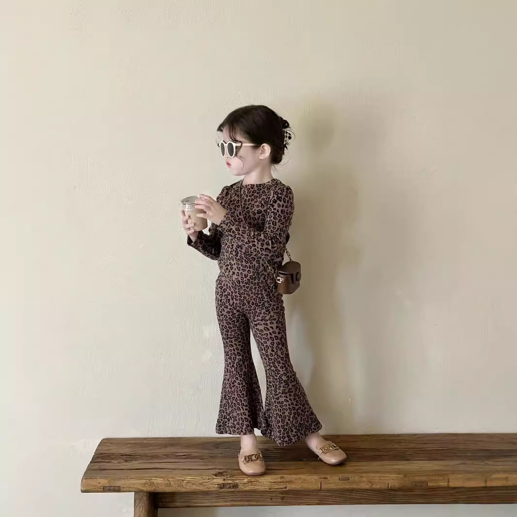 여자 긴팔 정장 봄 새로운 한국어 스타일 여자 표범 인쇄 정장 어린이 긴팔 투피스 양복 아동 의류스토어 가기