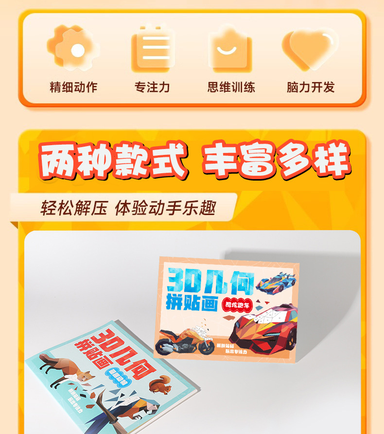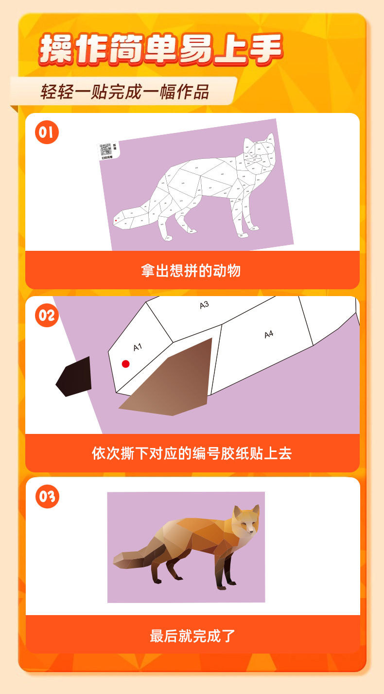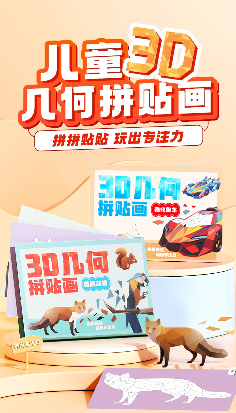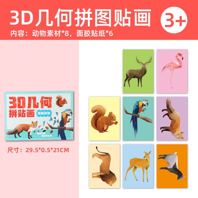 어린이 3D 기하학 콜라주 퍼즐 장난감 수제 DIY 스티커 동물 퍼즐 소녀 교육용 DIY스토어 가기