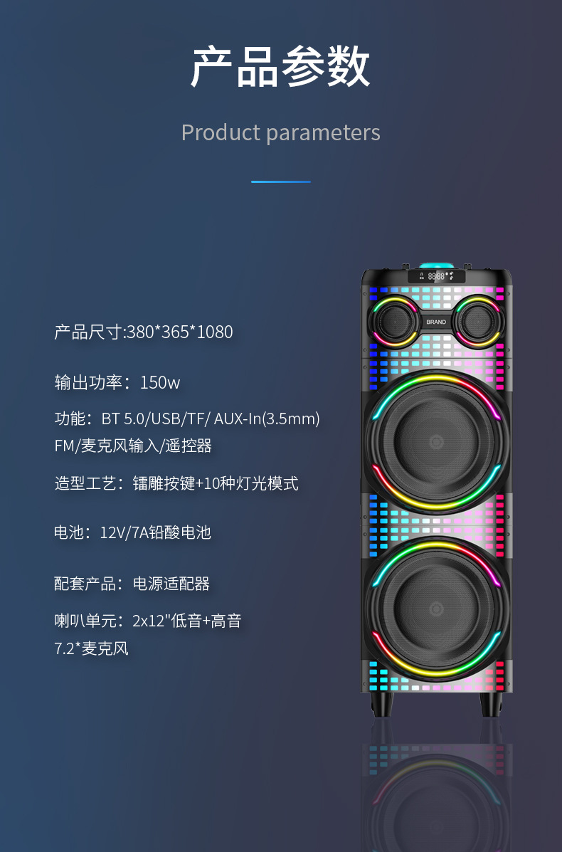 IBR 전문 무대 공연 라이브 중저음 스피커 대용량 가정용 노래방 마이크 포함 블루투스 스피커