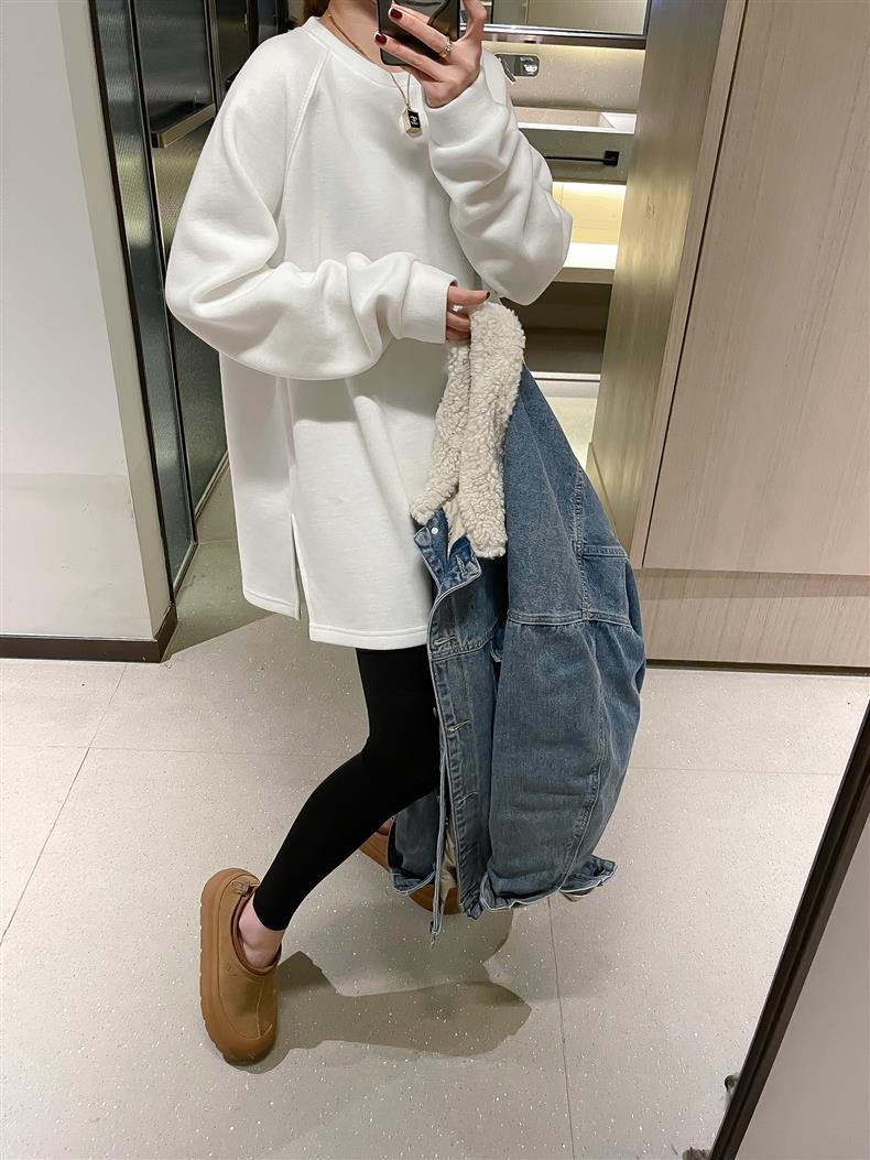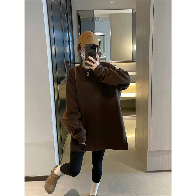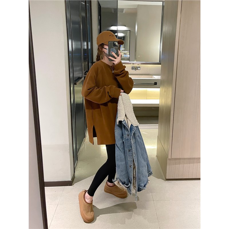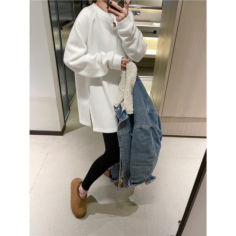 가을과 겨울을위한 봄 늦게 샌딩 양털 티셔츠 2024 년 여성의 두꺼운 중간 및 긴베이스 셔츠스토어 가기