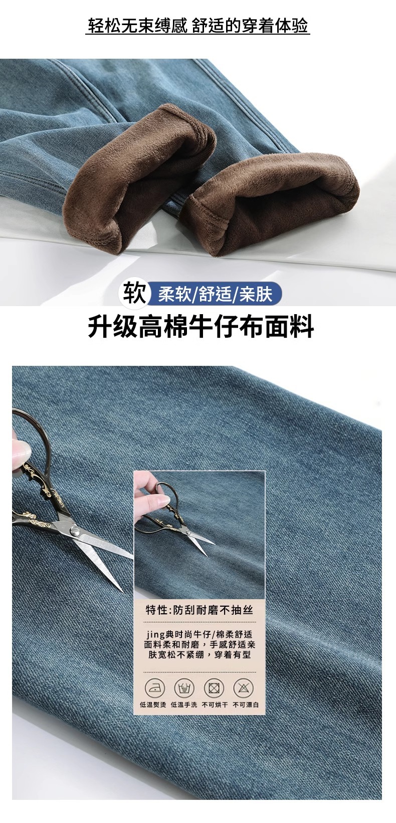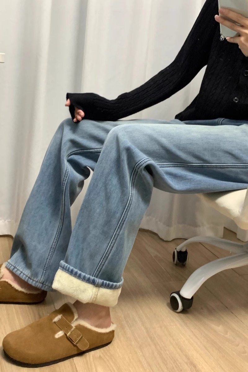 175 개의 키가 큰 170 개의 겨울 기모 두꺼운 청바지 여성의 높은 허리 슬리밍 라이트 블루 스트레이트 바지스토어 가기