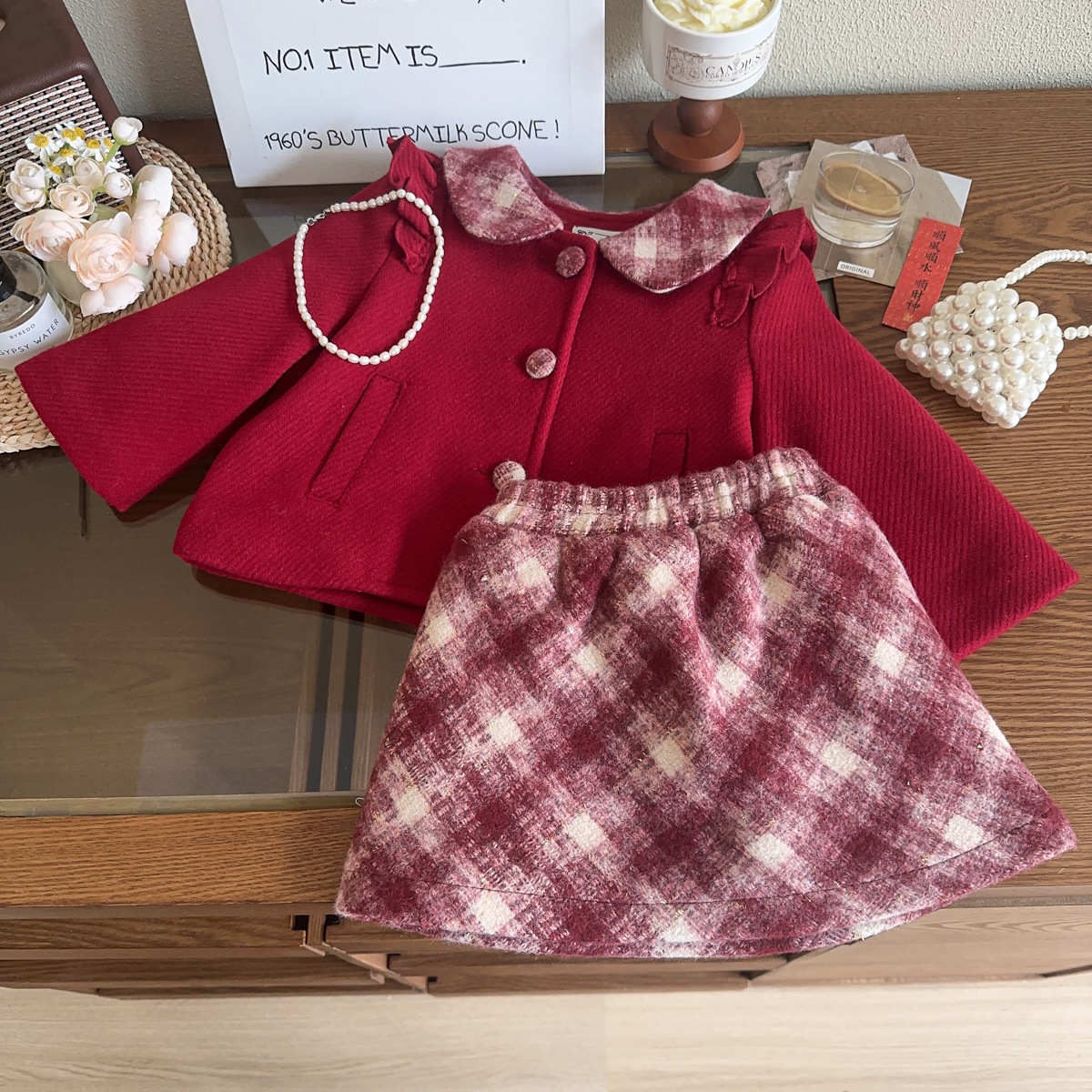 소녀의 샤넬 스타일 세트 겨울 새로운 스타일 유행 활 코트 프렐리스 스커트 투피스 세트