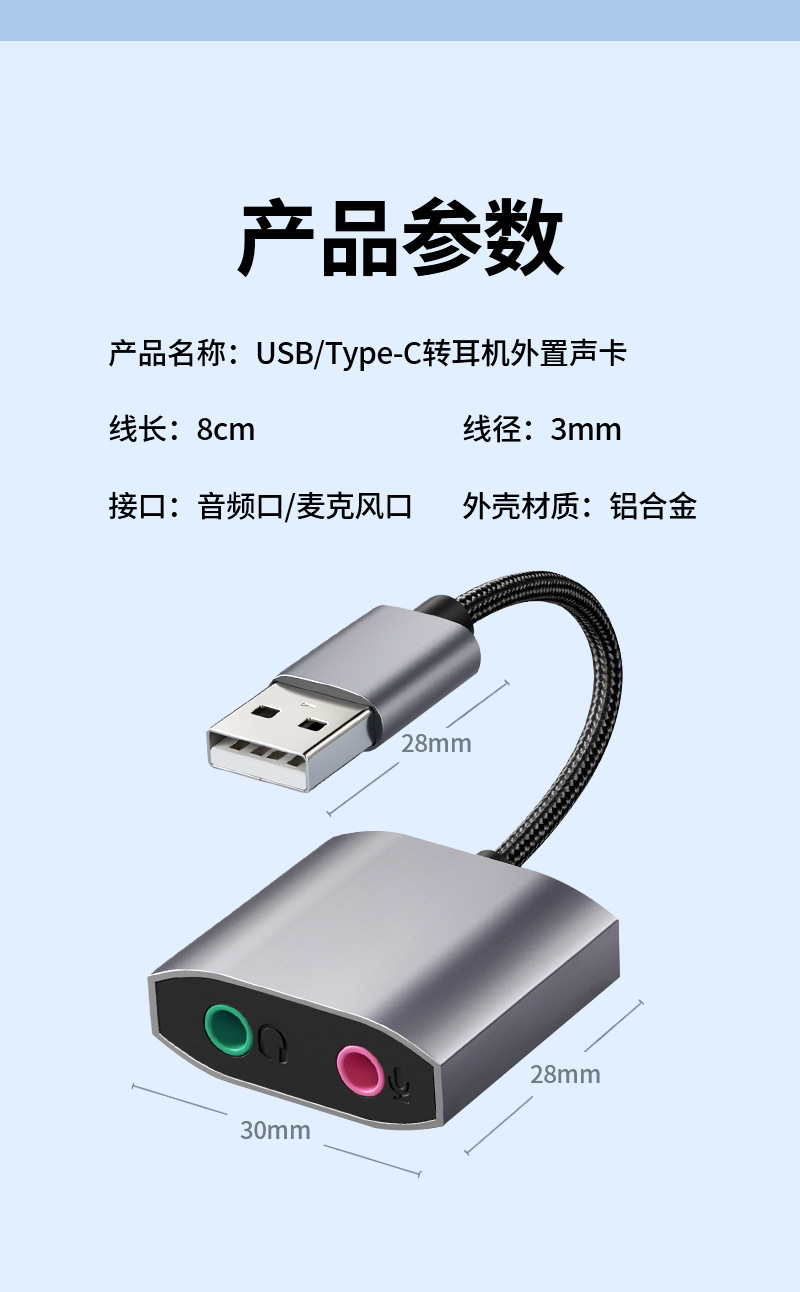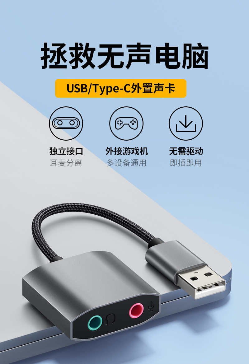 로고 소량 주문 제작 지원, 오디오 케이블 OEM 맞춤 제작, USB/Type-C 외장 사운드 카드, USB 오디오 사운드 카드스토어 가기