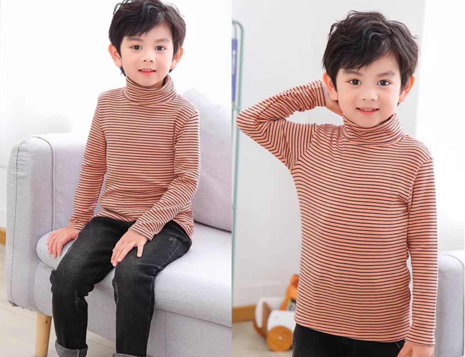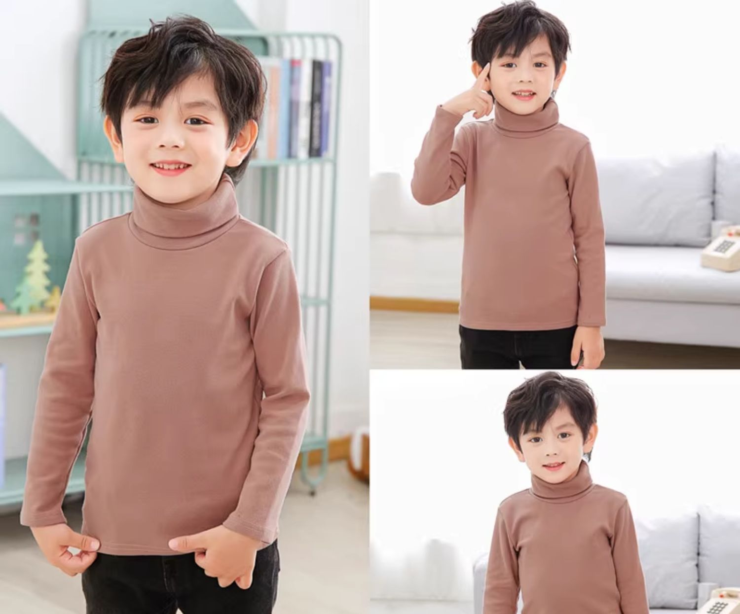 어린이 높은 칼라베이스 셔츠 2024 가을 옷 큰 어린이 소년 순면 탑 소녀 가을 옷 아기의 긴 소매 티셔츠