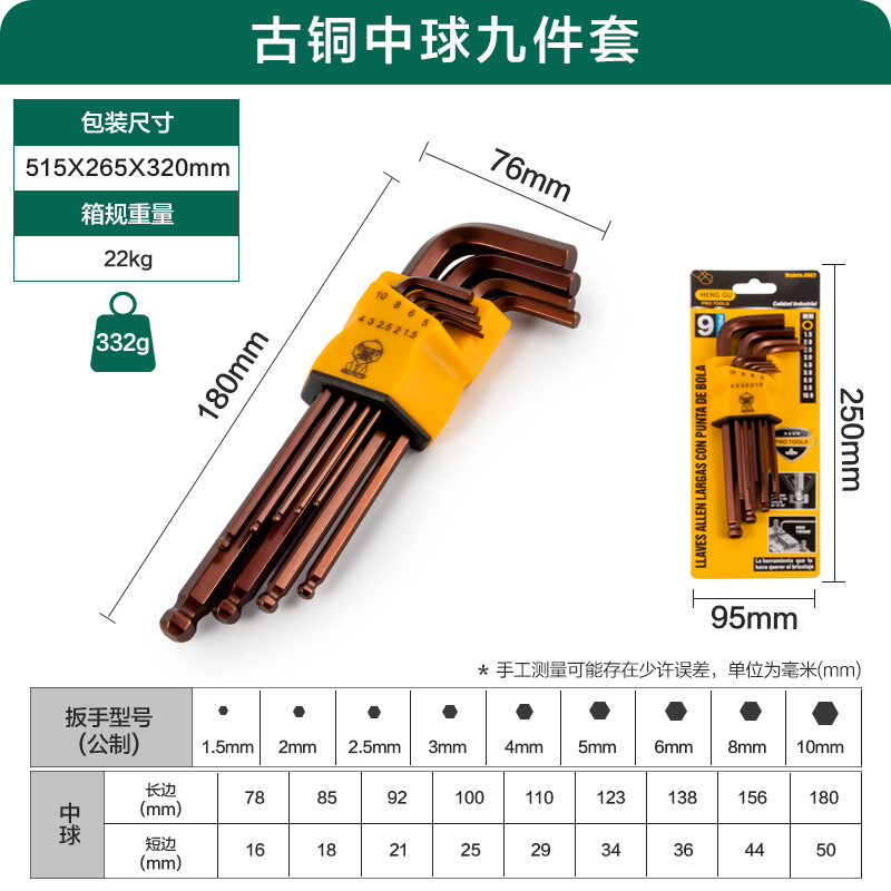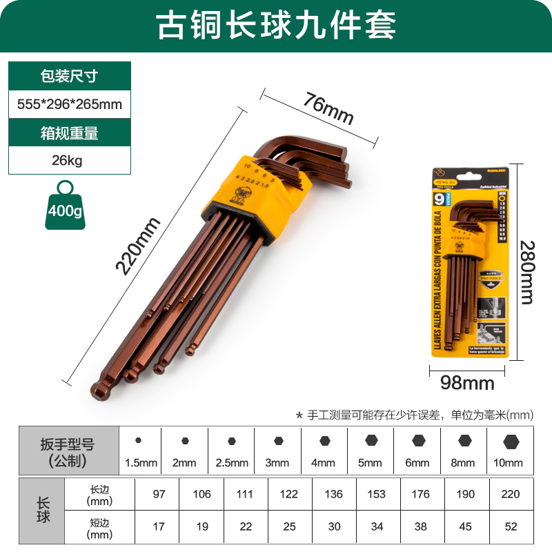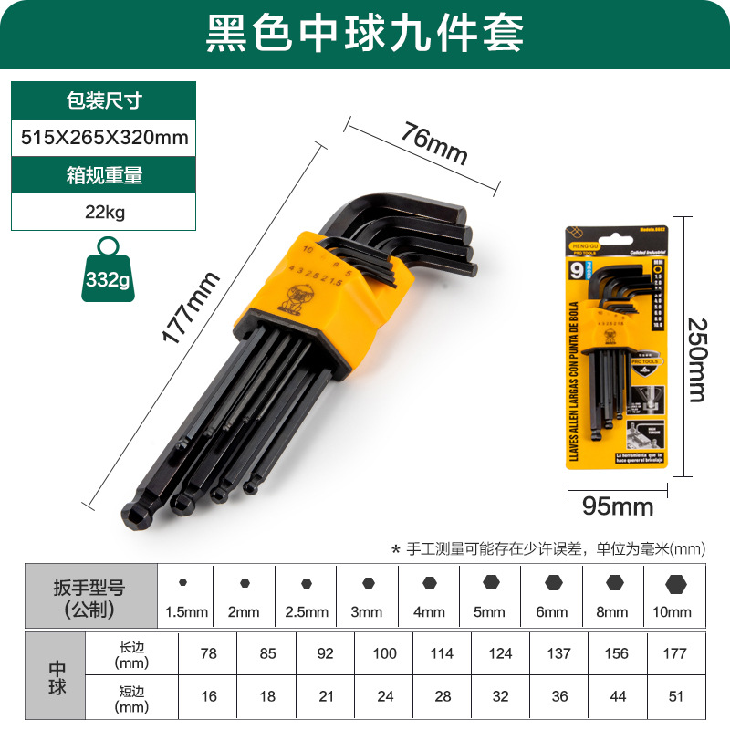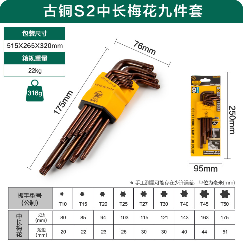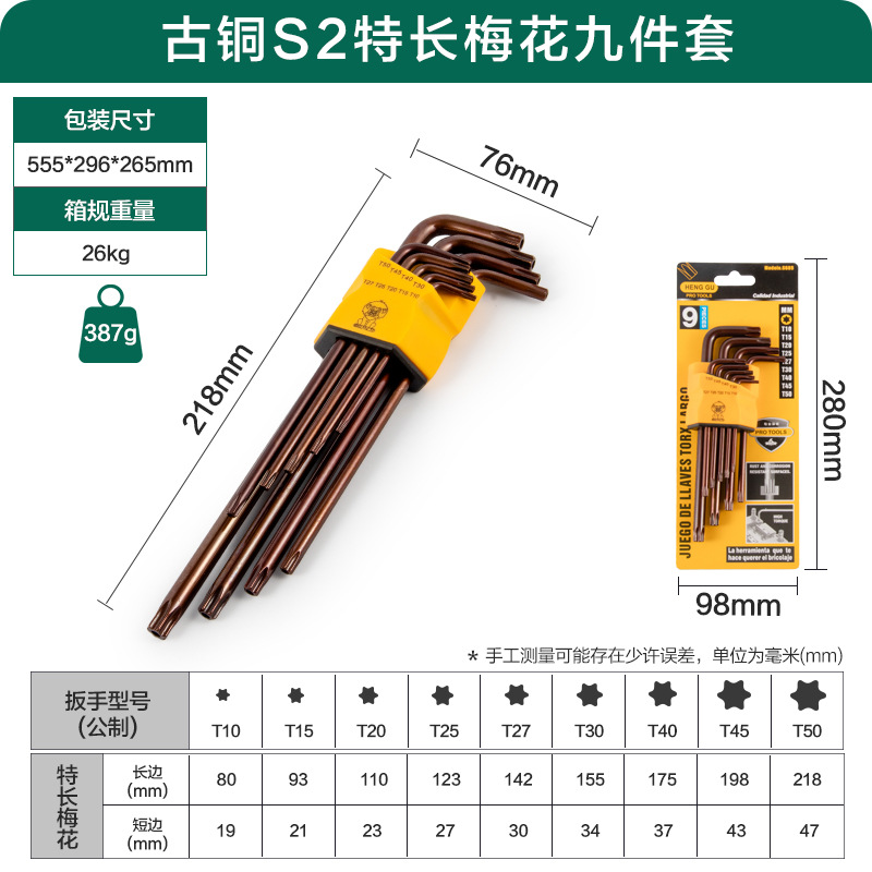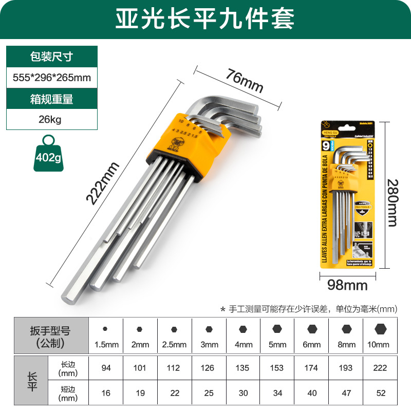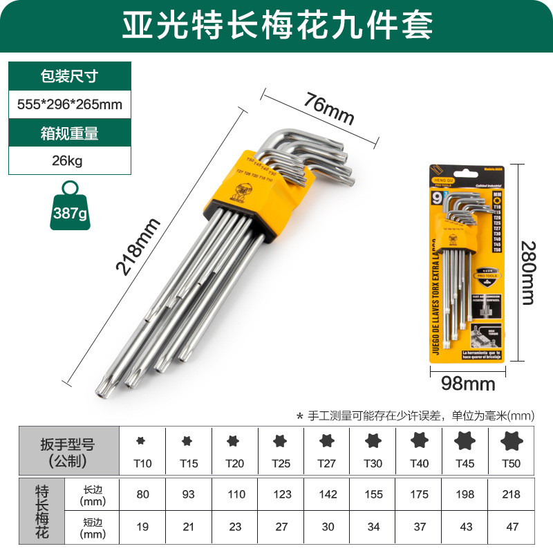 영어 로고 대외 무역 짧은 긴 Allen 렌치 세트 Torx Allen 렌치 9 피스 세트 S2 블랙 L