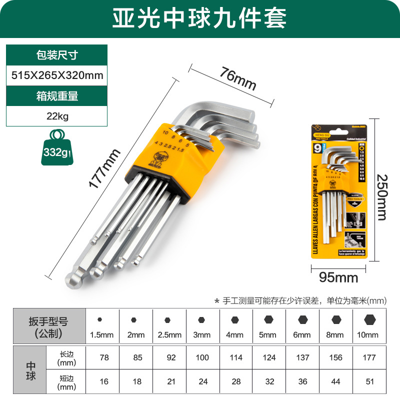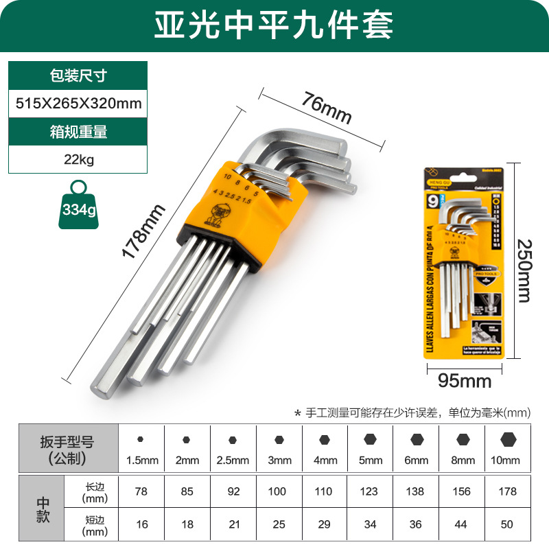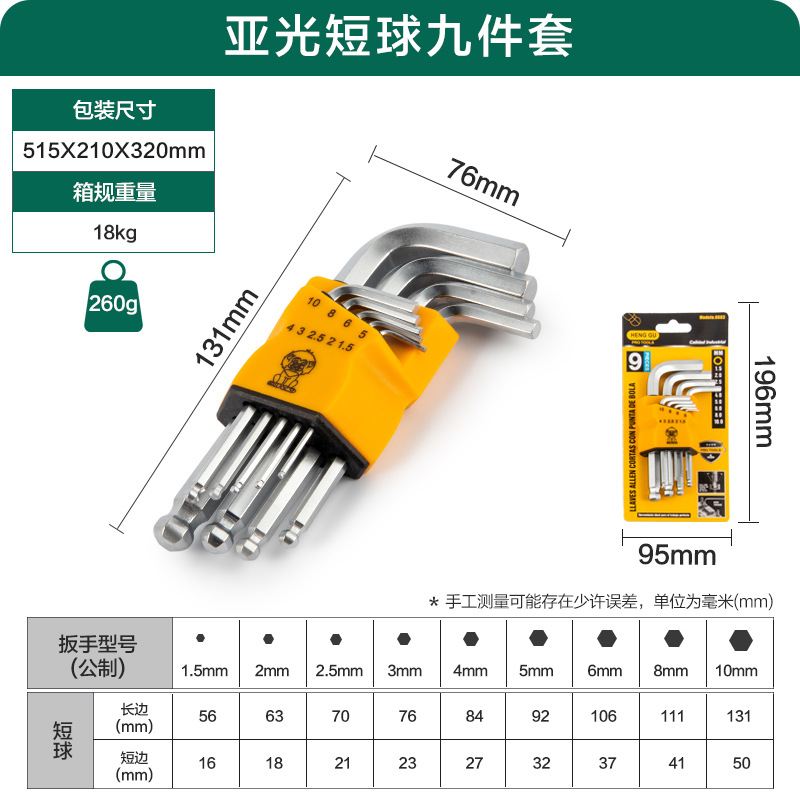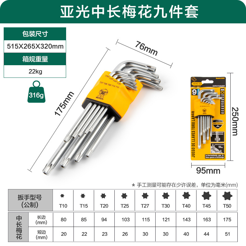 영어 로고 대외 무역 짧은 긴 Allen 렌치 세트 Torx Allen 렌치 9 피스 세트 S2 블랙 L스토어 가기