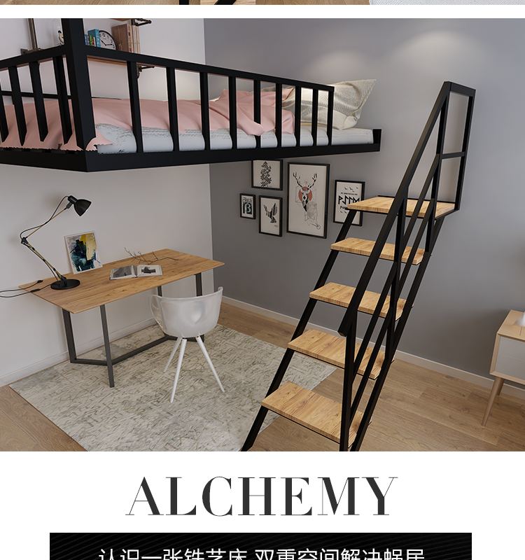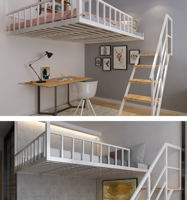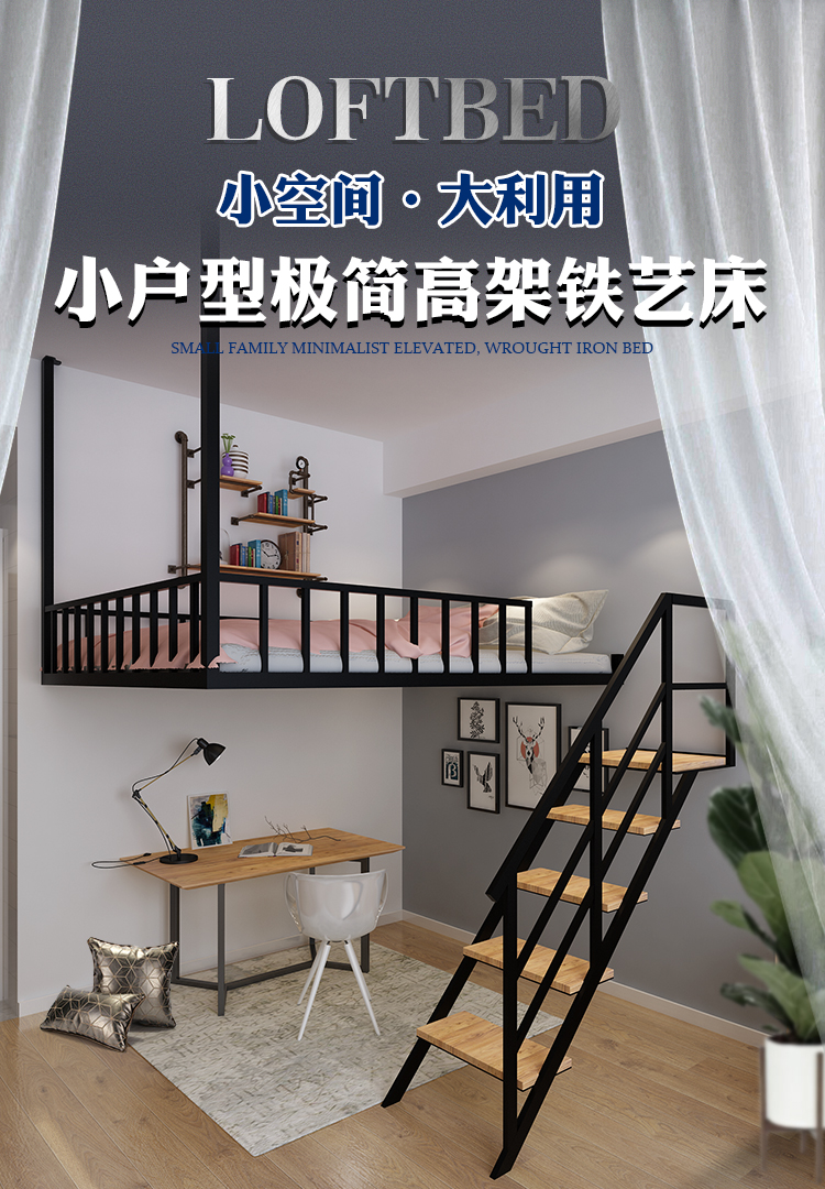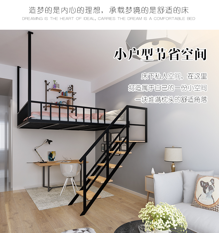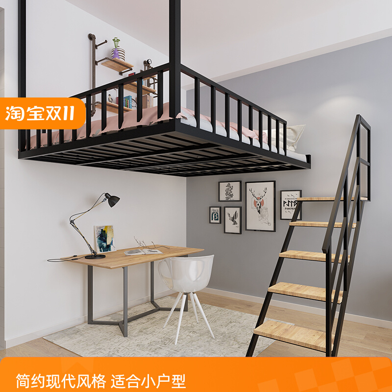 9C 간단한 작은 아파트 교수형 로프트 침대 교수형 공주 침대 공간 절약 더블 침대 기숙사 아파트 버크