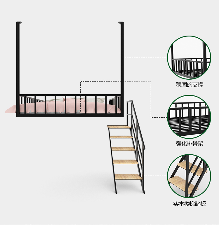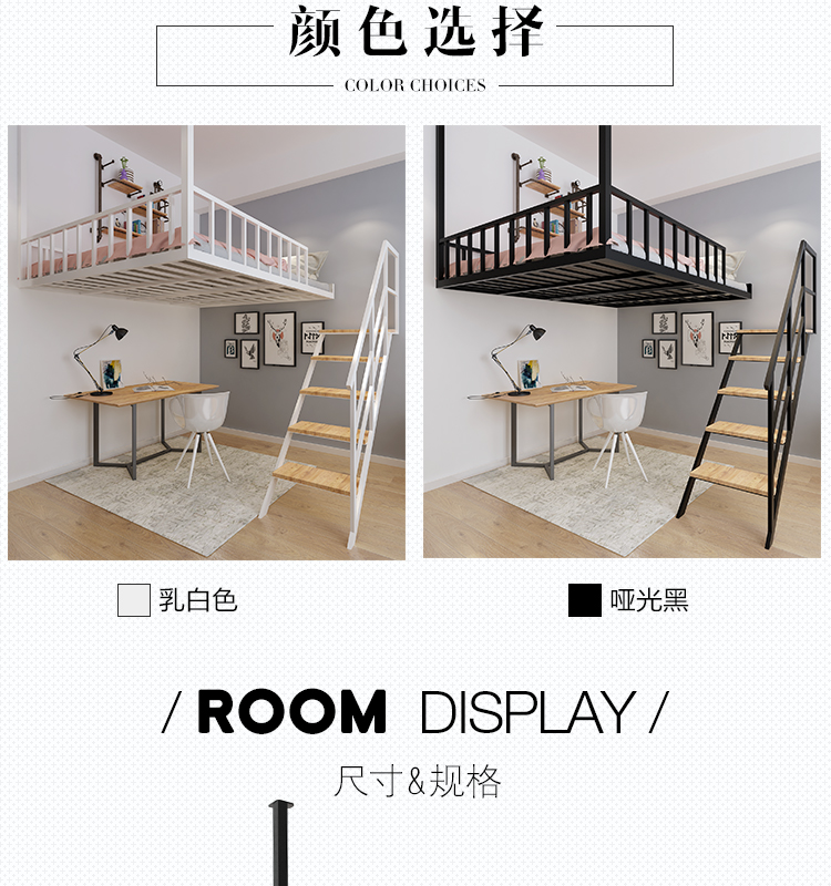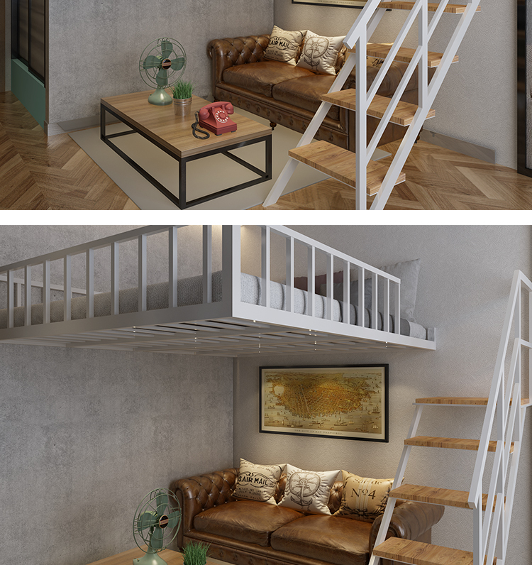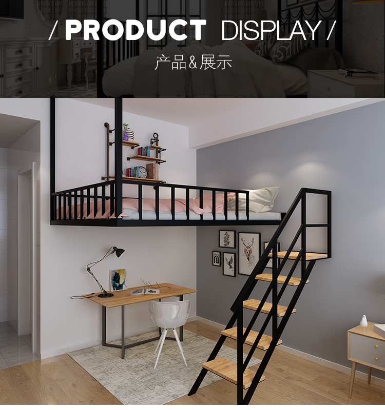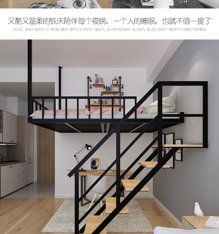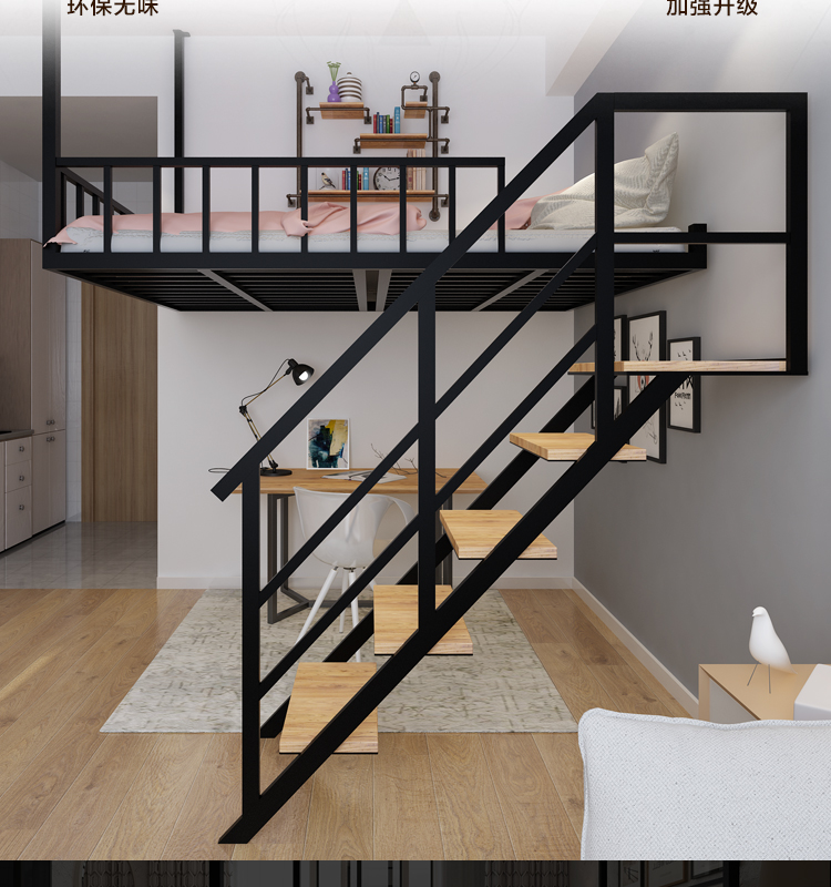 9C 간단한 작은 아파트 교수형 로프트 침대 교수형 공주 침대 공간 절약 더블 침대 기숙사 아파트 버크