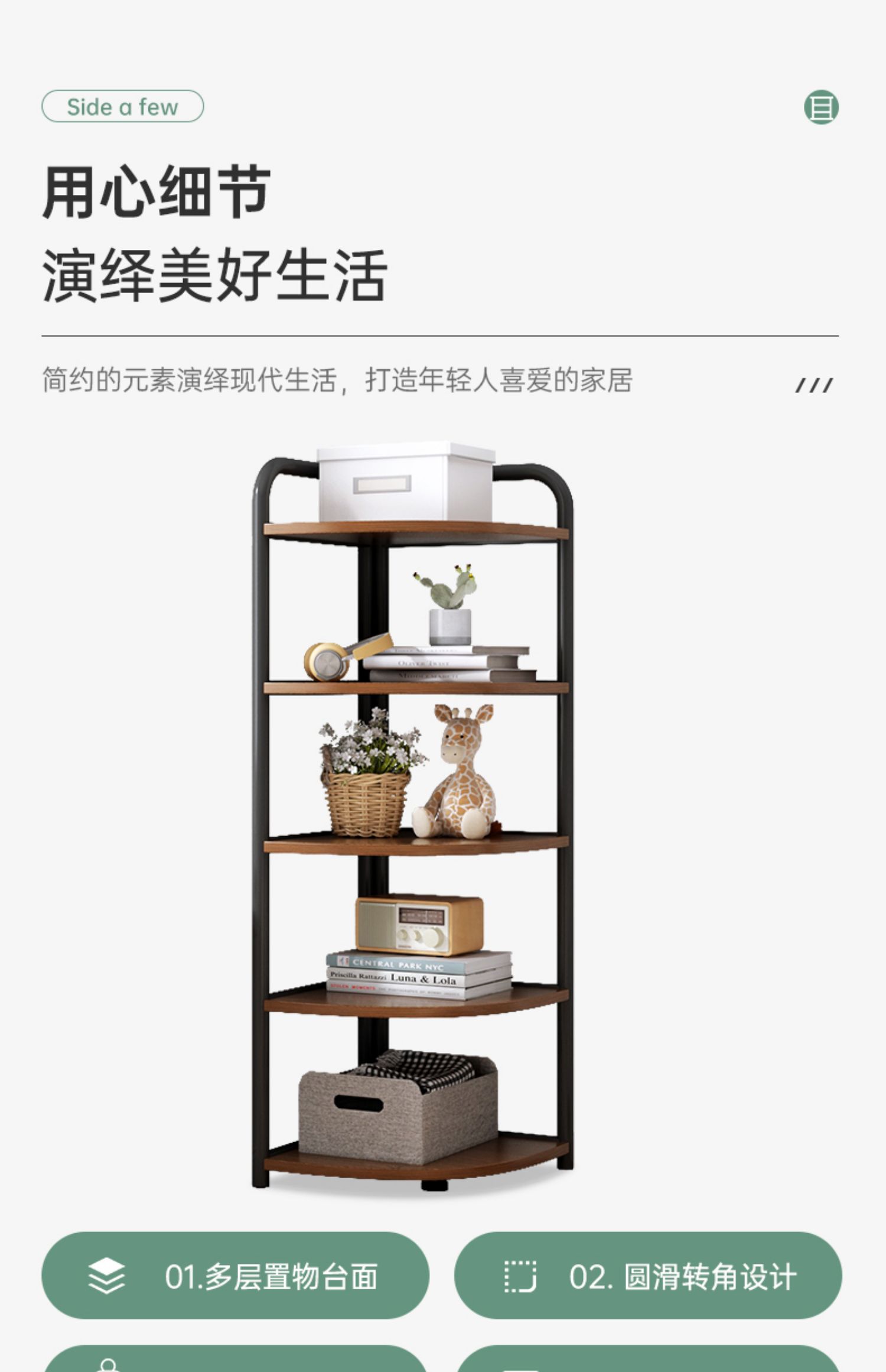 9C 코너 캐비닛 거실 선반 바닥 코너 코너 책장 보관 캐비닛 침실 삼각형 코너 보관 랙