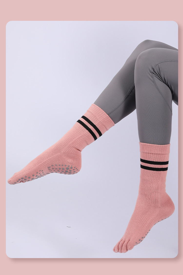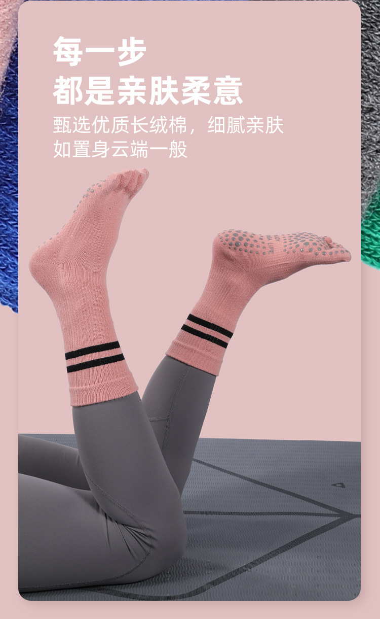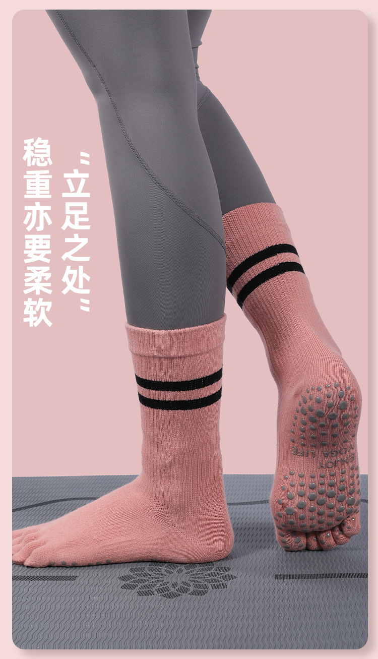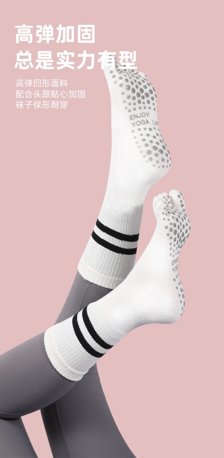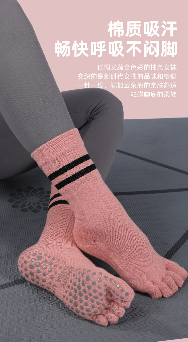 가을과 겨울 새로운 여성 요가 양말 두 개의 바 5 개의 손가락 분배 비 슬립 필라테스 양말 전자 상거래 라이브 국경 공급스토어 가기